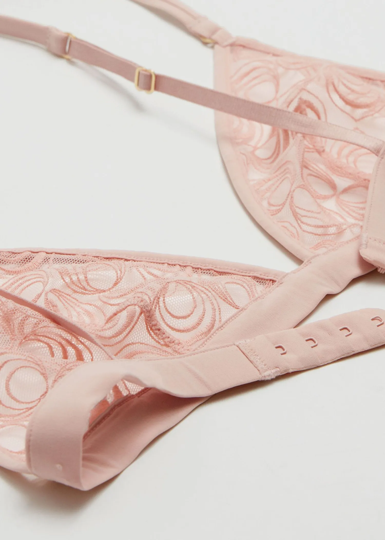 Trekantet Blød Bh Skåret Af Blød Fancy Elastisk Blonde Detaljeret Med Broderi. Afsluttet Med Justerbare Skulderstropper Og Kroglukning Bagpå.