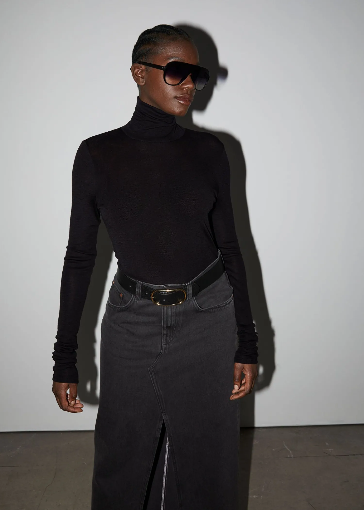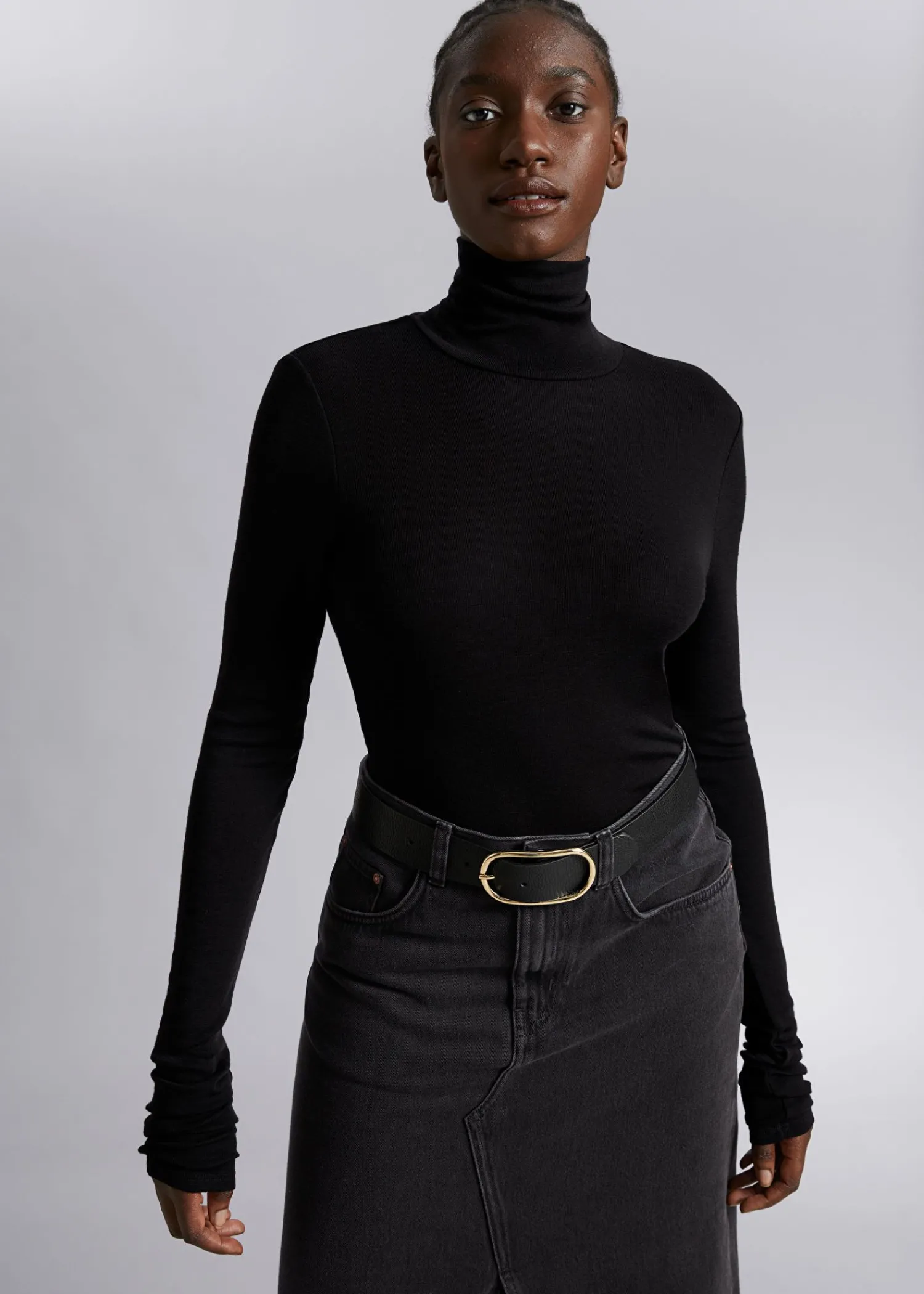 Uldstrikket Rullekravetop Med Overdrevne Lange Ærmer Og Halsudskæring I En Figursyet Silhuet. Central Bagsøm. Længde På Toppen: 58 Cm / 22,8″ (Størrelse S) Certificeret I Henhold Til Responsible Wool Standard (Cu827977)