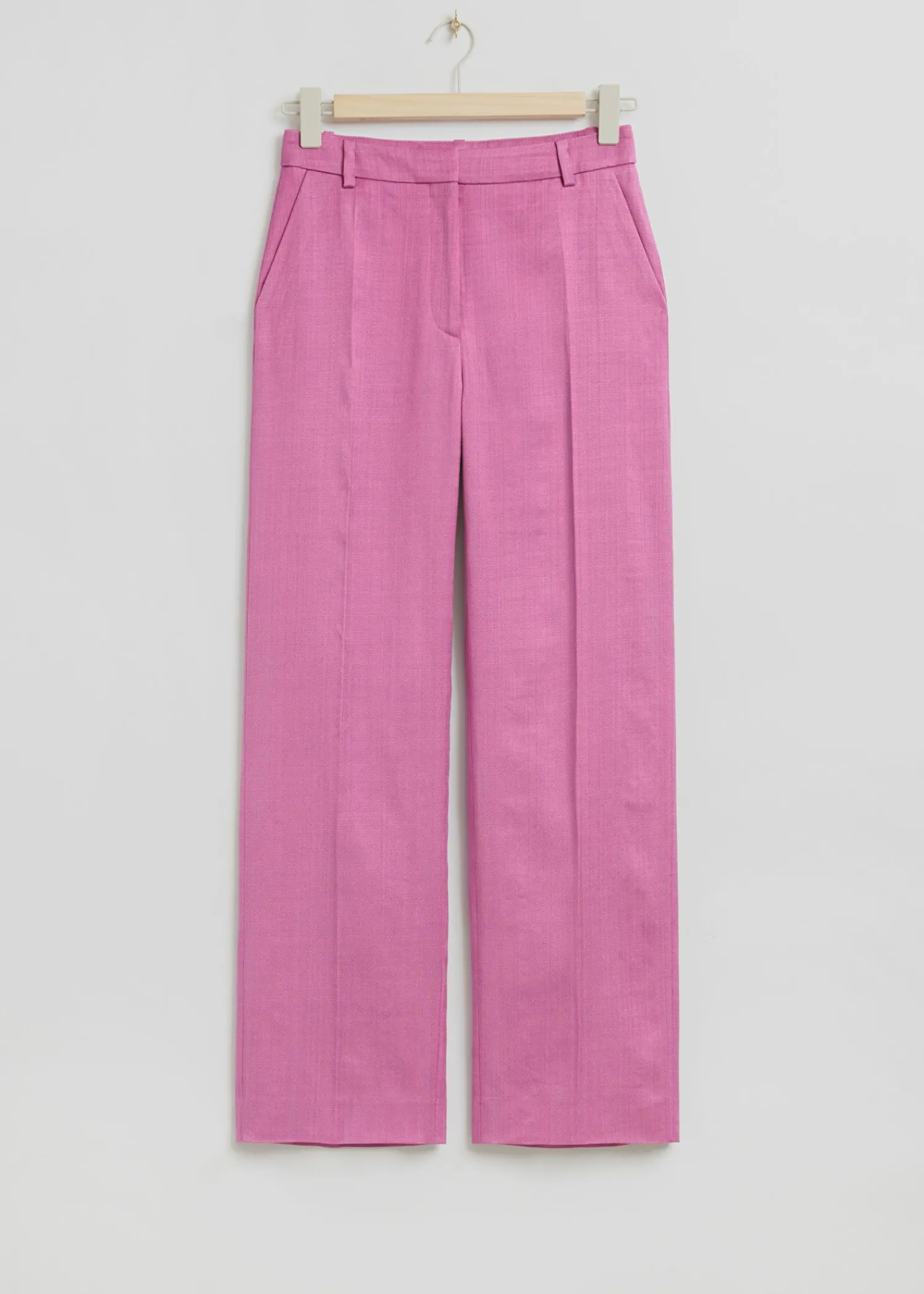 Lige Bukser Med Mellemtalje Og Trykfold Lavet Af Blandet Singlejersey. Med Midterste Front- Og Bagpressefolder Skåret Med Lige Ben Og To Skjulte Skrå Taljelommer. Færdig Med Krog-Og-Stang Lukning Og Lynlåsgylp Og Skræddersyet Med Bæltestropper. Del Af Et Matchende Sæt. Længde På Bukser: 74 Cm / 29,1″ (Eu 36 / Uk 8 / Us 4)