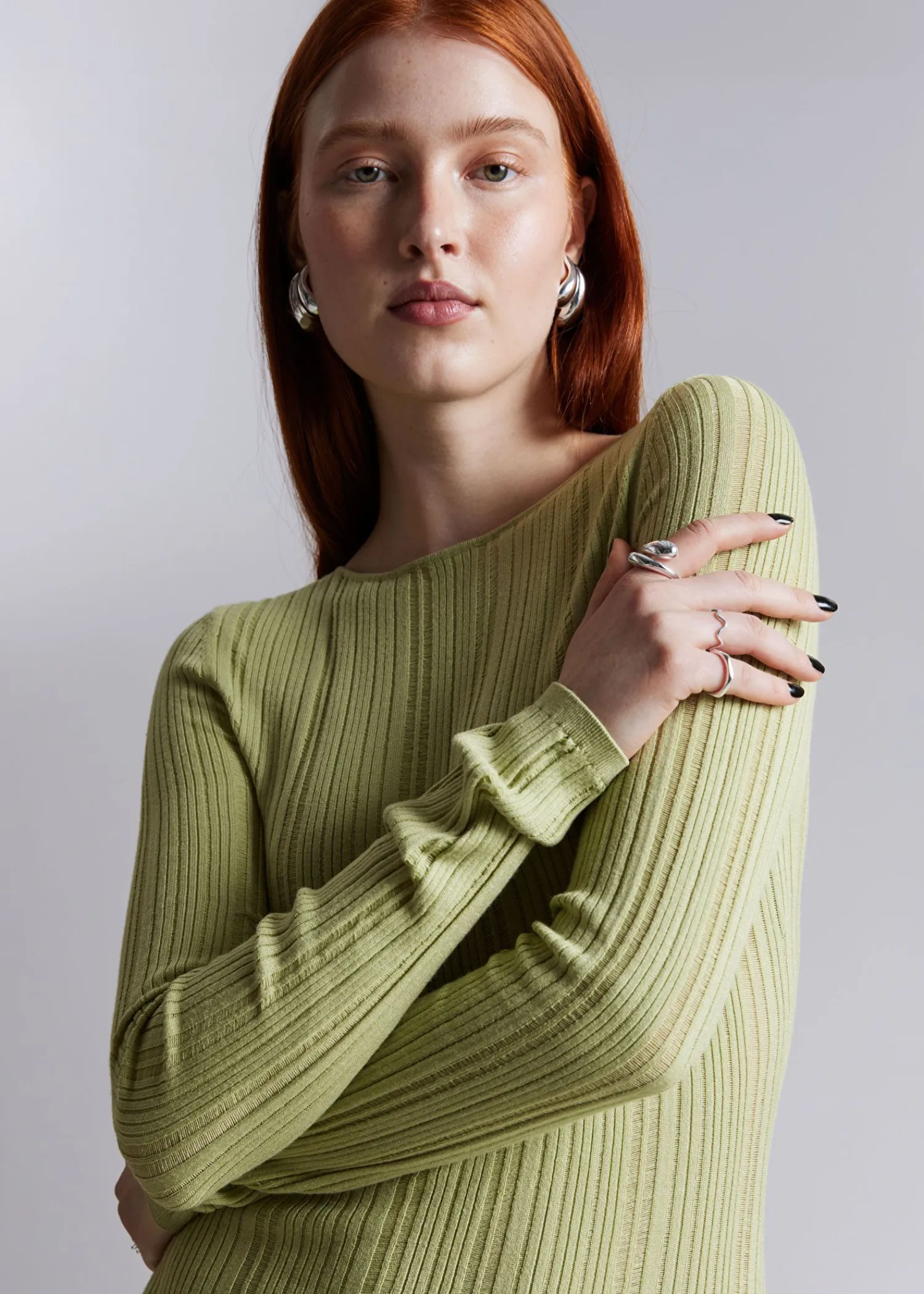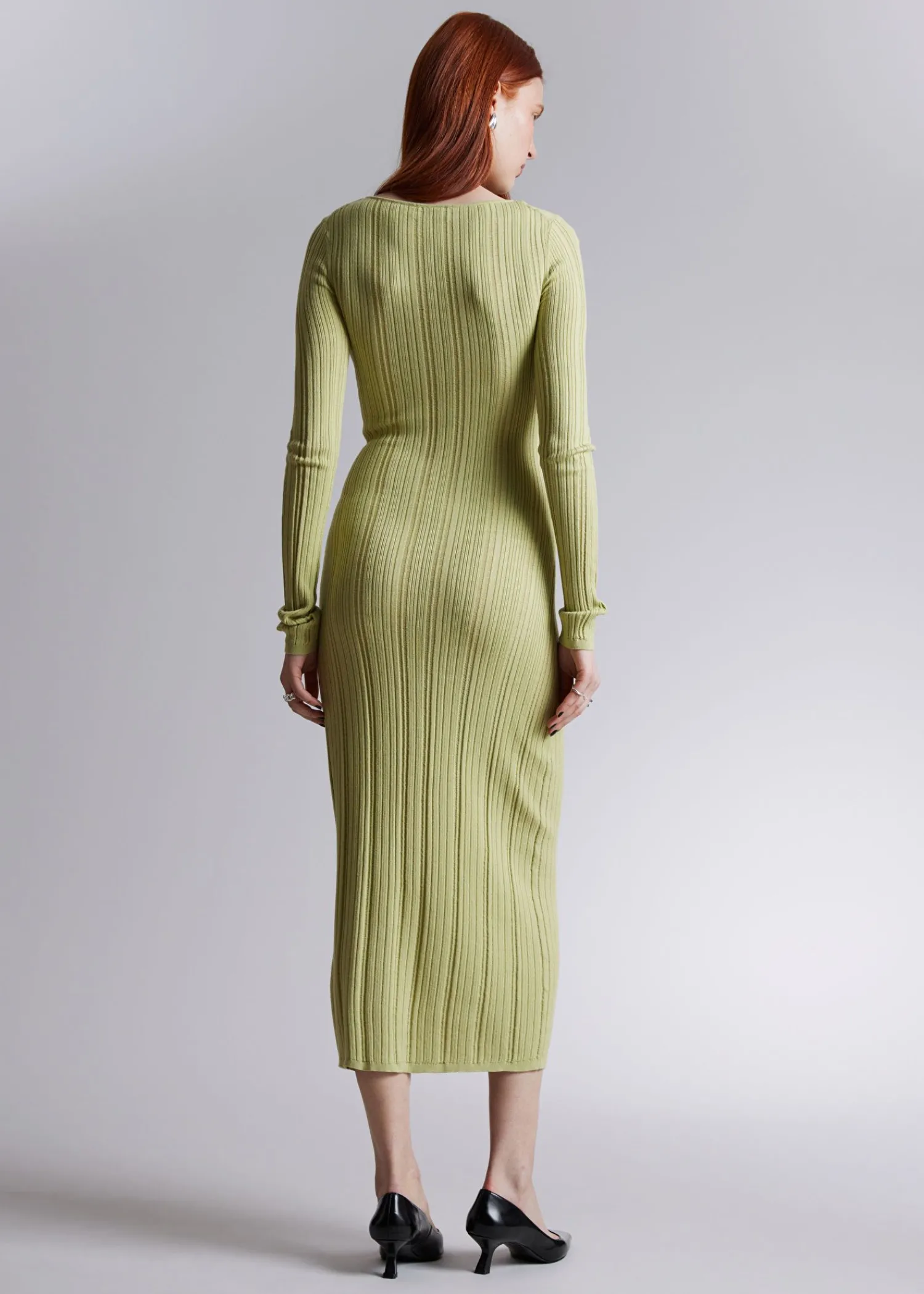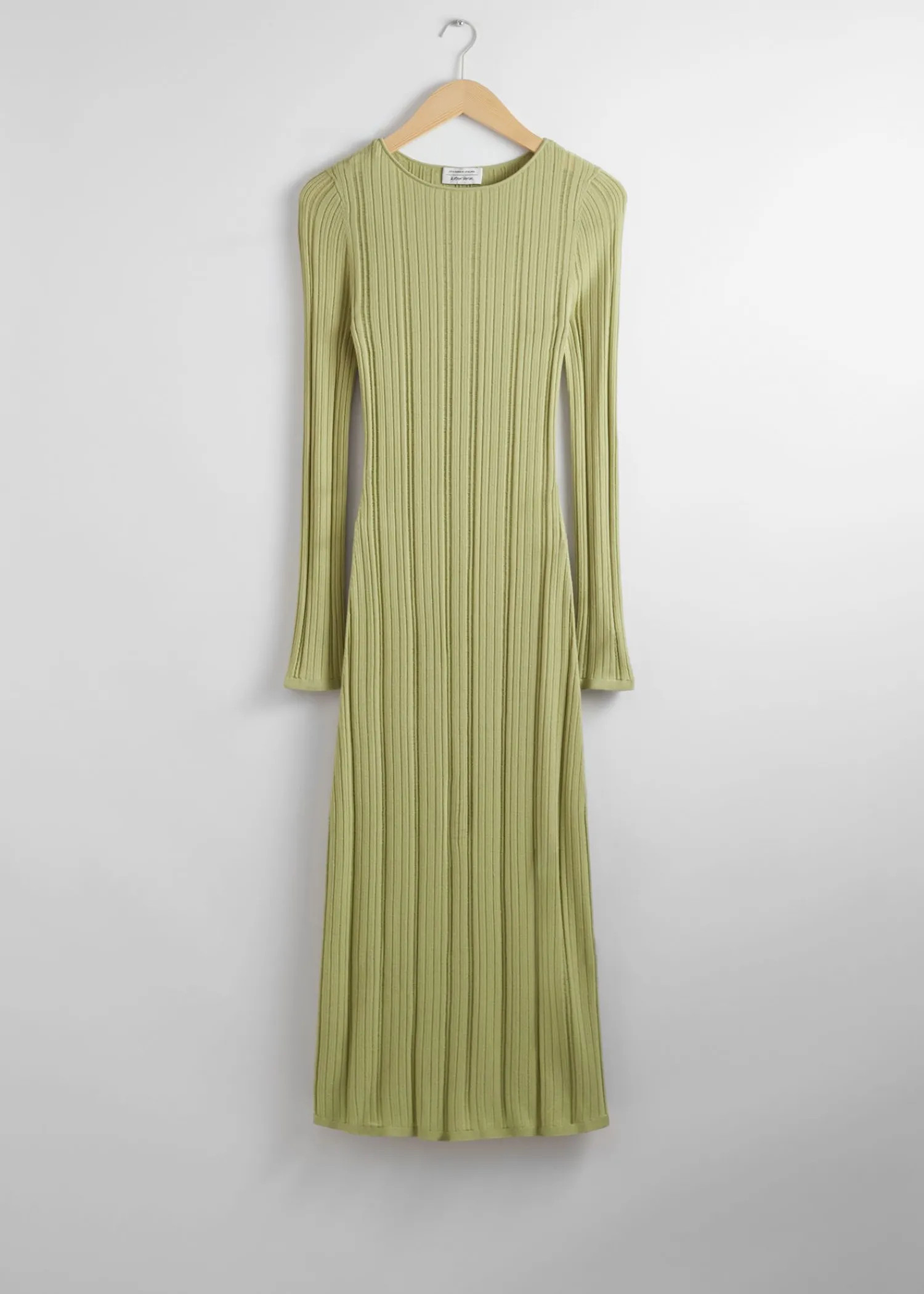 Strikket Langærmet Maxikjole Med Ribstrikket Finish. Slim Fit Rund Halsudskæring Længde På Kjole: 126 Cm / 49,6″ (Størrelse S)