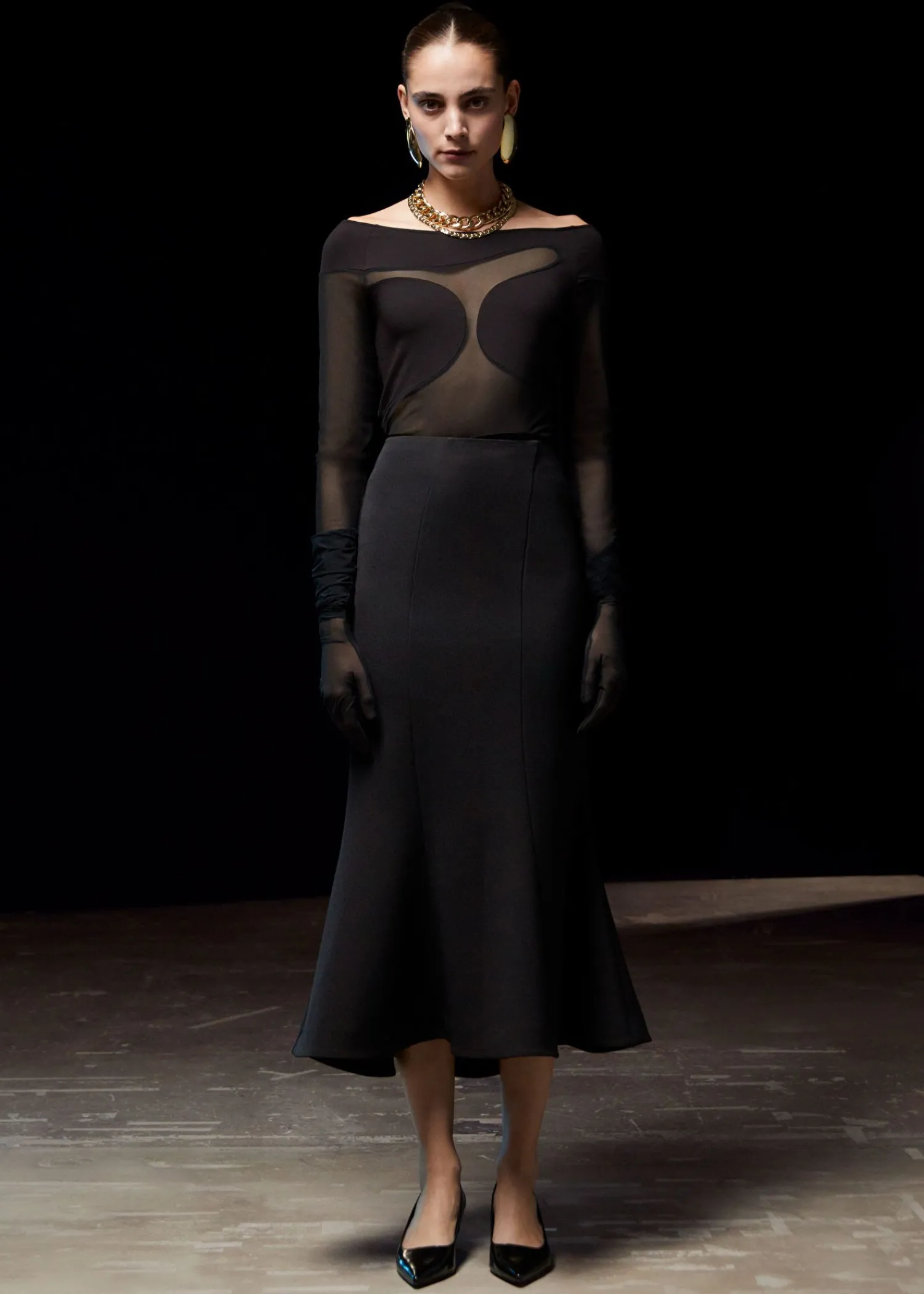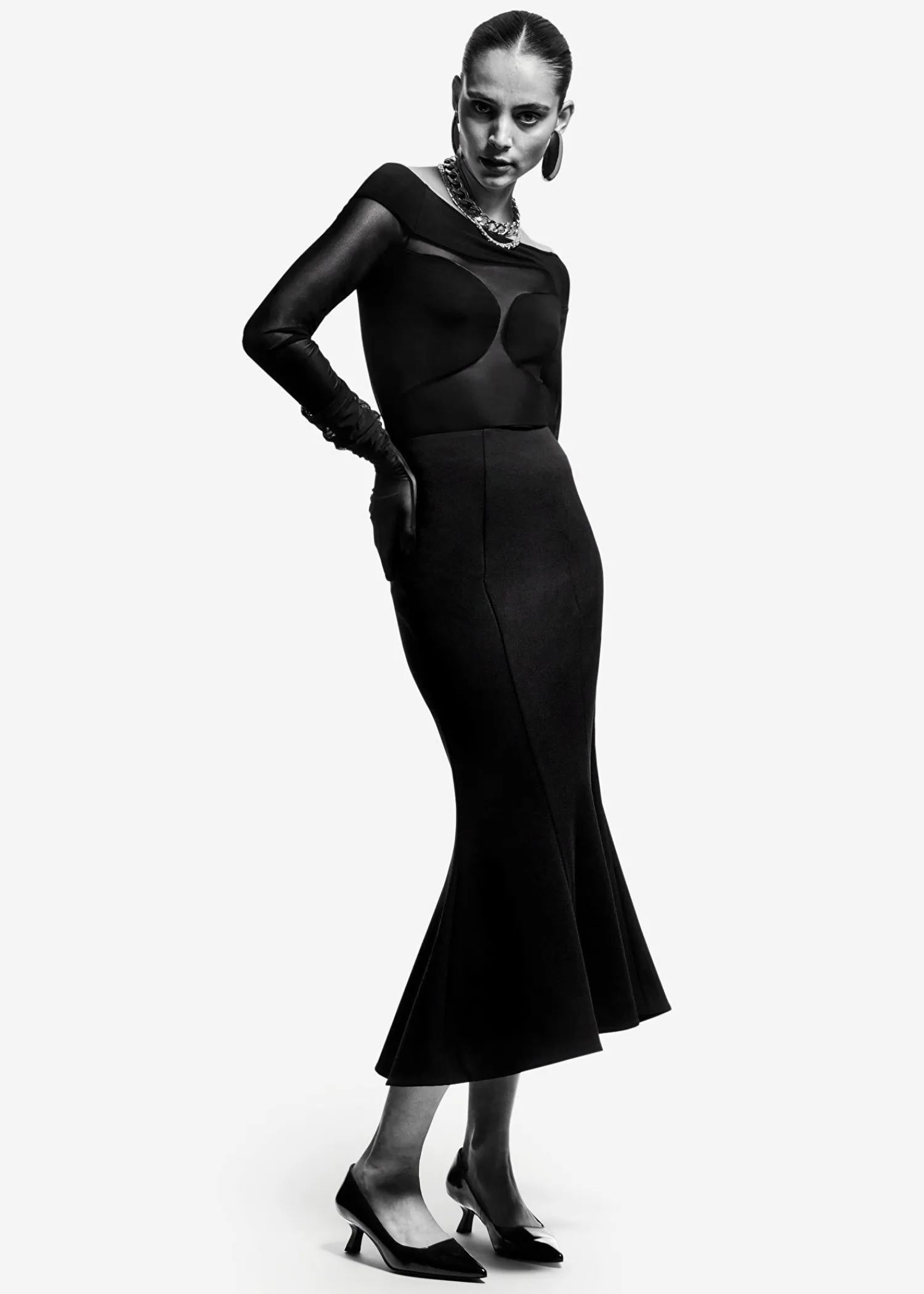 Midi-Nederdel Med Lodrette Snitlinjer Og En Udstrakt Kant Forneden. Lukkes Med Lynlås I Siden. Længde På Nederdel: 93,5 Cm / 36,8″ (Eu 36 / Uk 8 / Us 4)
