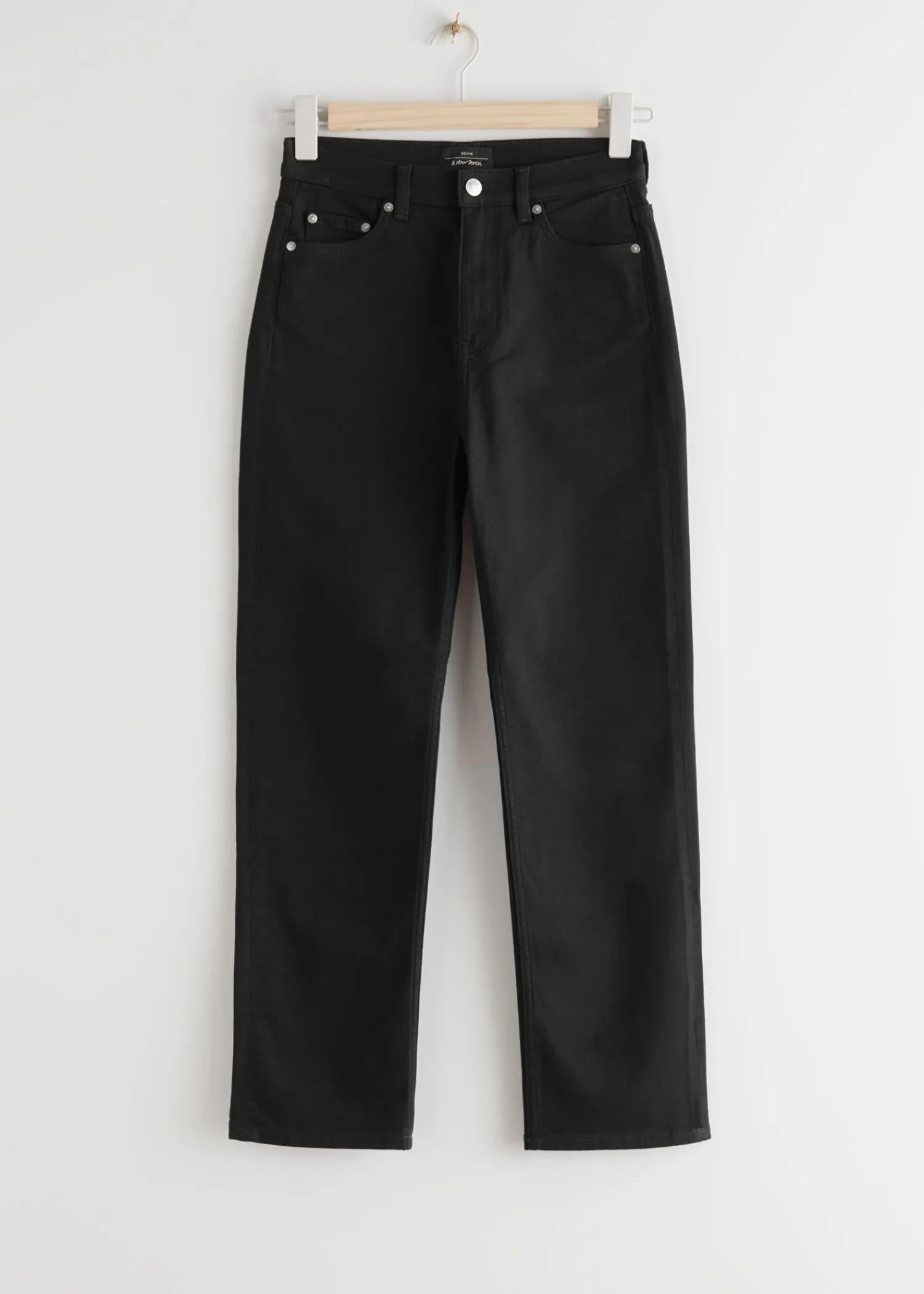 5-Lommers Jeans Med Høj Talje Og Slanke Ben I Fuld Længde. Højtaljet Slanke Ben Comfort Stretch Lynlås Og Knapgylp