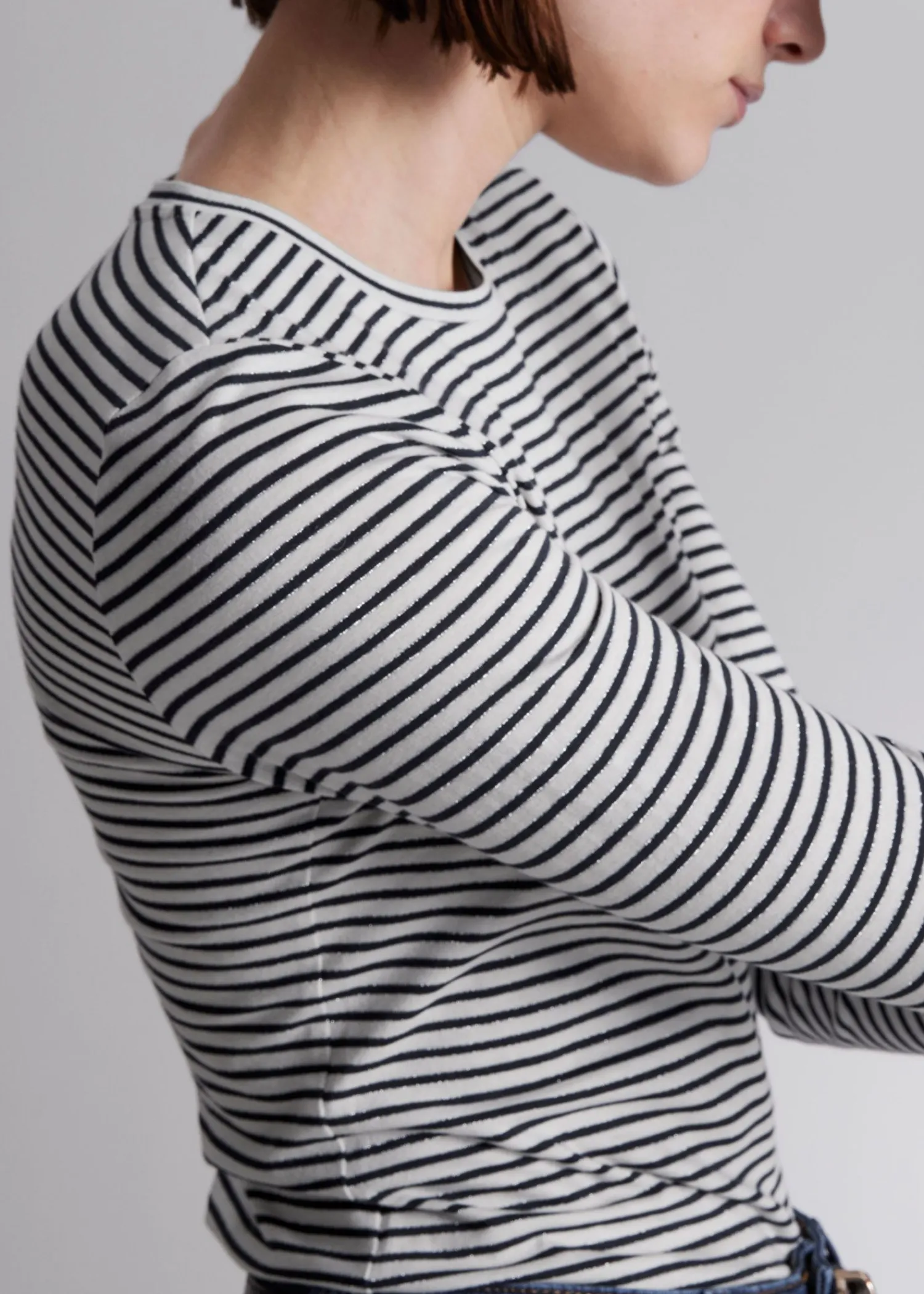 Stribet Langærmet Top Med En Glitrende Lurex Finish. Slim Fit Rund Hals Længde På Toppen: 59 Cm / 23,2″ (Størrelse S)