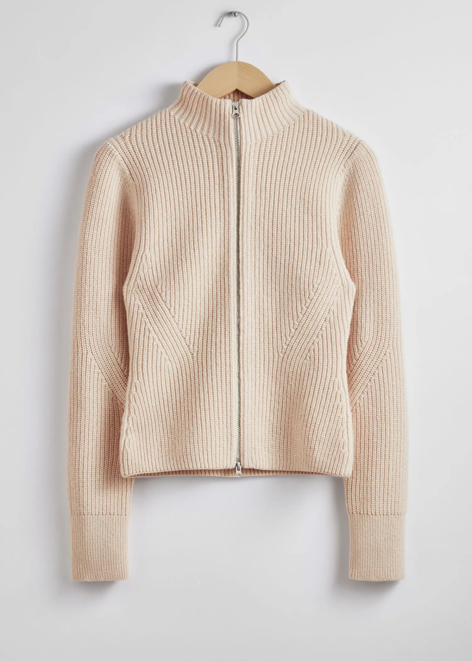 Ribbet Mock-Neck Uldstrikket Cardigan Afsluttet Med En To-Vejs Lynlås. Certificeret I Henhold Til Responsible Wool Standard (Cu893290) Længde På Cardigan: 54,5 Cm / 21,5″ (Størrelse S)