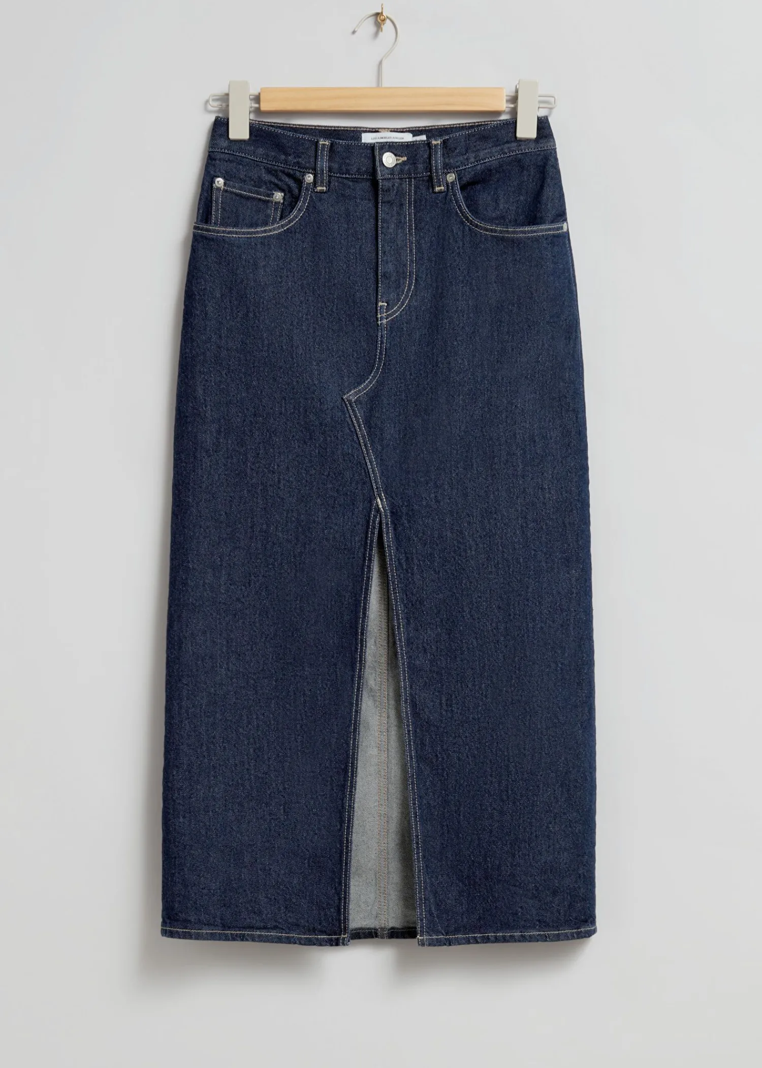 Højtaljet Denim Midi-Nederdel Defineret Af En Slids Midt Foran Og En Klassisk 5-Lommers Silhuet. Komfort Stretch Denim Lynlås- Og Knapgylp Bæltestropper Længde På Nederdel: 86,5 Cm / 34,1″ (Eu 36 / Uk 8 / Us 4)