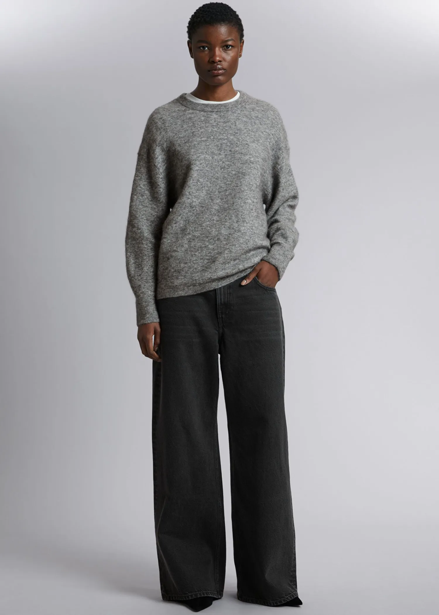 Afslappet Langærmet Trøje Strikket Af En Alpacablanding. Rund Hals Ribbet Hals, Manchetter Og Kant Certificeret I Henhold Til Responsible Alpaca Standard (Cu810300) Længde På Trøje: 67,5 Cm / 26,6″ (Størrelse S)