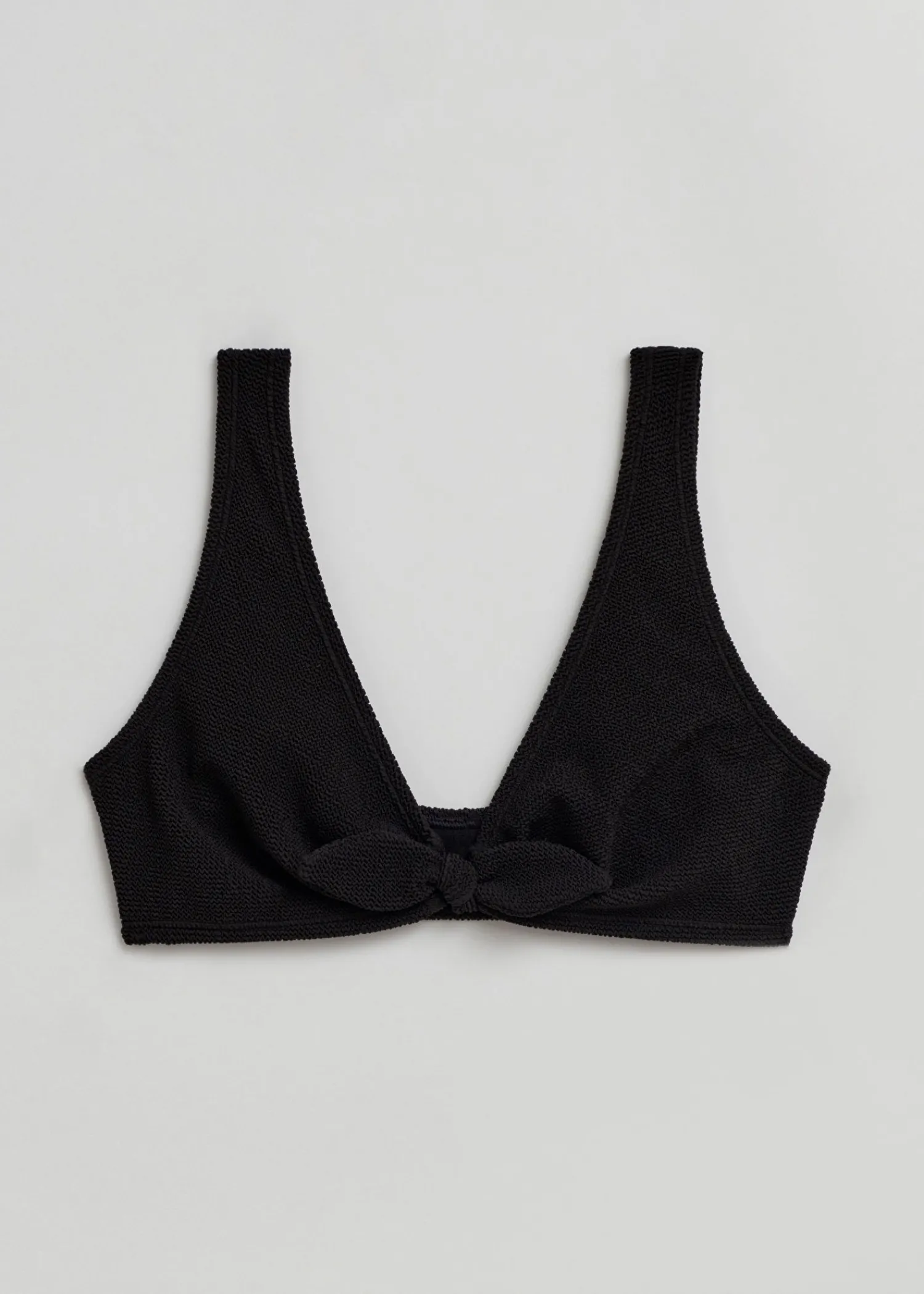 Tekstureret Bikinitop Detaljeret Med Bindeknude Midt Foran. Sidesømslængde: 8,1 Cm/3,2″ (Størrelse 36)