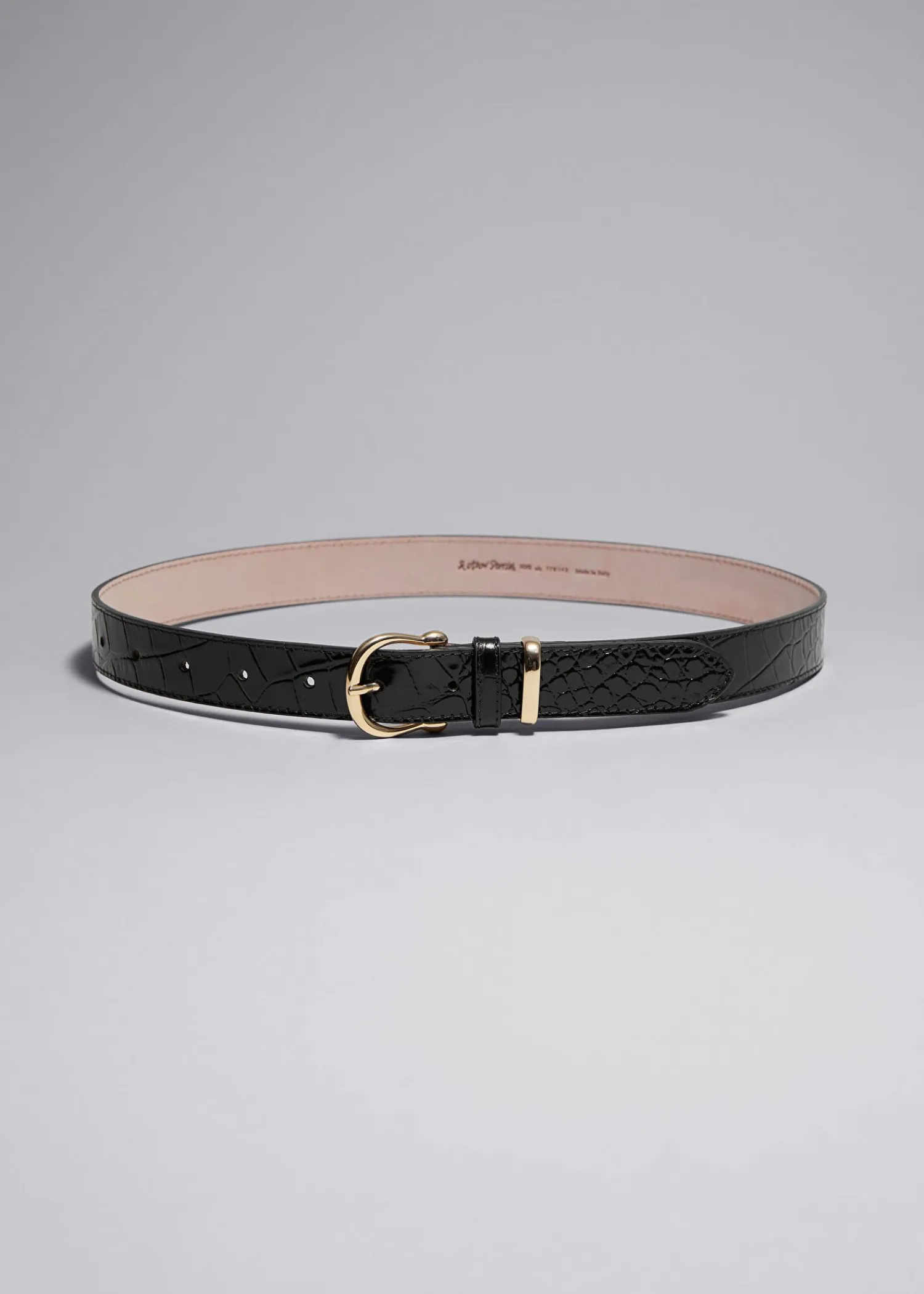 Dette Bælte Er Lavet I Italien, Af Krokopræget Læder, Det Er Designet Til At Sidde På Taljen Og Fastgøres Med Et Poleret Guldfarvet Spænde. Bredde På Bæltet: 3 Cm / 1,2″
