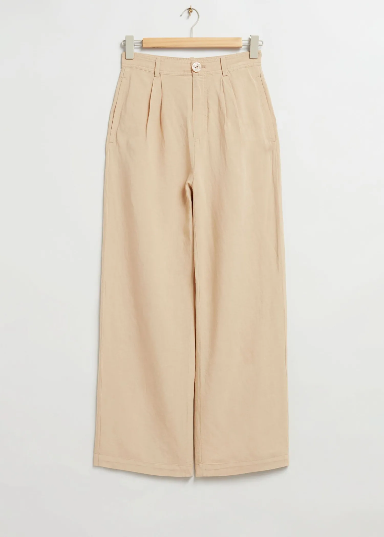 Højtaljede Bukser Lavet Af Hør Med En Bred Silhuet Og Plisserede Detaljer. – Løs Pasform – Duo Lommer – Bæltestropper Længde På Inderben: 74 Cm / 29,1″ (Eu 36 / Uk 10 / Us 4)