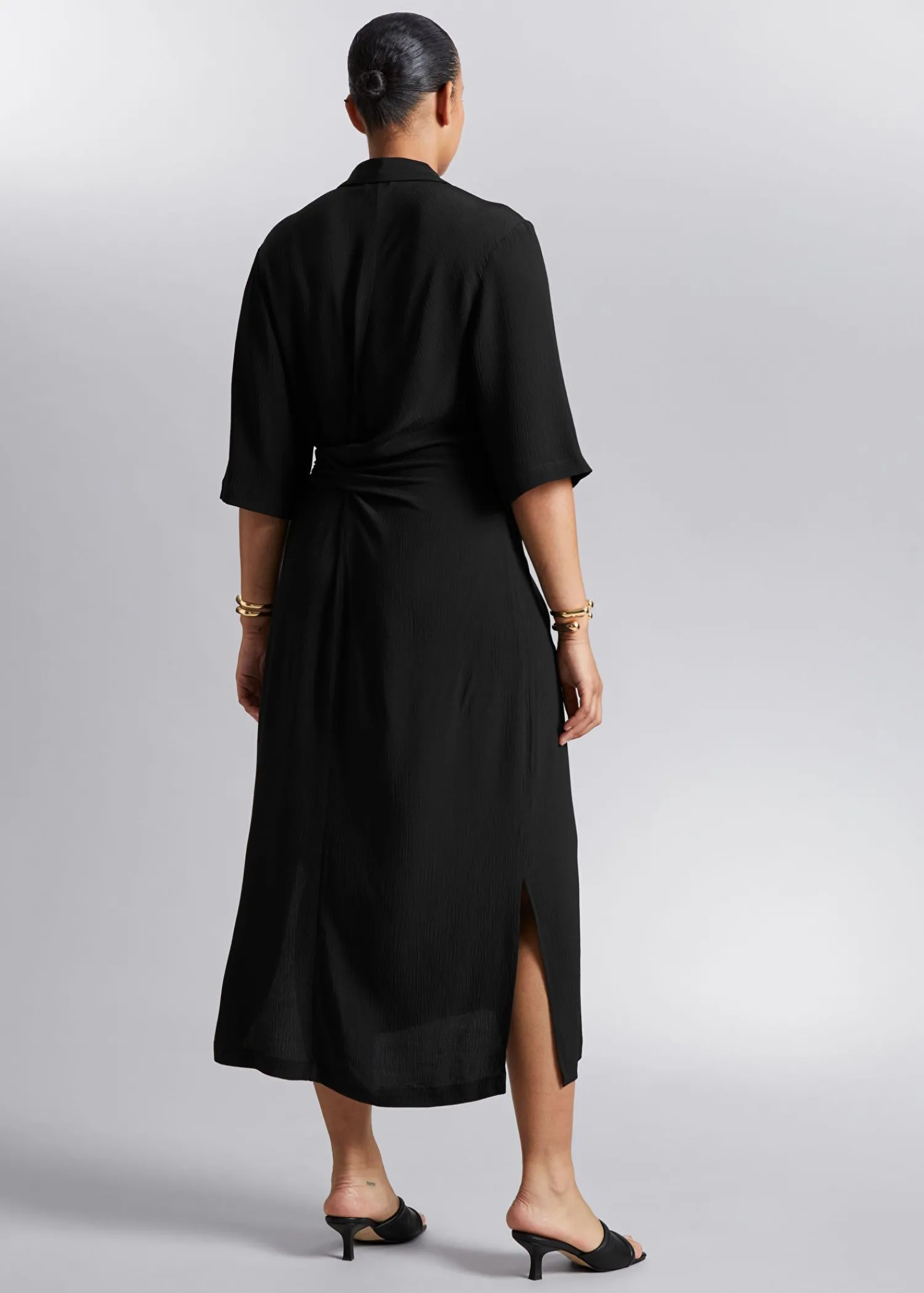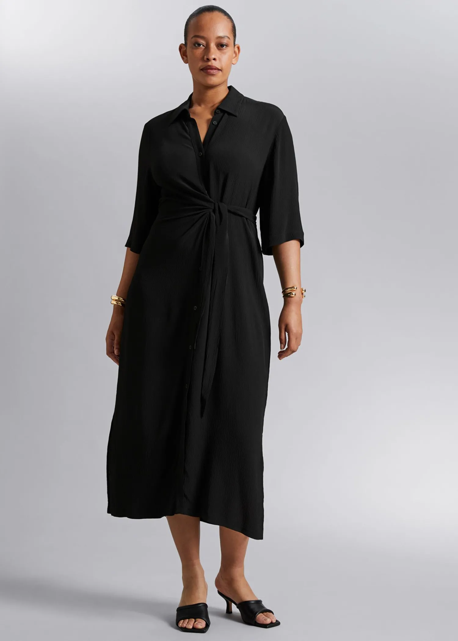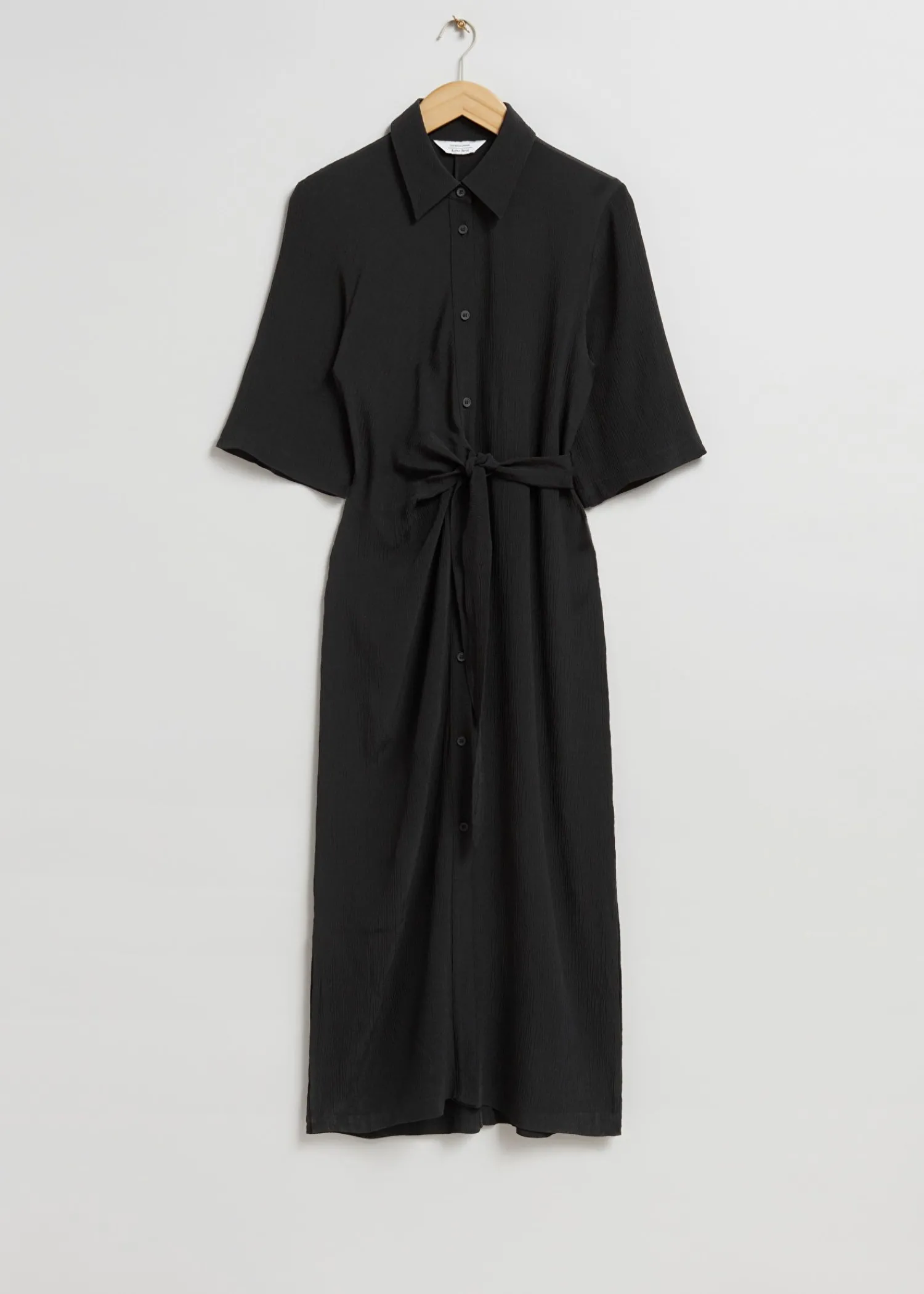Skjortekjole Med Knudedetalje Lavet Af Silkelignende Vævet Stof. Designet Med Dobbelt-Lags Omslag, Bundet I Siden Af Taljen Med En Knappet Stolpe Foran Og Korte Trekvartlange Ærmer. – Normal Pasform – Lige – Centerslids Længde På Kjolen: 123 Cm / 48,4″ (Eu 36 / Uk 8 / Us 4)