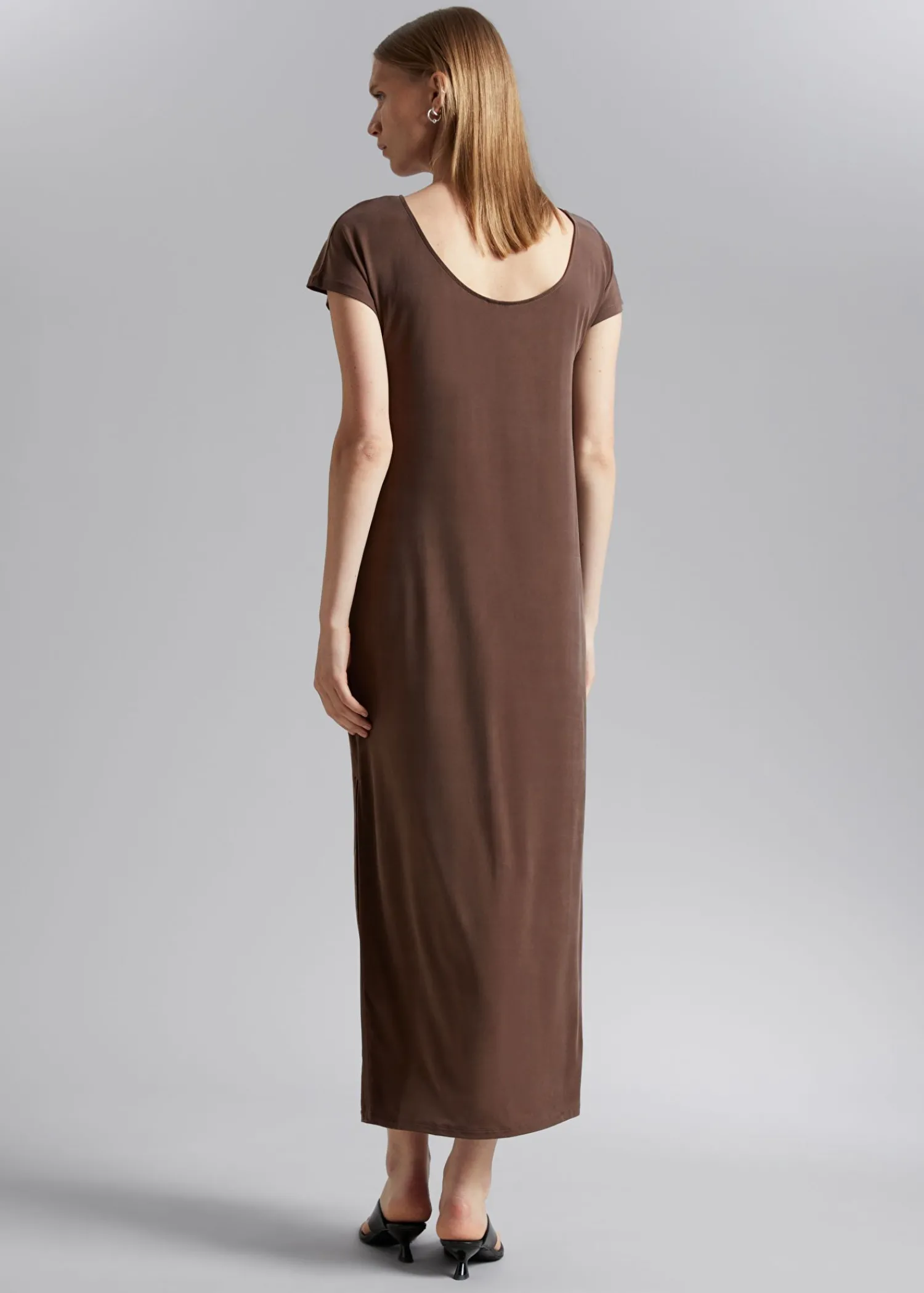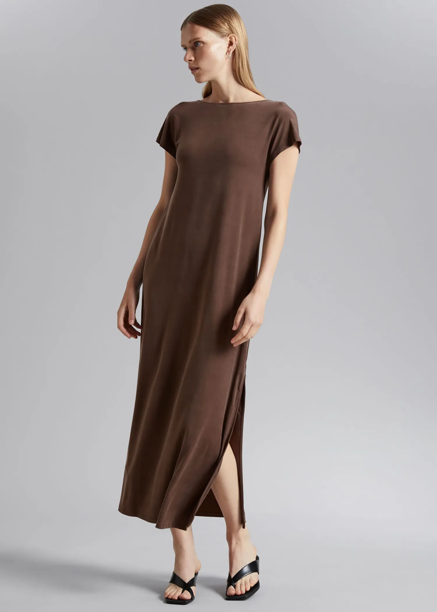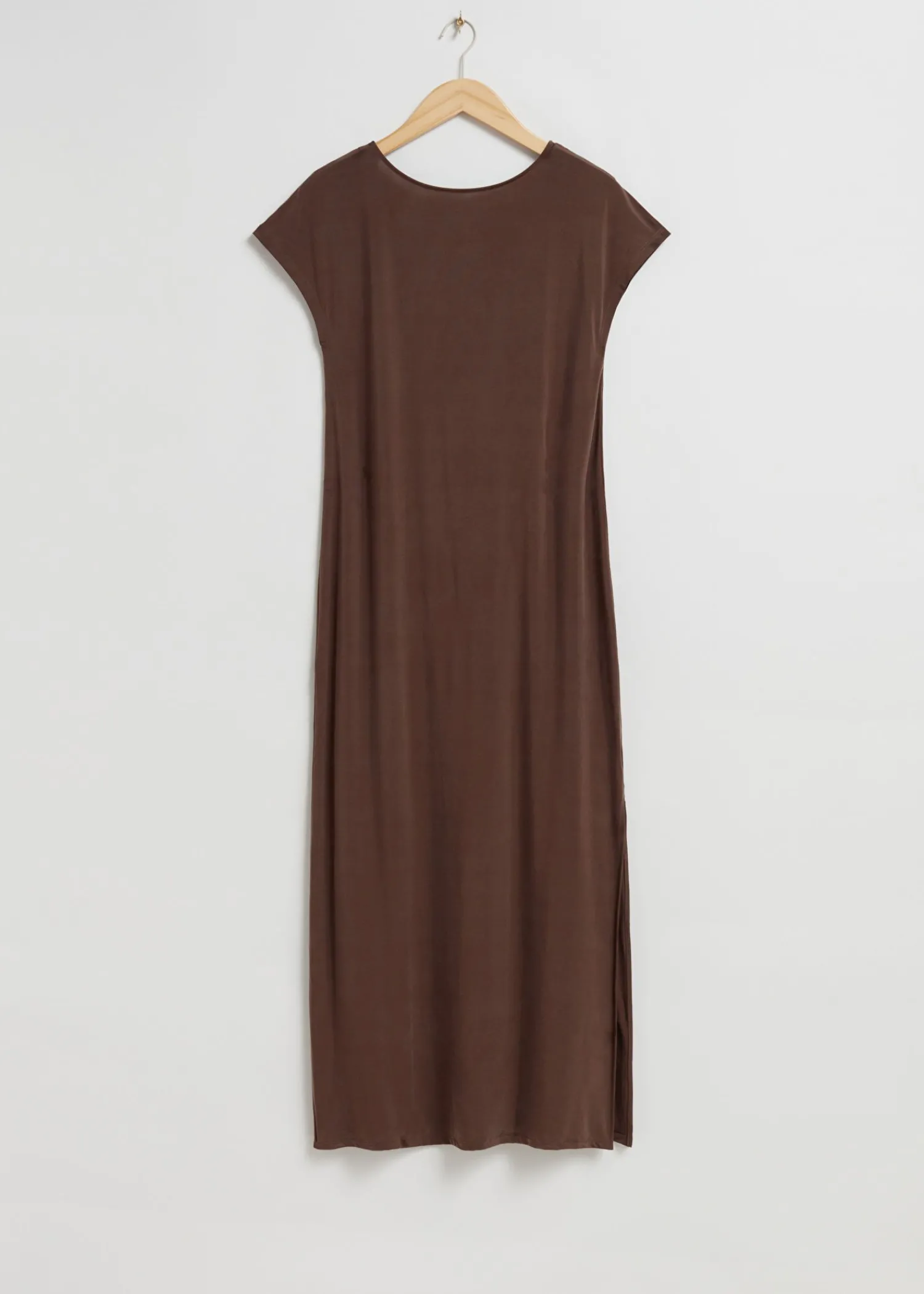 Løst Pasform Cupro-Kjole Lavet Af Stretchjersey. Denne Kjole Er Designet Til Hverdagsbrug Og Har En Bådskåret Halsudskæring, En Rund Ryg Og Korte Ærmer. Skræddersyet Med En Ren, Elegant Finish I En Midi-Længde Silhuet. Kjolens Længde: 130 Cm / 51,2″ (Størrelse S) Stockholm Er Hjemsted For Vores Mest Minimalistiske Stilarter.
