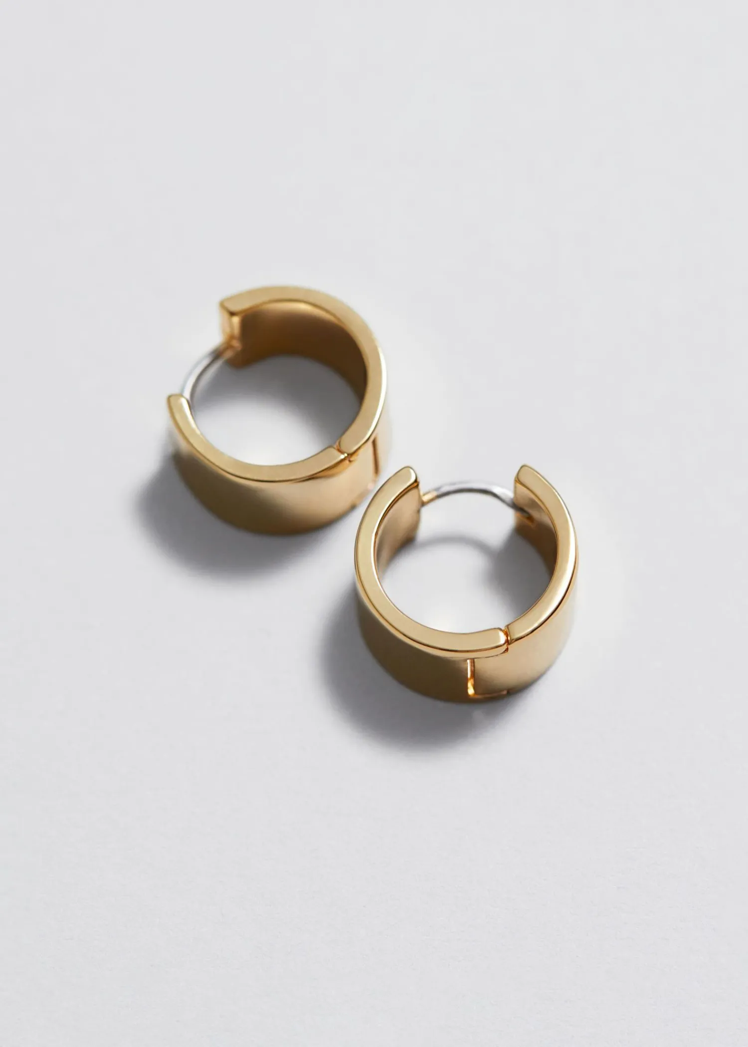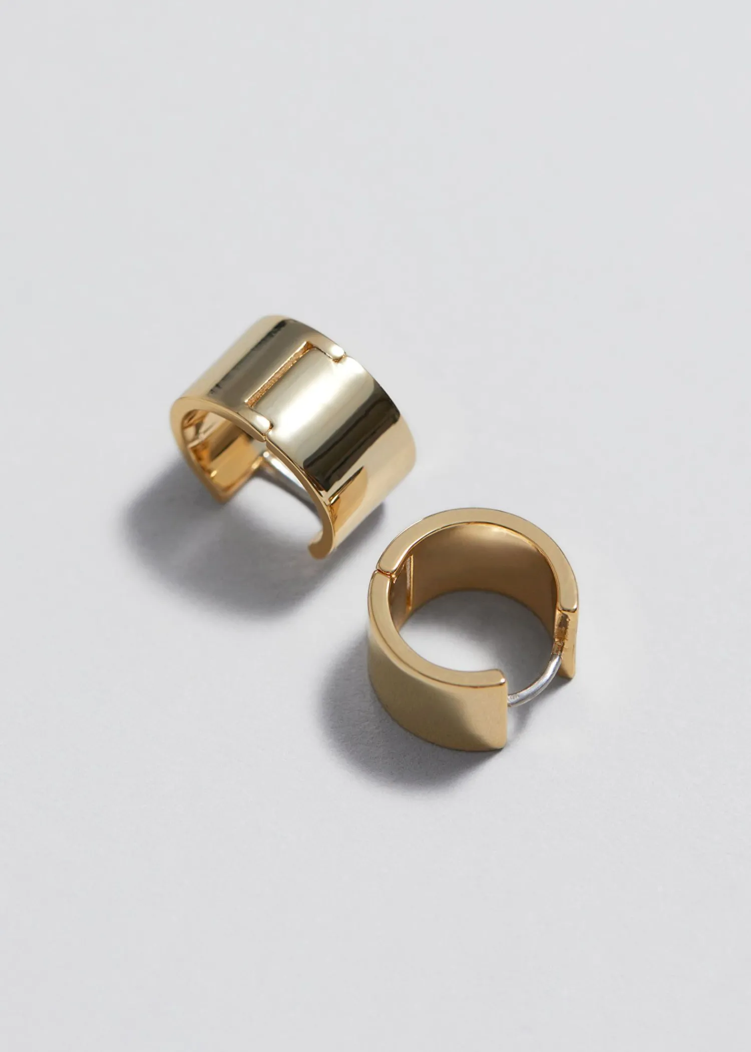 Minimale Designbøjler Lavet Af Messing, Med En Flad Bred Silhuet, Der Sidder Tæt På Din Lap. Dimension Af Bøjler: 1,4 Cm / 0,6″ Nikkeltestet Bemærk Venligst, At Denne Vare Kun Kan Returneres, Hvis Emballagen Er Uåbnet.