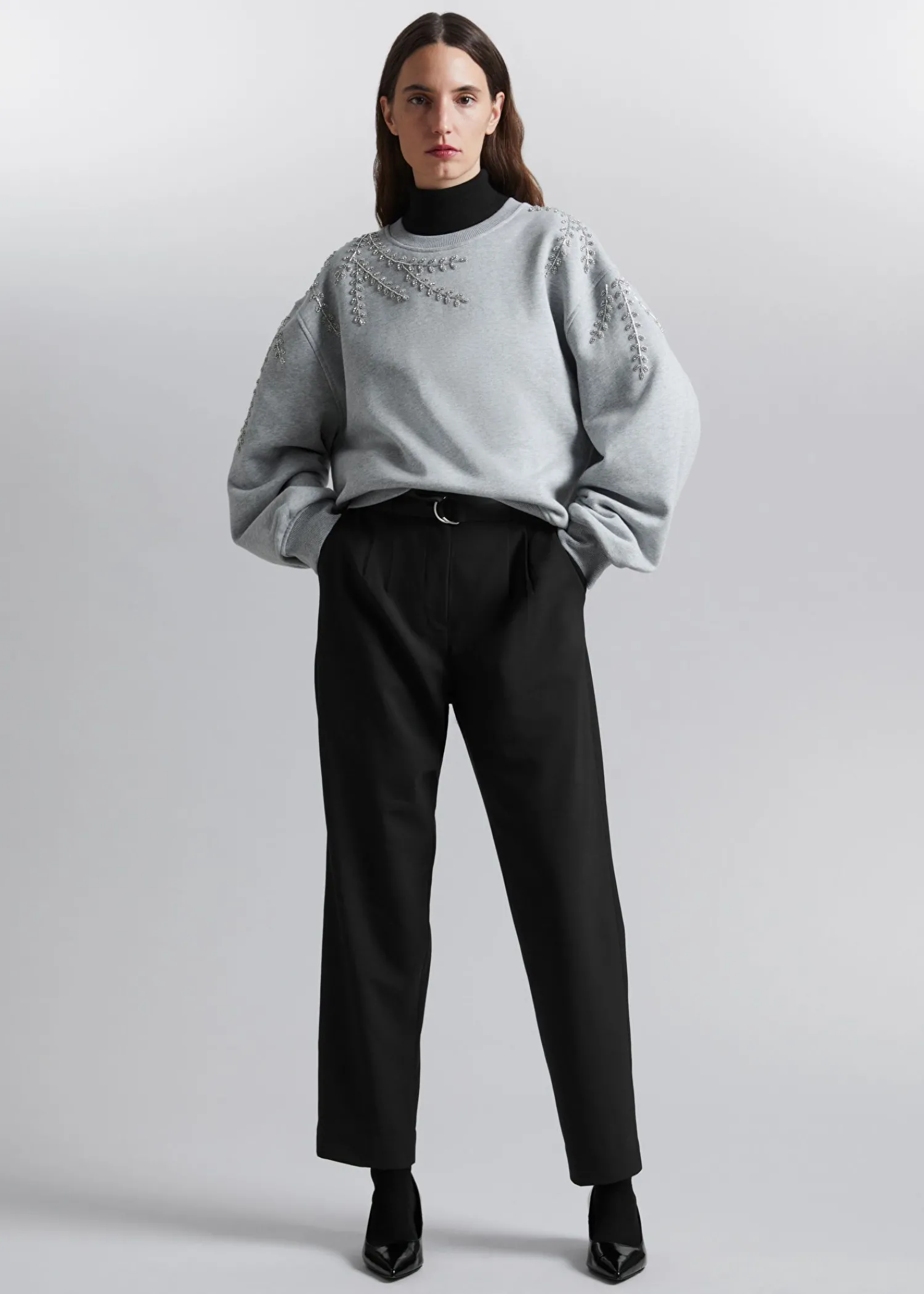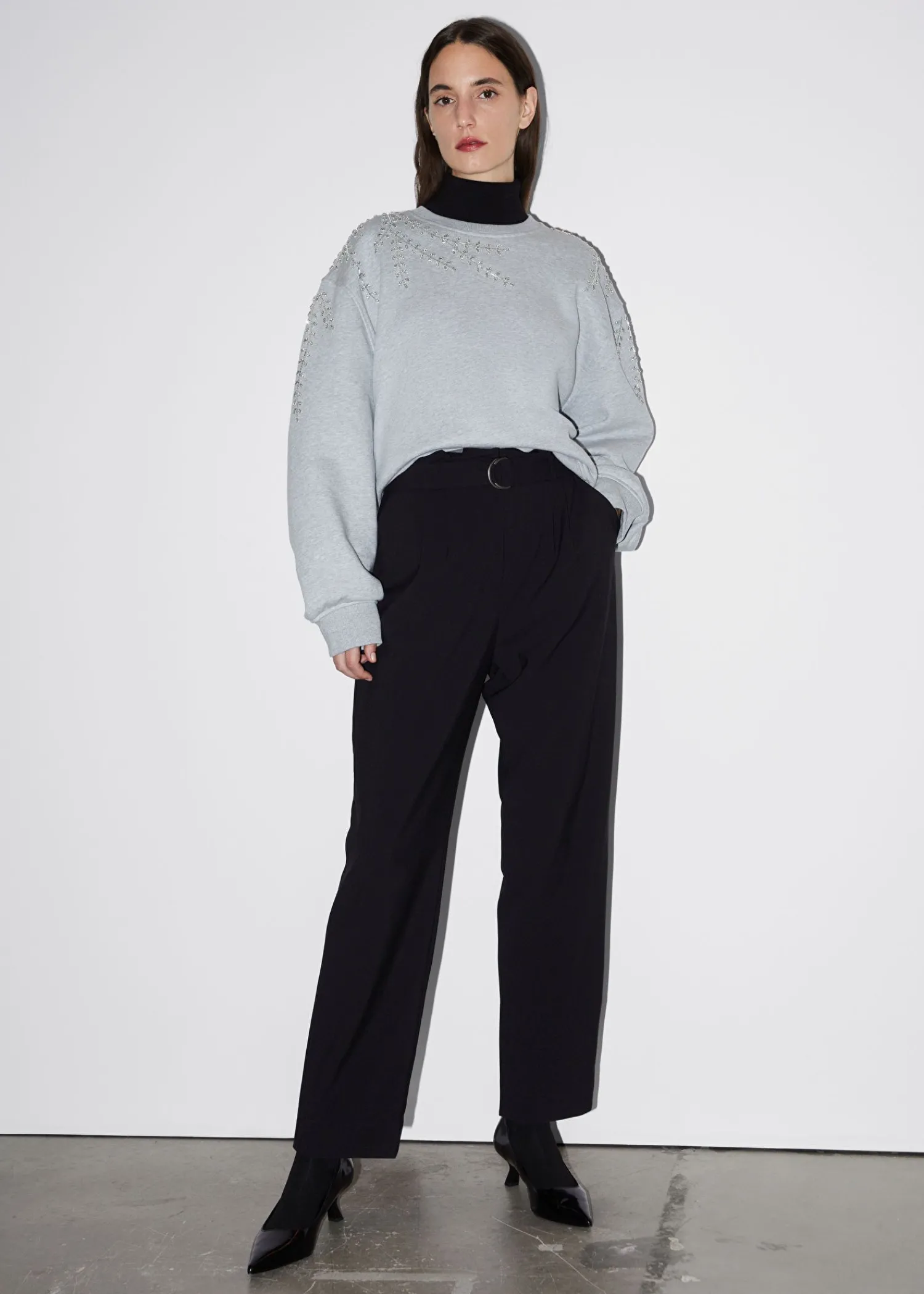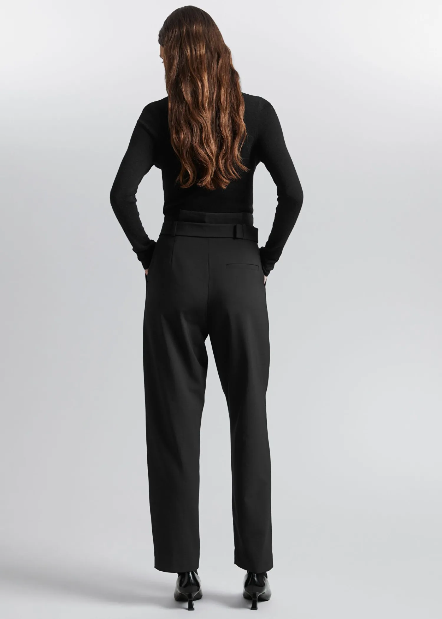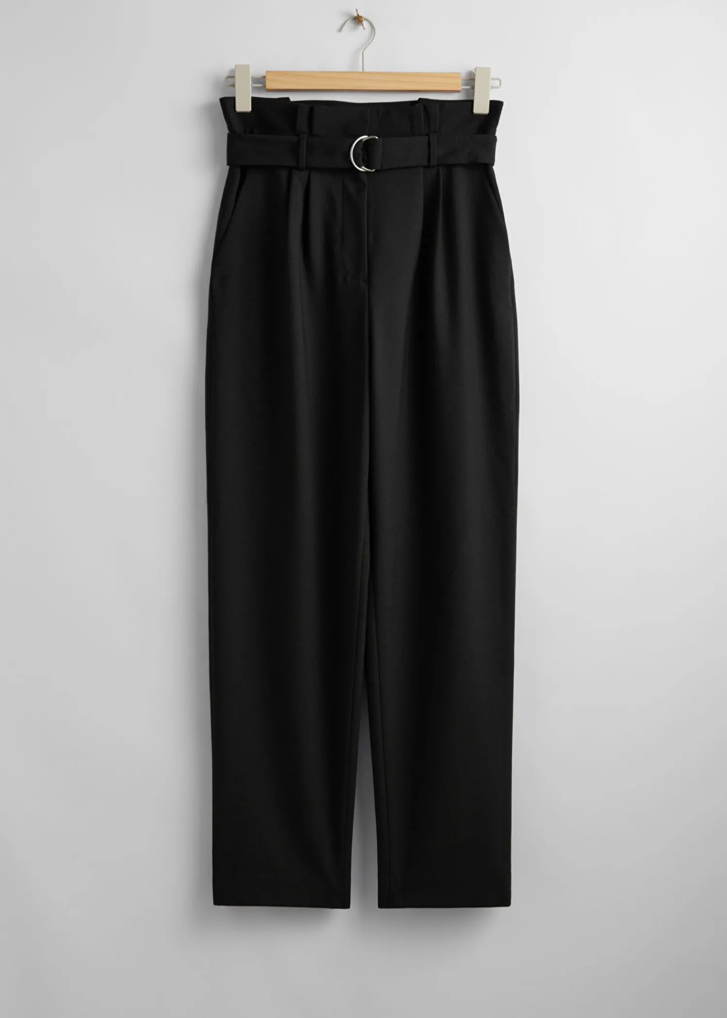 Afslappede Bukser Med Høj Papirposetalje Og En Tilspidset, Afskåret Silhuet. Sikret Med Et Tonalt Metal D-Ring Bælte. Duo Stiklommer Lynlåsgylp Med Krog Og Stanglukning Enkelt Paspoleret Lomme Bagpå Certificeret I Henhold Til Responsible Wool Standard (Cu888809) Indersømslængde: 73 Cm / 28,7″ (Eu 36 / Uk 8 / Us 4)