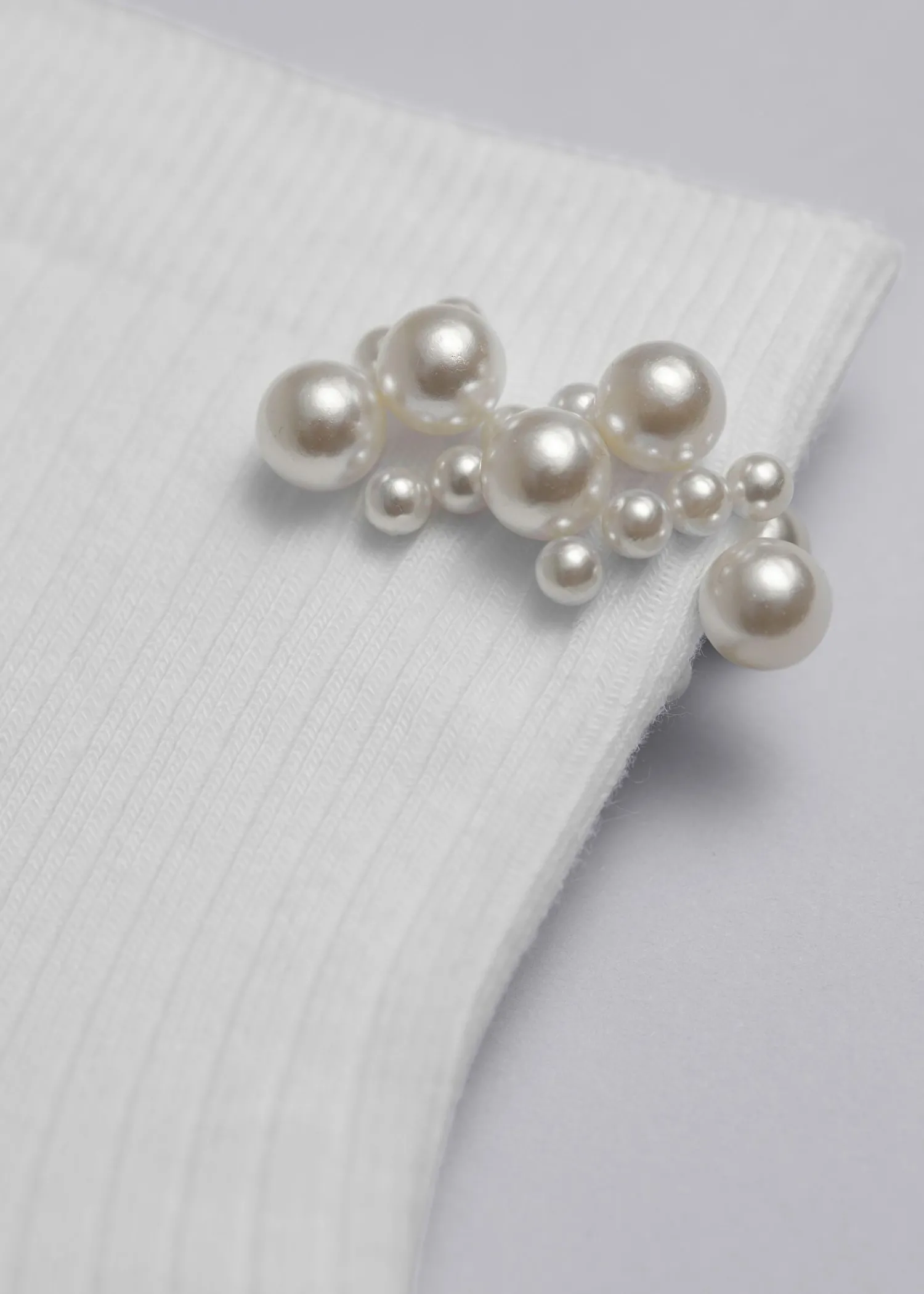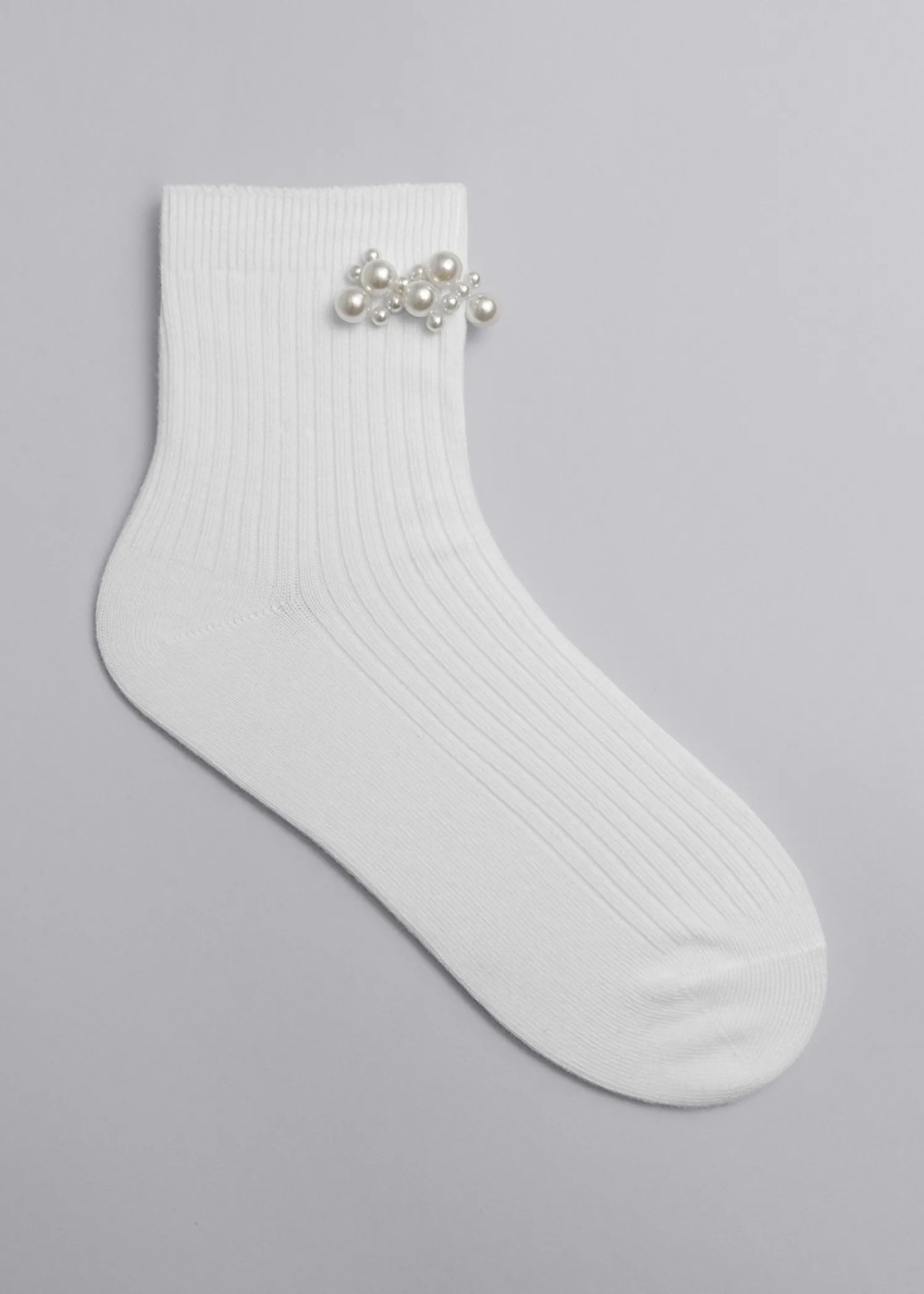 Ribbede Ankelsokker Prydet Med Perleperler Ved Manchetten.