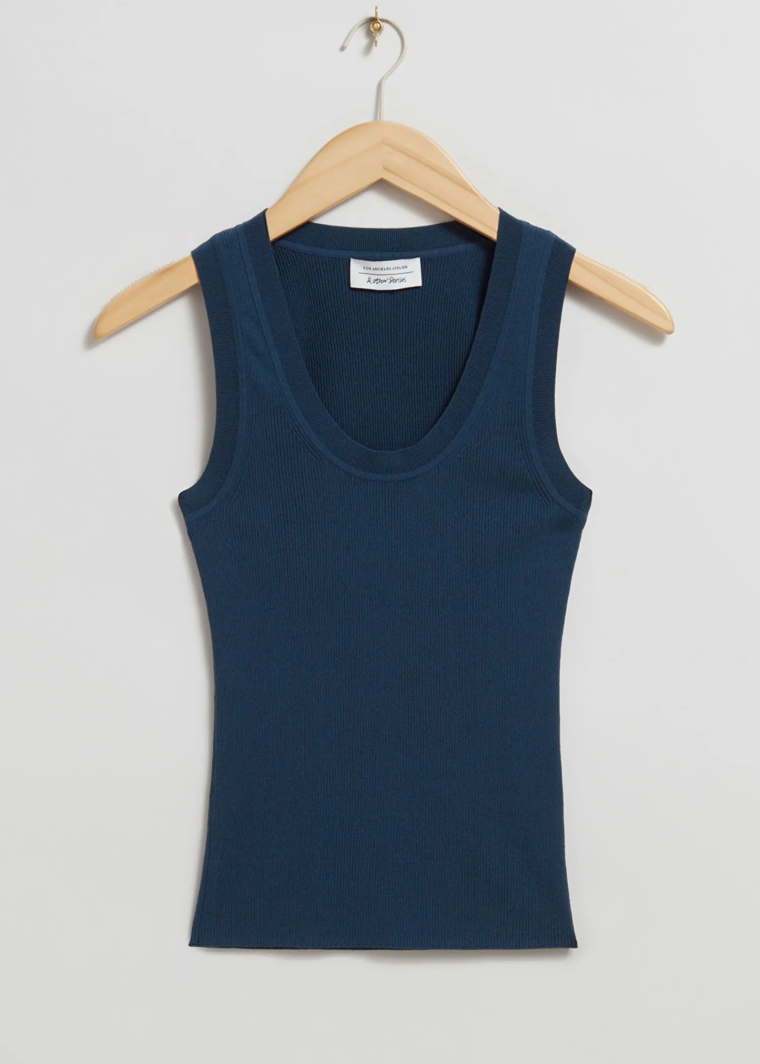 Ribbet Vesttop Lavet Af Et Blødt, Silkeblødt Blandet Materiale. Designet Med En Rund Halsudskæring Foran Og Bagpå Med En Allover Ribfinish I En Slim-Fit Silhuet. Længde På Toppen: 55 Cm / 21,7″ (Størrelse S)