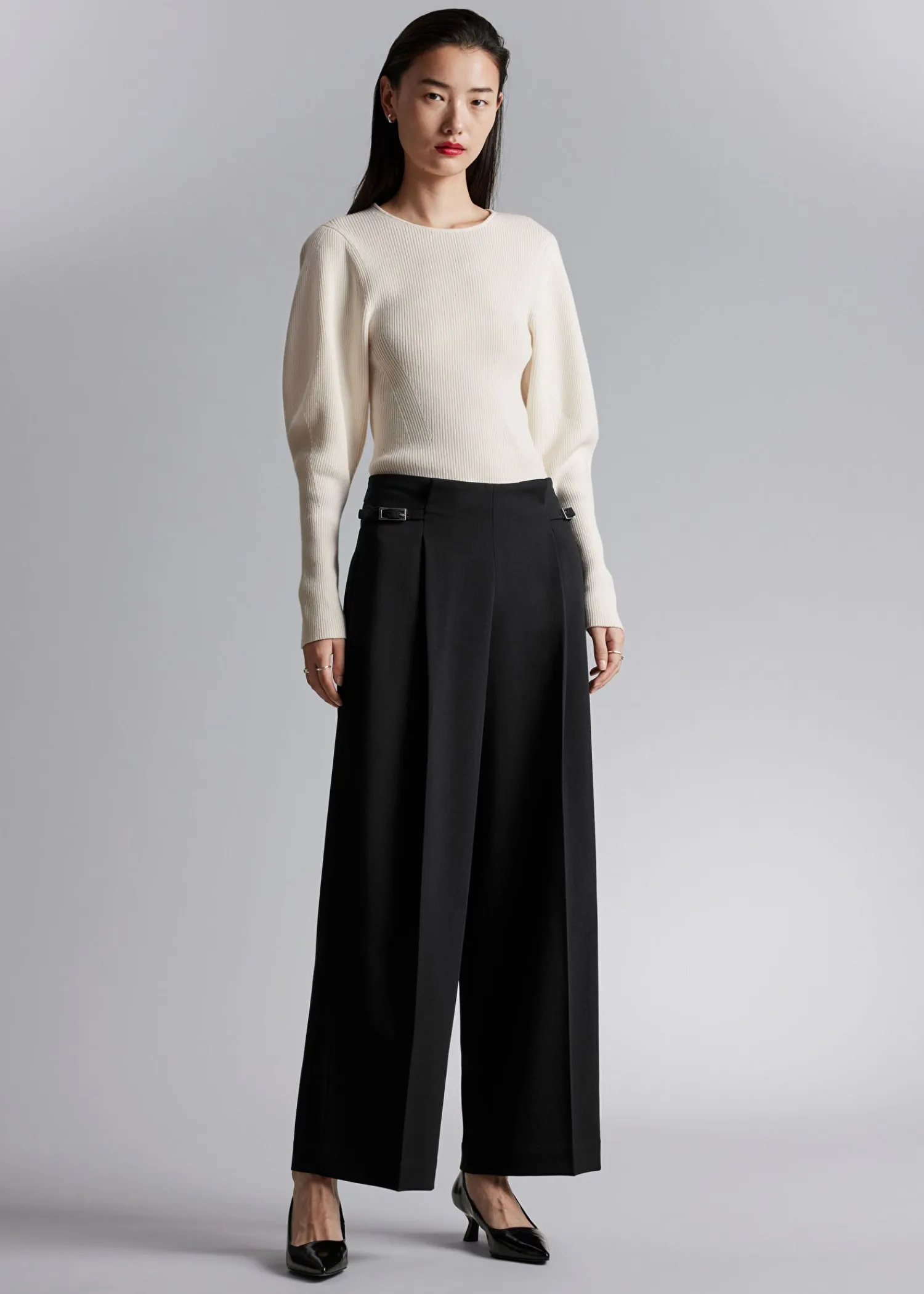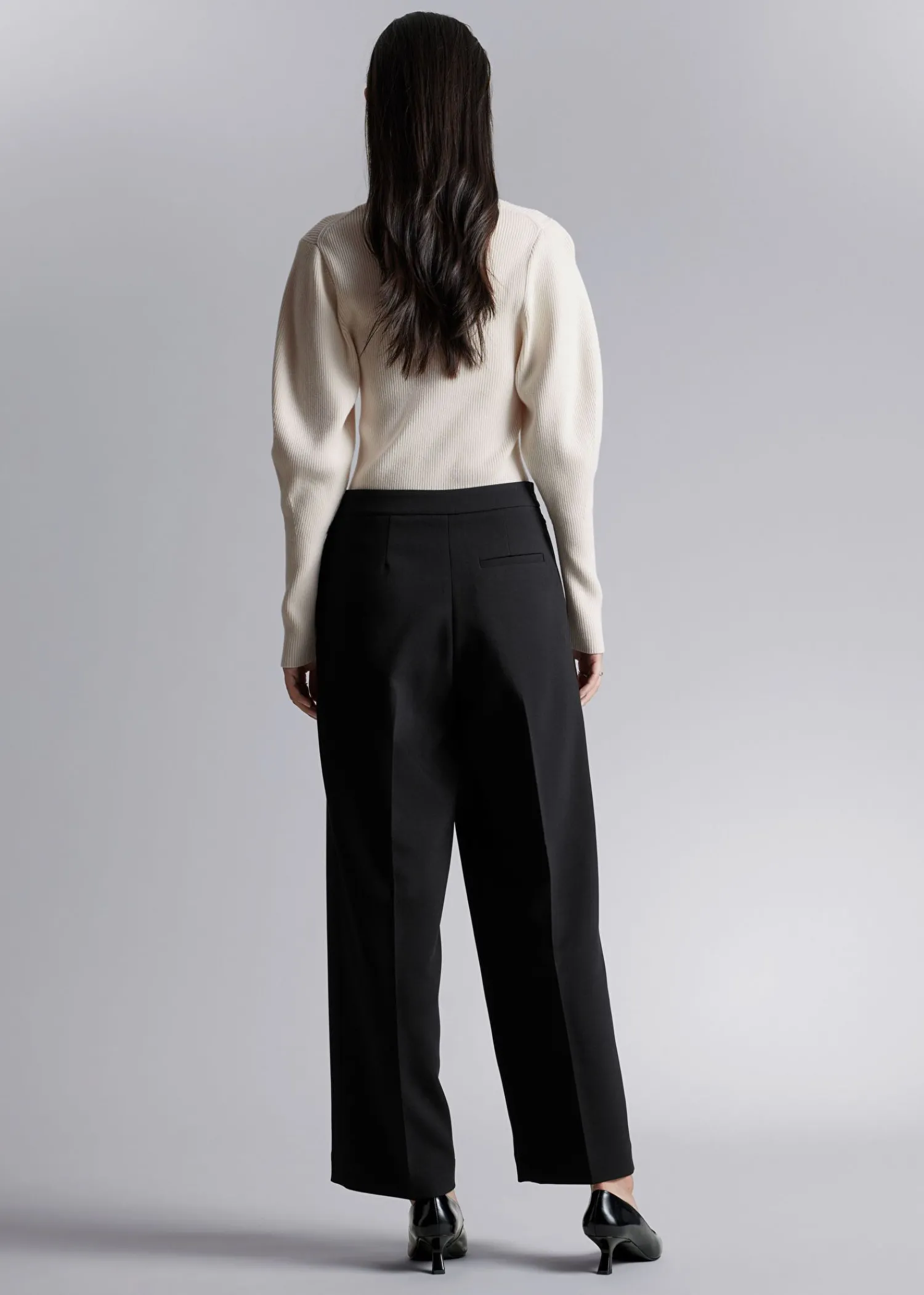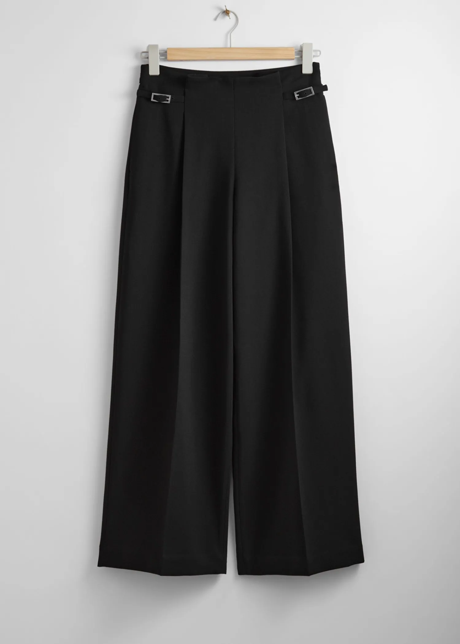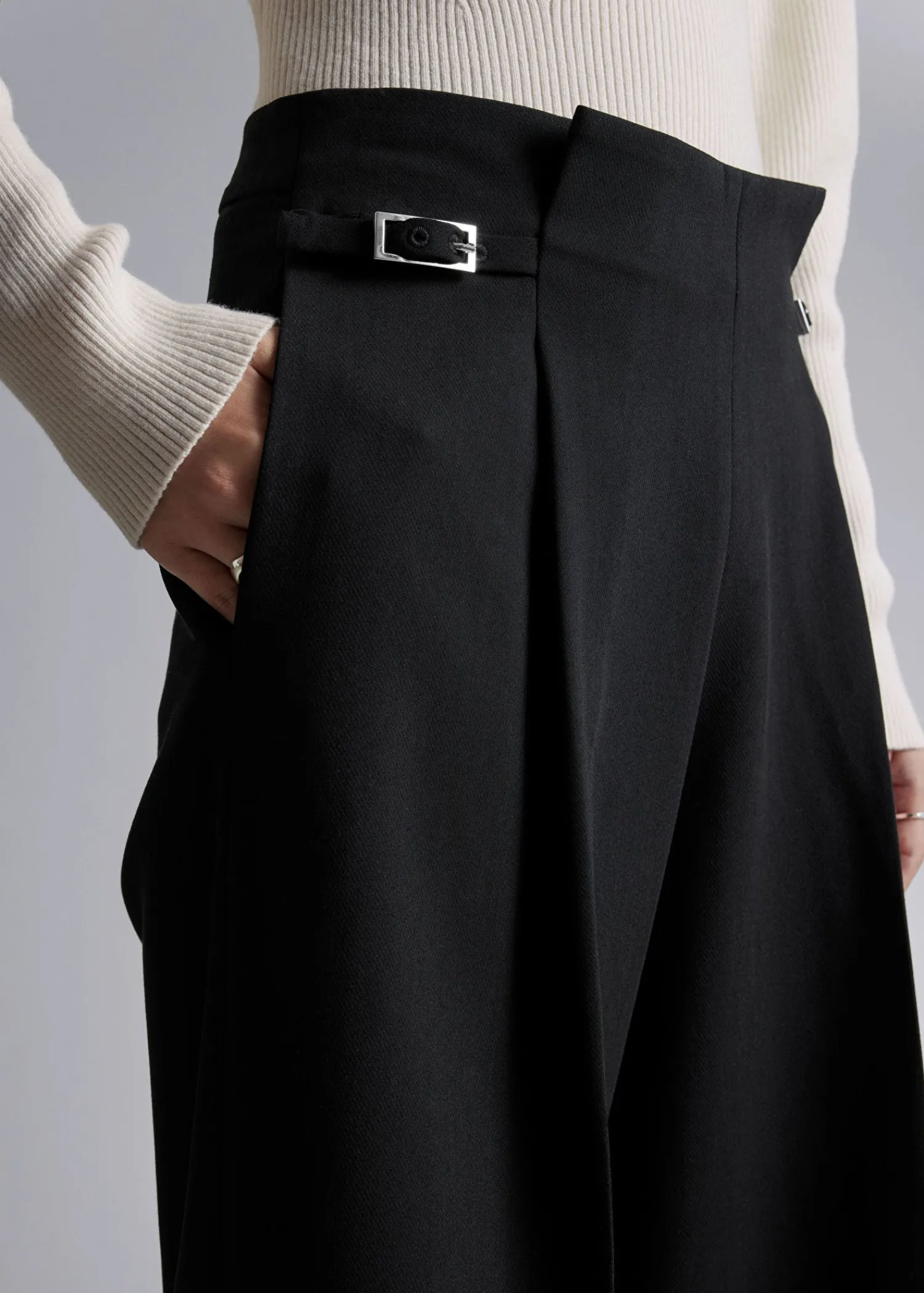Højtaljede Bukser Med En Beskåret, Tilspidset Silhuet Og Trykfolder. Metalspændedetaljer I Taljen Duo Sidesømslommer Og Enkelt Paspoleret Lomme Bagpå Lynlås I Siden Længde På Indersøm: 73,5 Cm / 28,9″ (Eu 36 / Uk 8 / Us 4)