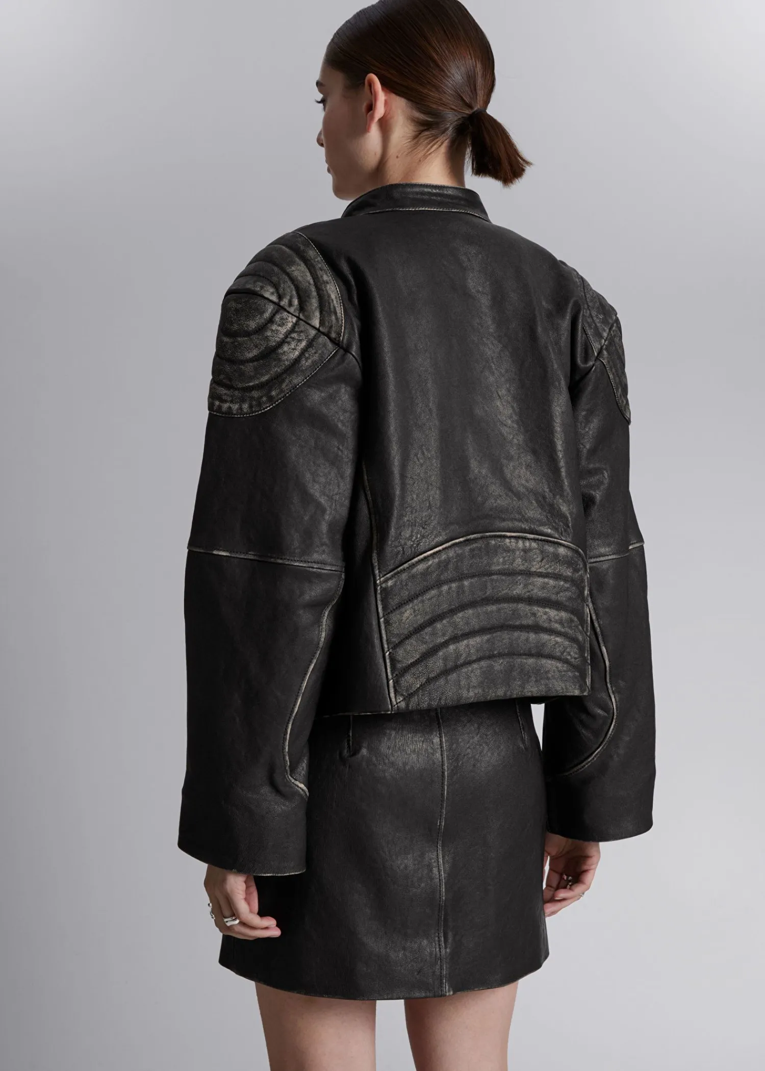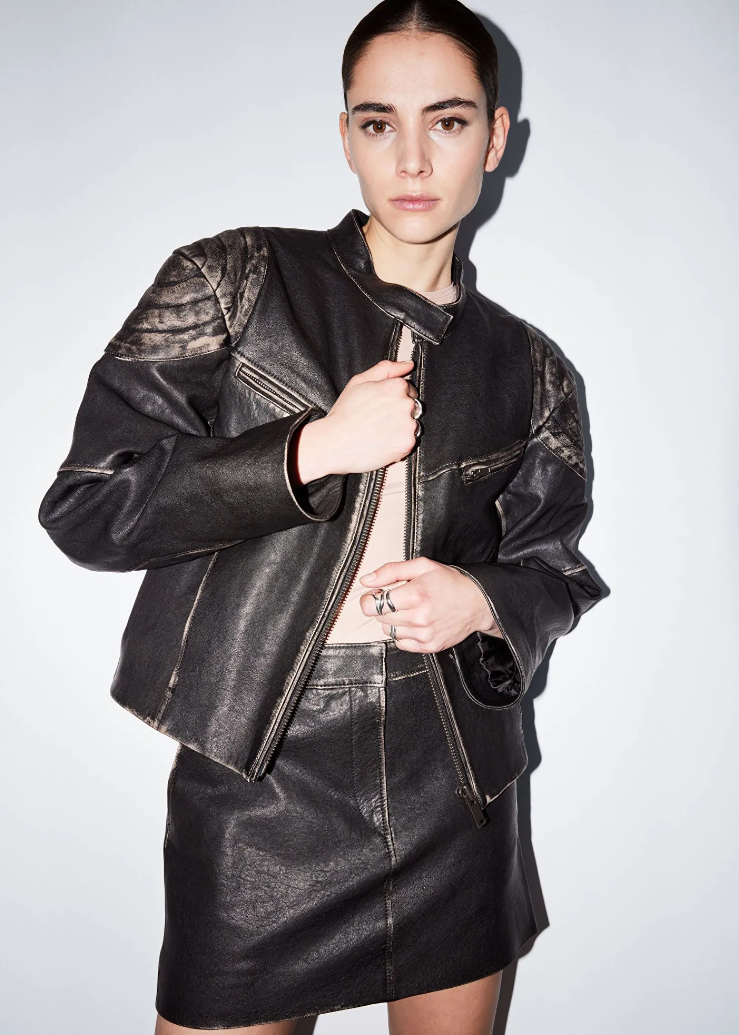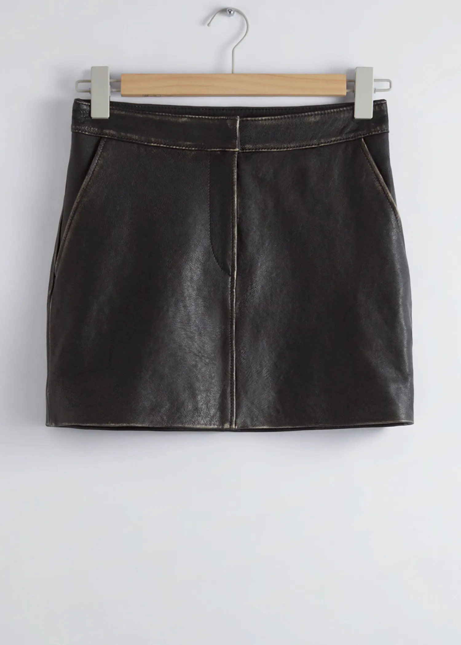 Læder Mini-Nederdel Detaljeret Med Duo Paspolerede Lommer Foran. Fuldt Forede Syede Sømme Skjult Lynlåsgylp Med Krog- Og Stanglukning Duo Sidesømslommer Længde På Nederdel: 35 Cm / 13,8″ (Eu 36 / Uk 8 / Us 4)
