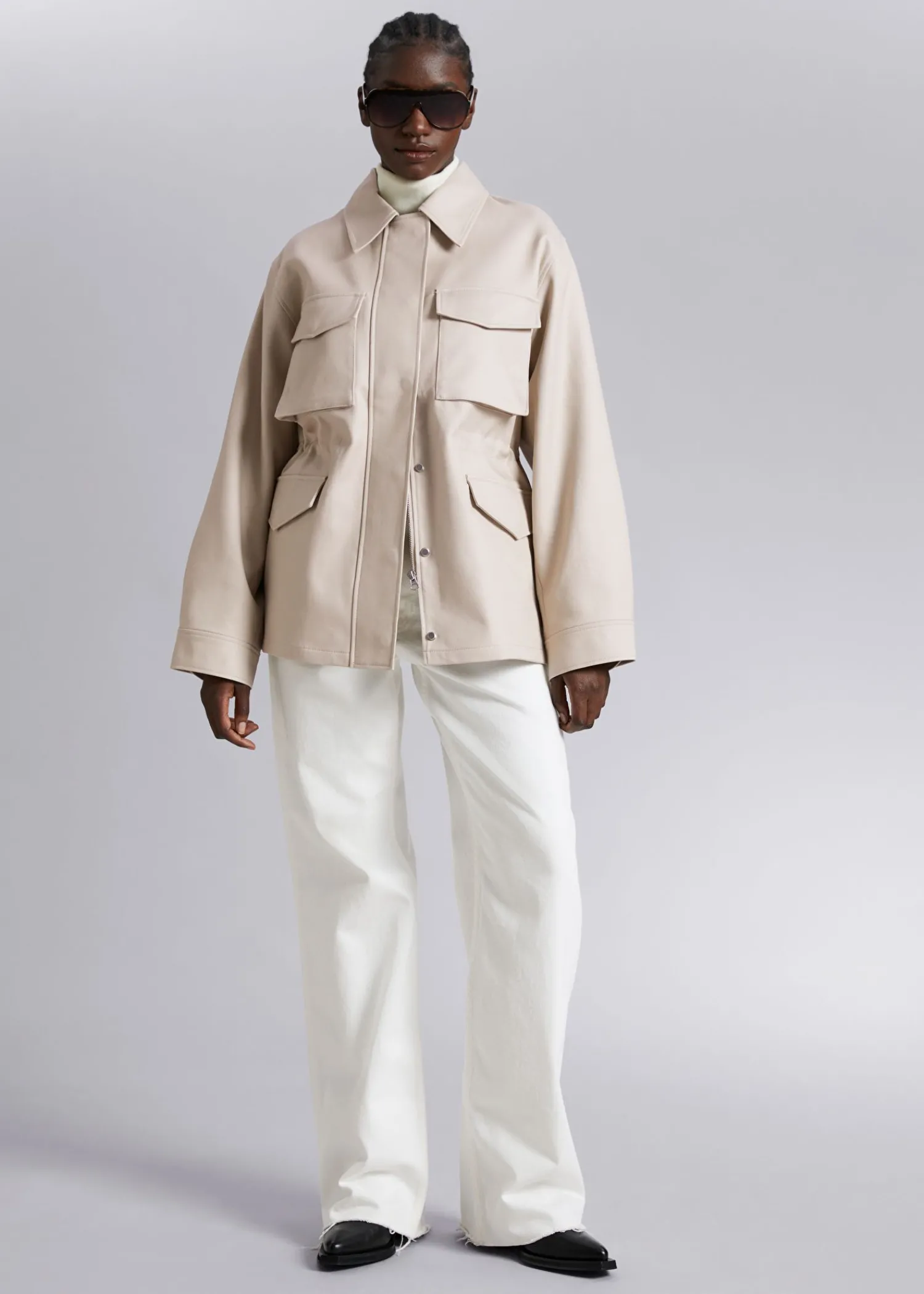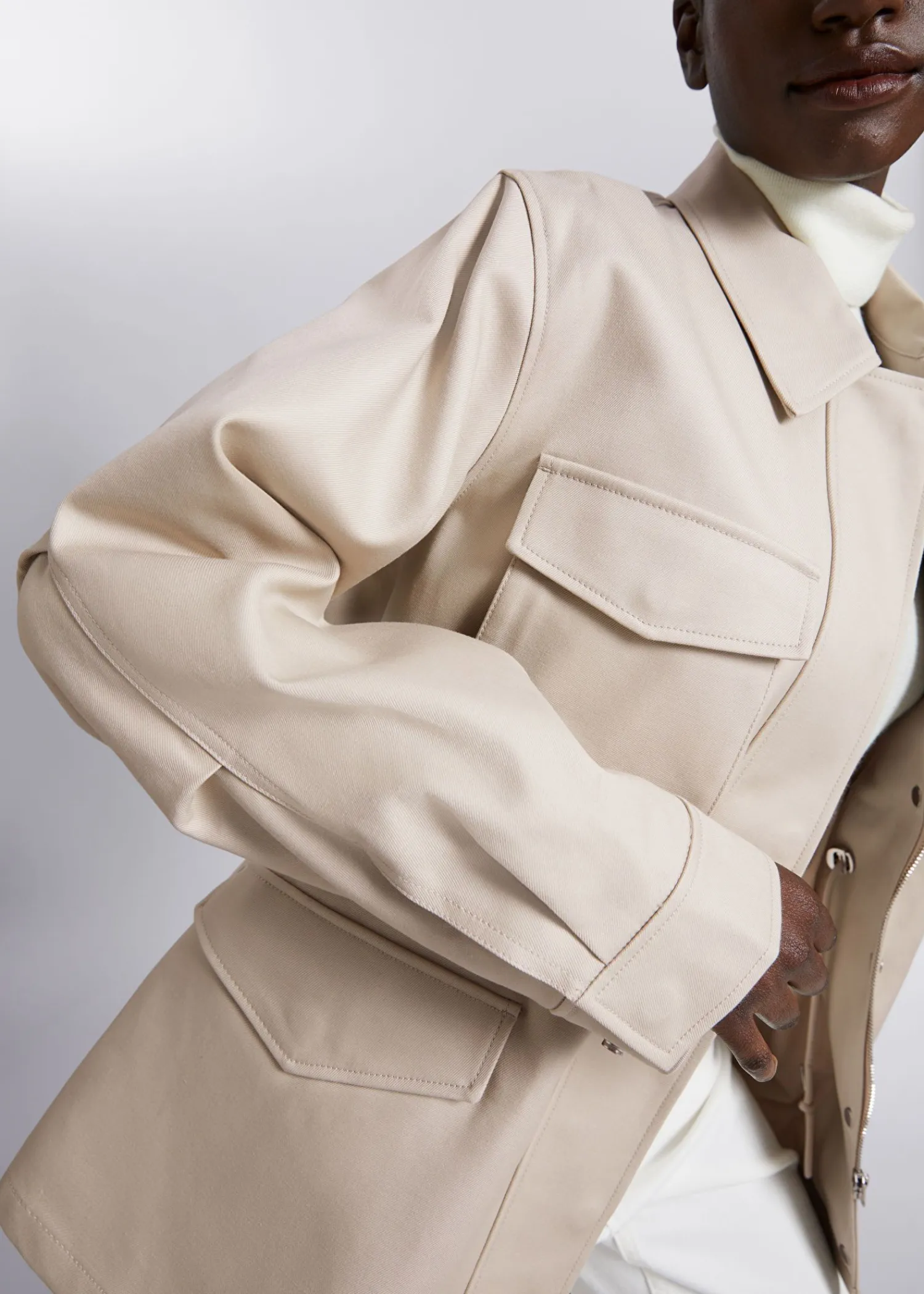 Utility-Jakke Med Duo Brystlommer, Duo Forlommer Med Klap Og Snøre I Taljen. Skjult Lynlås I Midten Foran Og Trykknapper Manchetter Med Knap Længde På Jakken: 73 Cm / 28,7″ (Eu 36 / Uk 8 / Us 4)