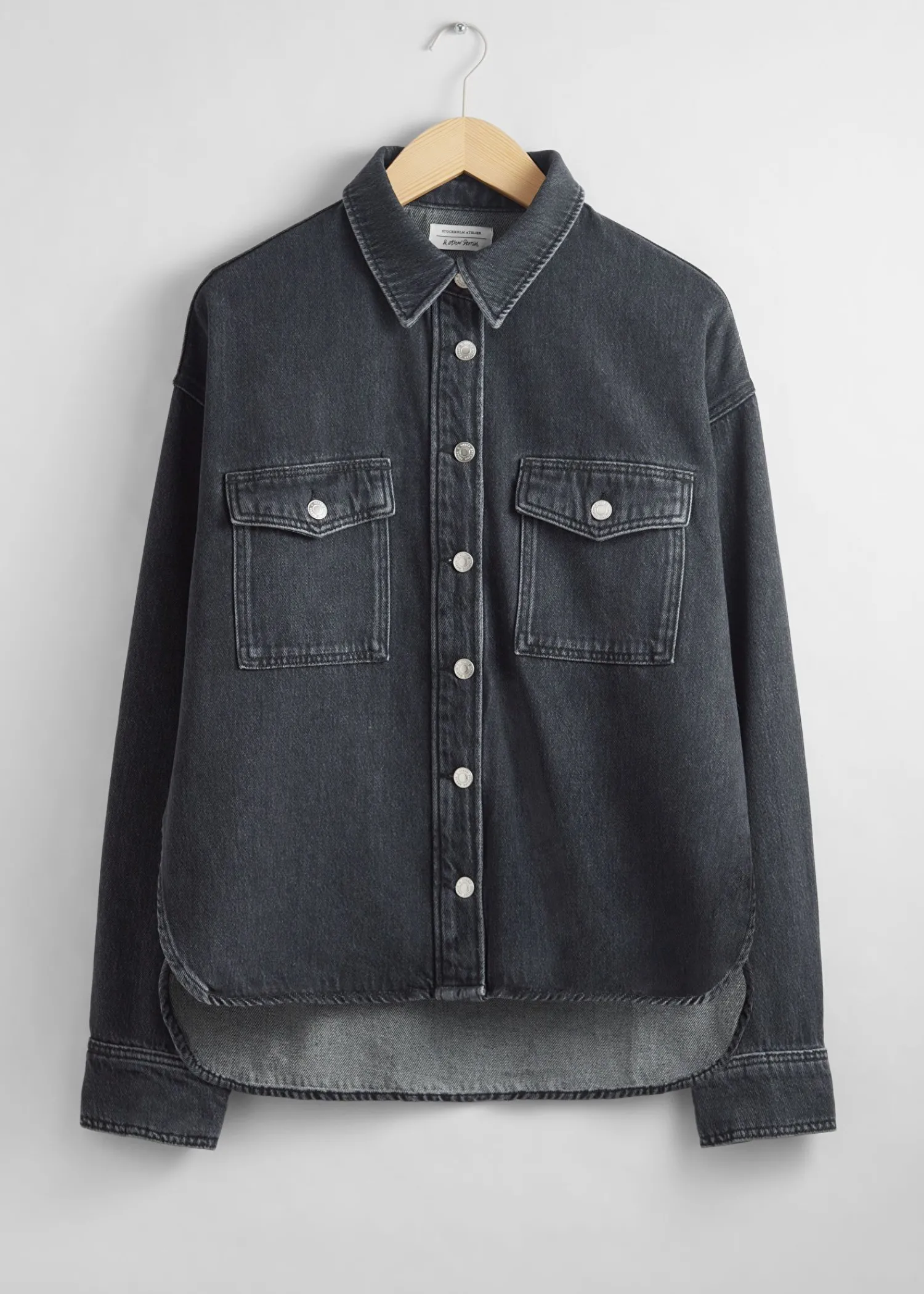 Afslappet Denimskjorte Med Krave Med Duo Brystlommer Og En Lidt Længere Ryg. Fem Knaplukninger I Midten Foran. Knappede Manchetter Længde På Skjorte: 71 Cm / 28″ (Str. S)