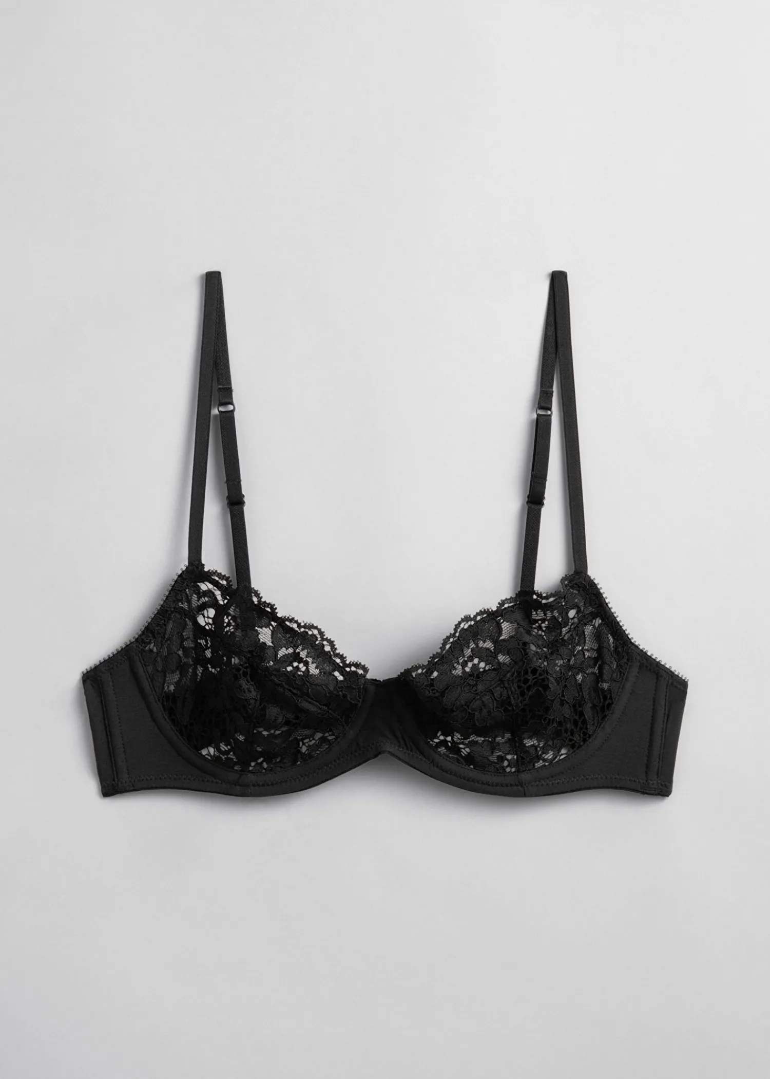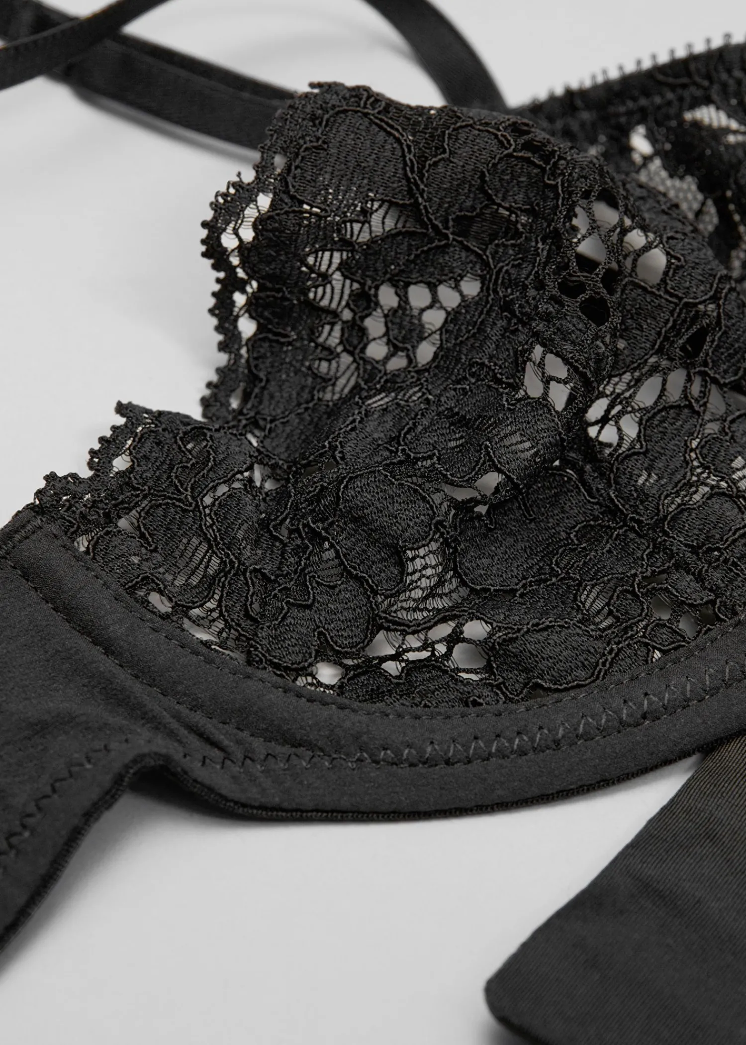 Bøjle-Bh Med Blomstret Blondemotiv Og Justerbare Skulderstropper. Kroglukning Bagpå