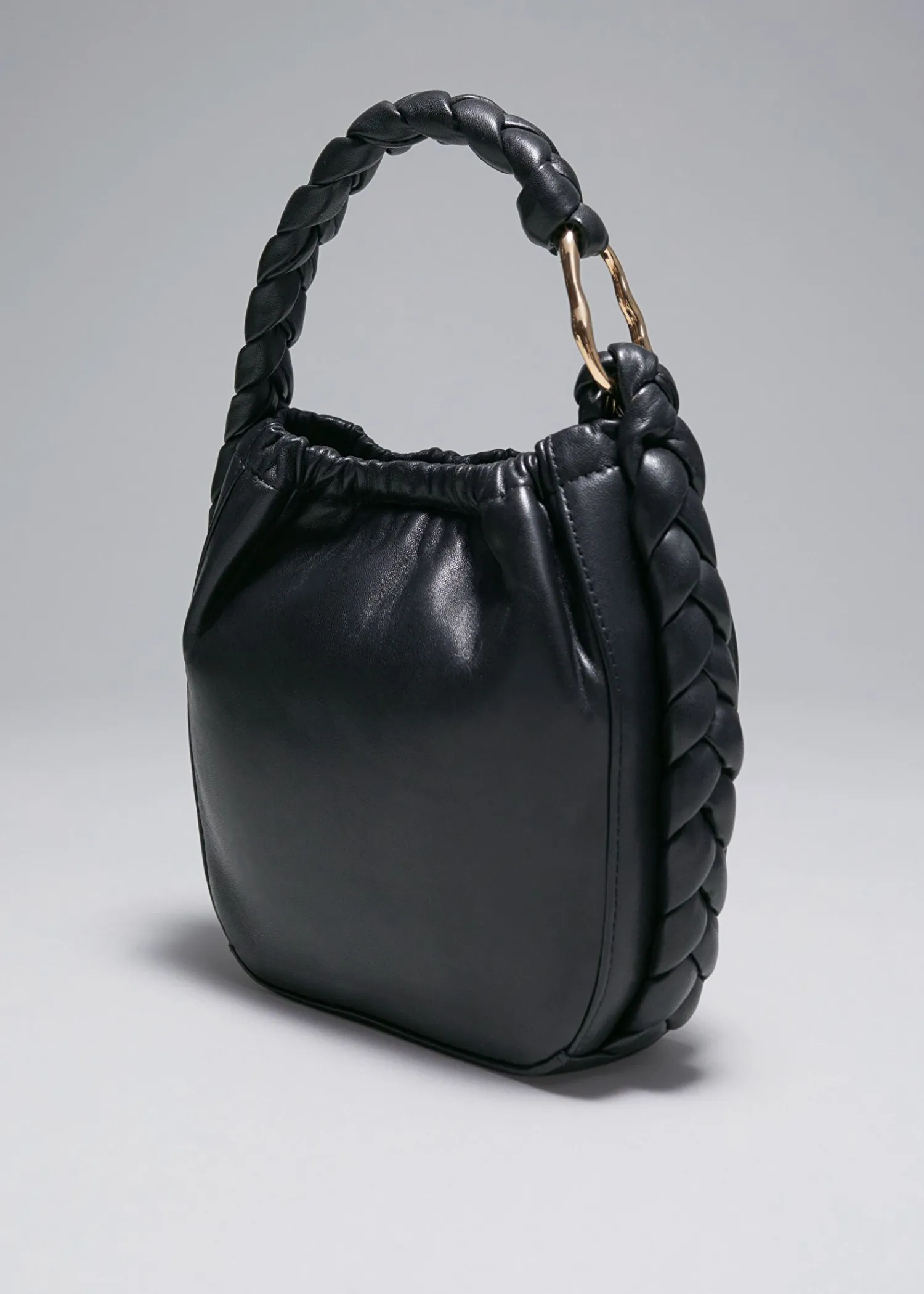 Fremstillet Af Smidigt Læder I En Blød Bøtteform. Denne Lille Taske Er Detaljeret Med Et Flettet Håndtag Og En Guldtonet Hardware. Det Bomuldsforede Indre Rummer En Inderlomme Og En Skjult Magnetisk Lukning. Højde: 19 Cm / 7,5″ Længde: 16,5 Cm / 6,5″ Dybde: 5,5 Cm / 2,2″ Håndtagsfald: 12 Cm / 4,7″