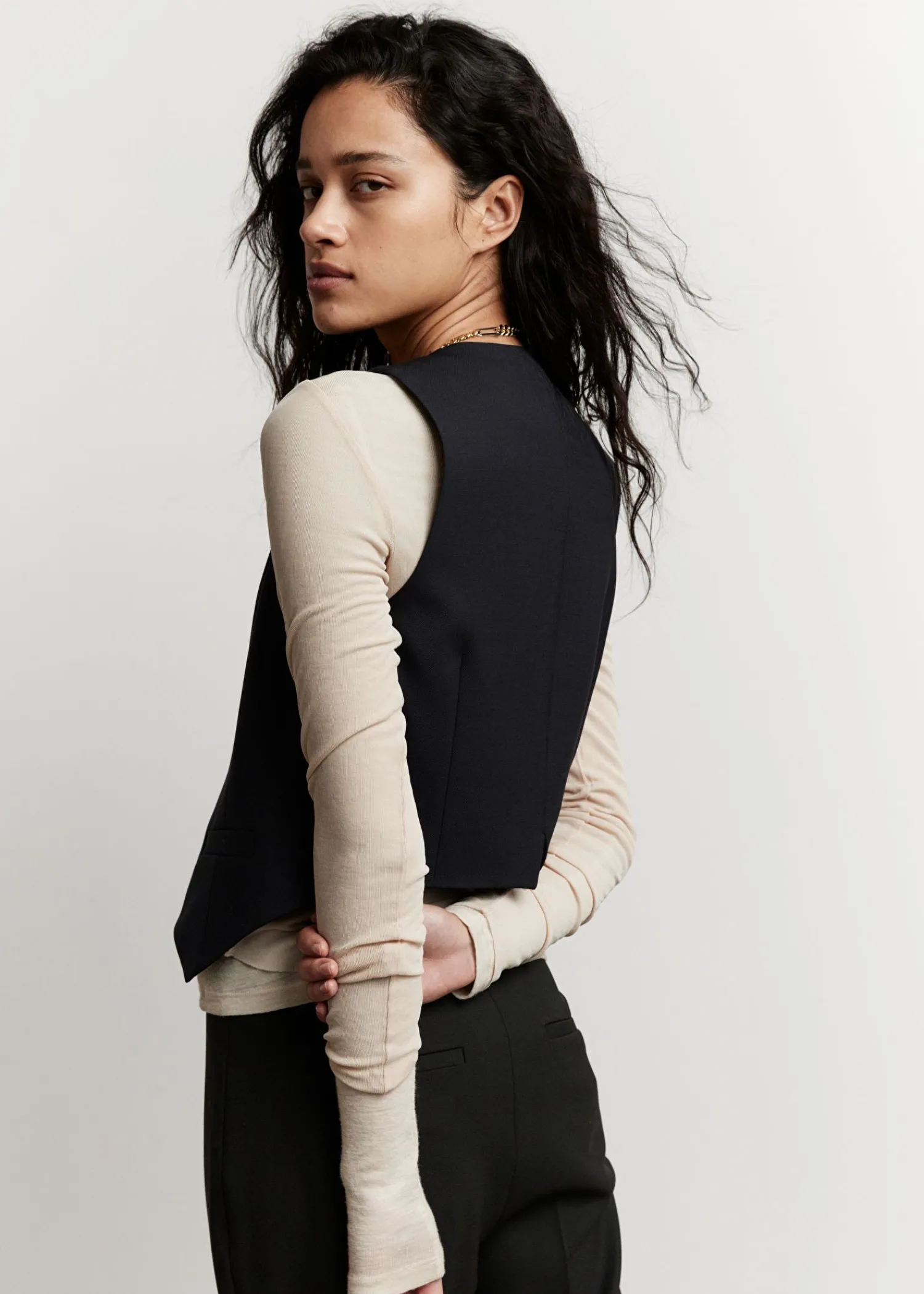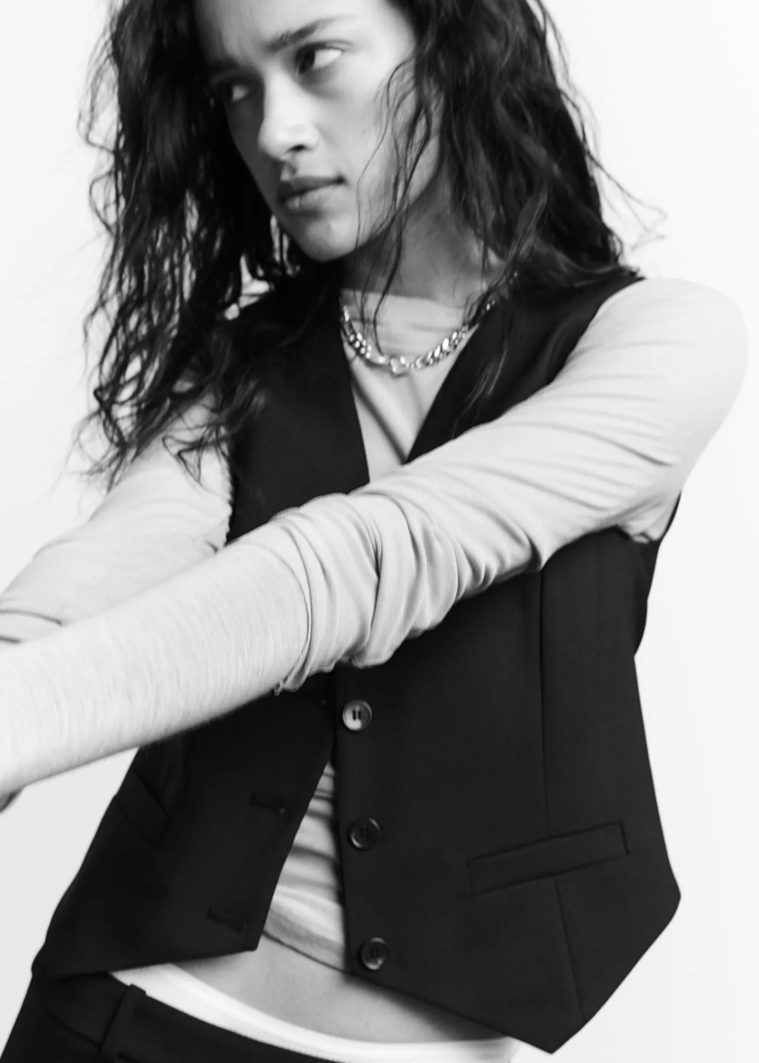 Enkeltradet Vest Designet Med Duo Paspolerede Lommer. Regular Fit Fuldt Foret V-Udskæring 46% Rws Uld Certificeret Af Control Union 893290 Længde På Vest: 37 Cm / 14,6″ (Eu 36 / Uk 8 / Us 4)