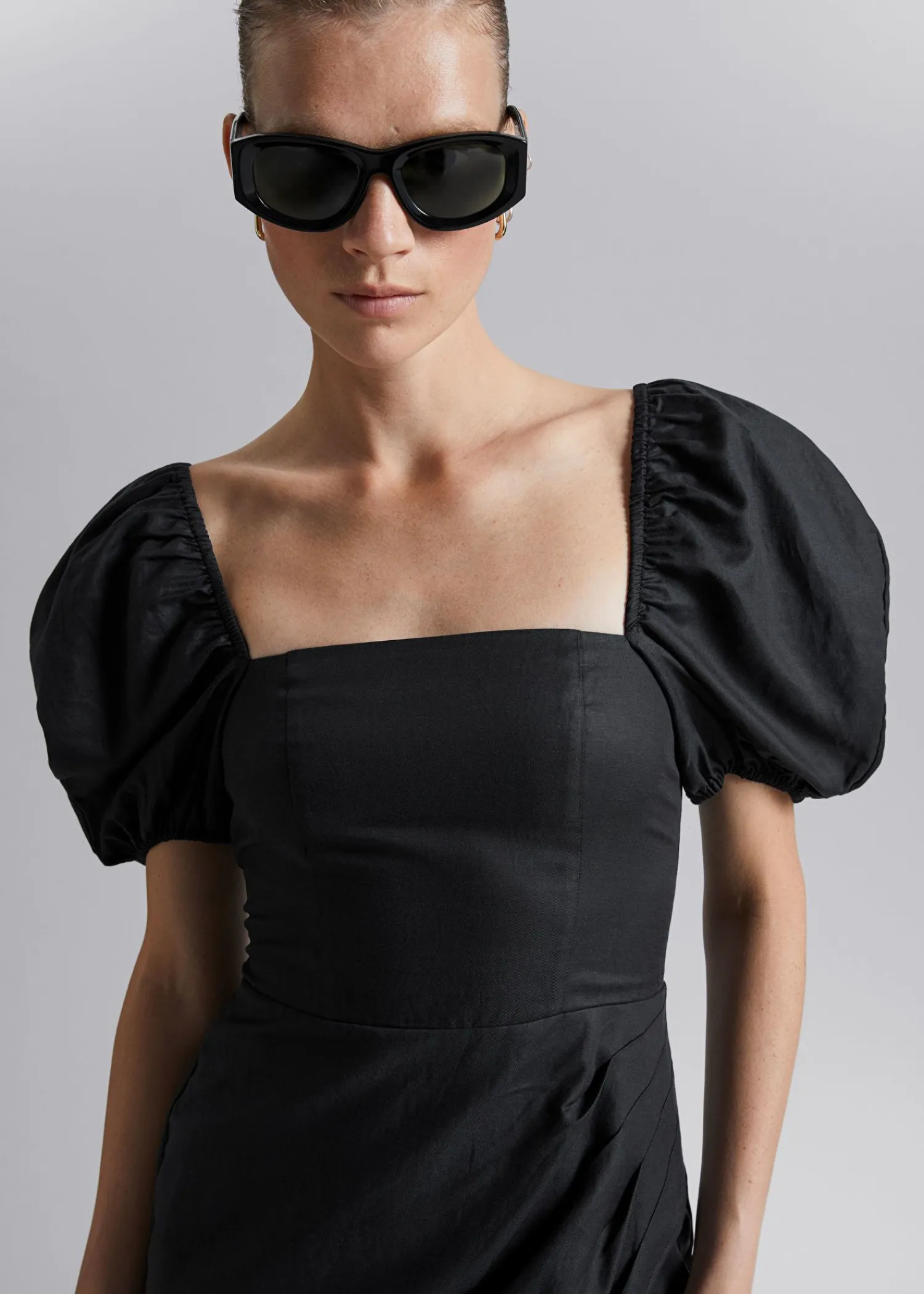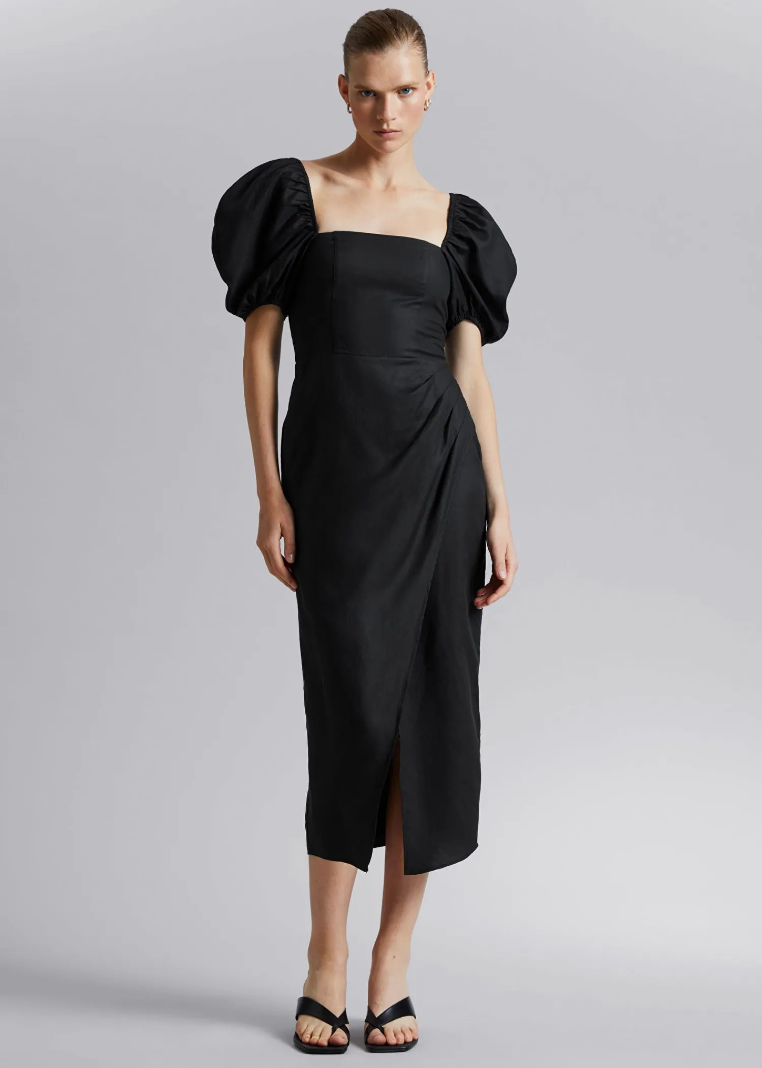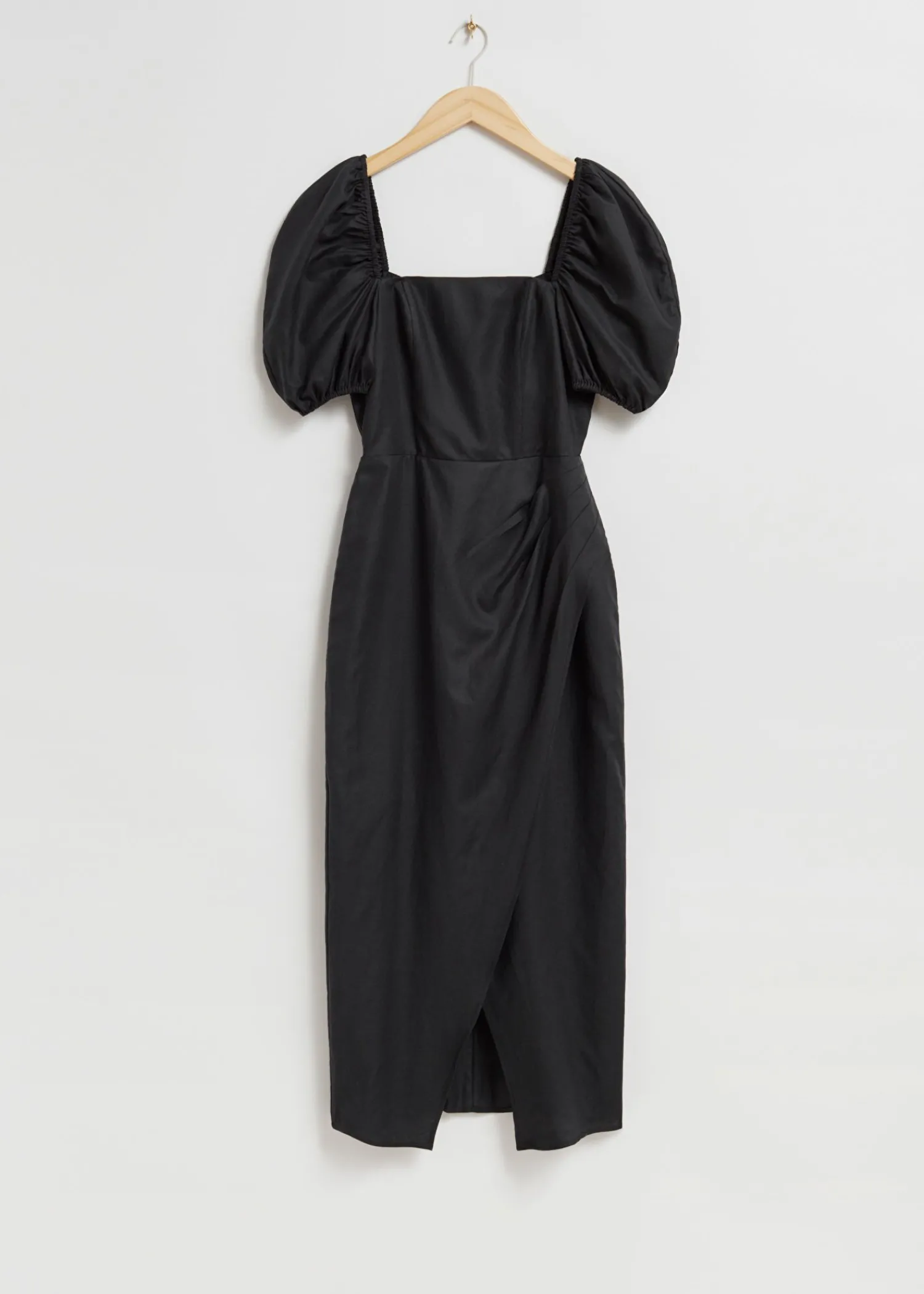 Figursyet Kjole Med Pufærmer Lavet Af En Vævet Blanding Af Materialer. Med En Asymmetrisk Skørt Med Fast Overlægsfoldning, En Overdel Med Smocket Ryg Og Prinsessepustede Ærmer. Skåret Med Firkantet Halsudskæring I Midi-Længde Pasform. – Monteret – Foret Overdel – Lynlåslukning Midt Bagpå Længde På Kjolen: 108 Cm / 42,5″ (Eu 36 / Uk 8 / Us 4)