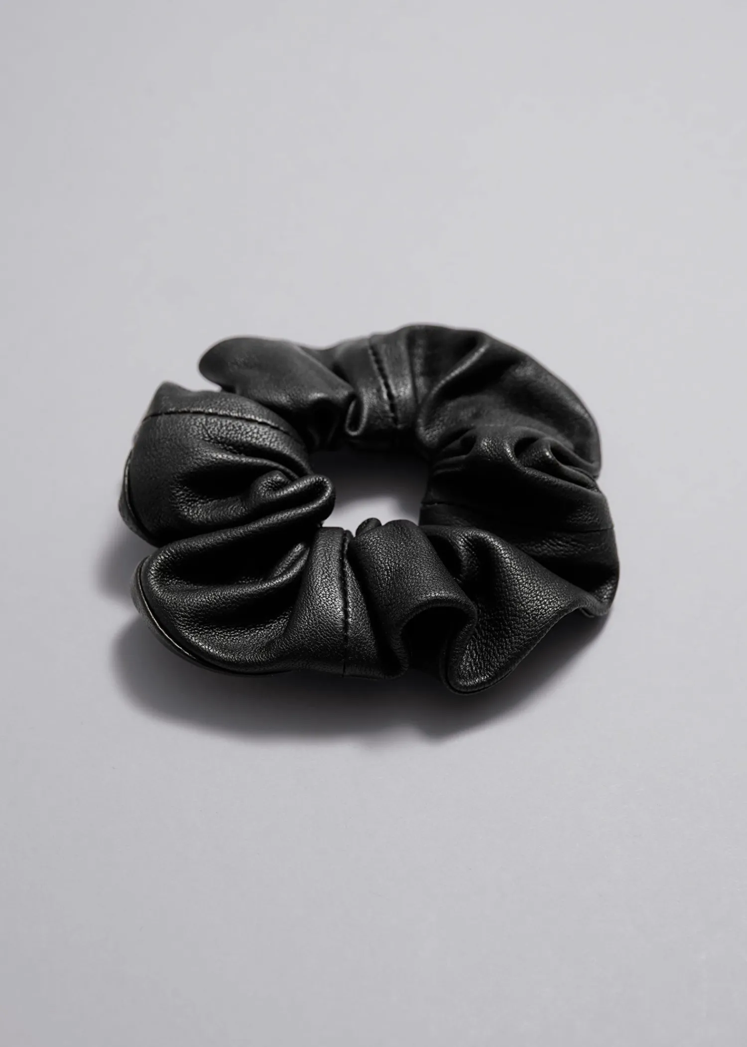 Klassisk Hårscrunchie I En Rynket Blød Læderfinish, Med En Elastisk Inderside.