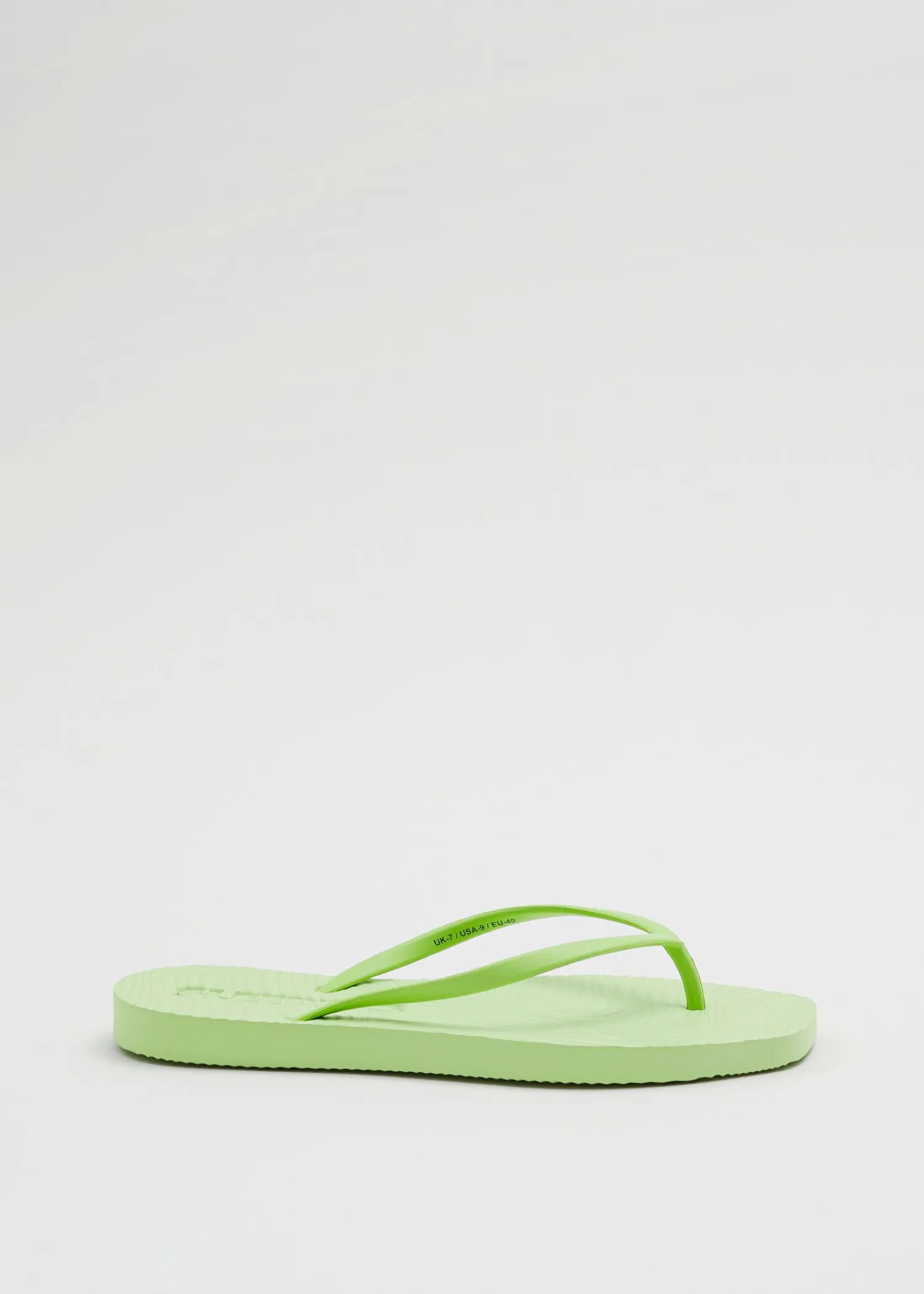 Flip Flops Fra Sleepers. Med En Firkantet Form Med En Let Konstrueret Sål Og En Tynd Rem I Førsteklasses Naturgummi.