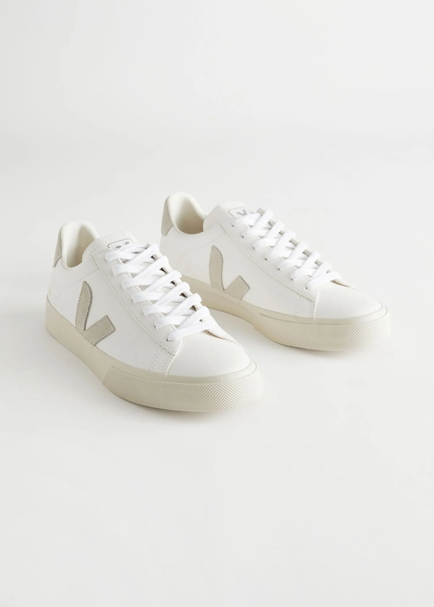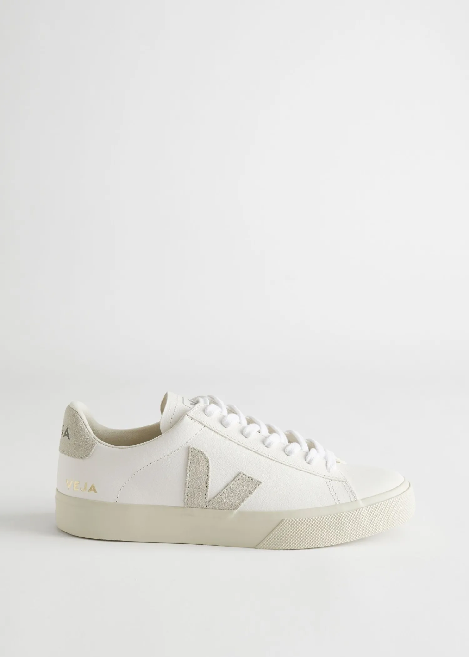 Veja ‘Campo’ Sneakers I Kromfri Garvet Læder. Med Kontrasterende Farveblokerede Accenter, En Gummisål Og Klassisk ‘V’-Branding På Siden. Snøre-Guld ‘Veja’-Logo Gummisål, Der Måler 3,5 Cm / 1,5″