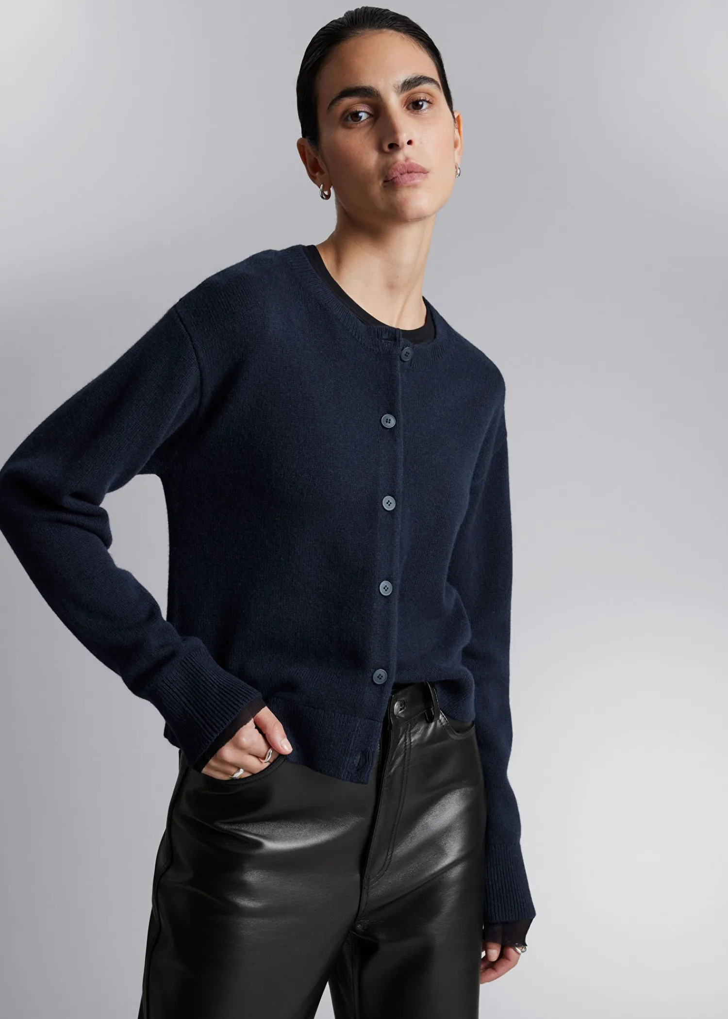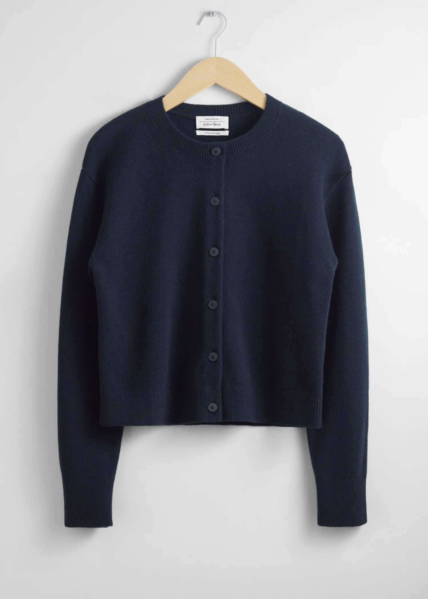 Boxy Cardigan I Merinould Afsluttet Med Rib I Halsudskæring, Manchetter Og Kant. Rund Halsudskæring Seks Knaplukninger Certificeret I Henhold Til Responsible Wool Standard (Cu893290) Længde På Cardigan: 53 Cm / 20,8″ (Størrelse S)