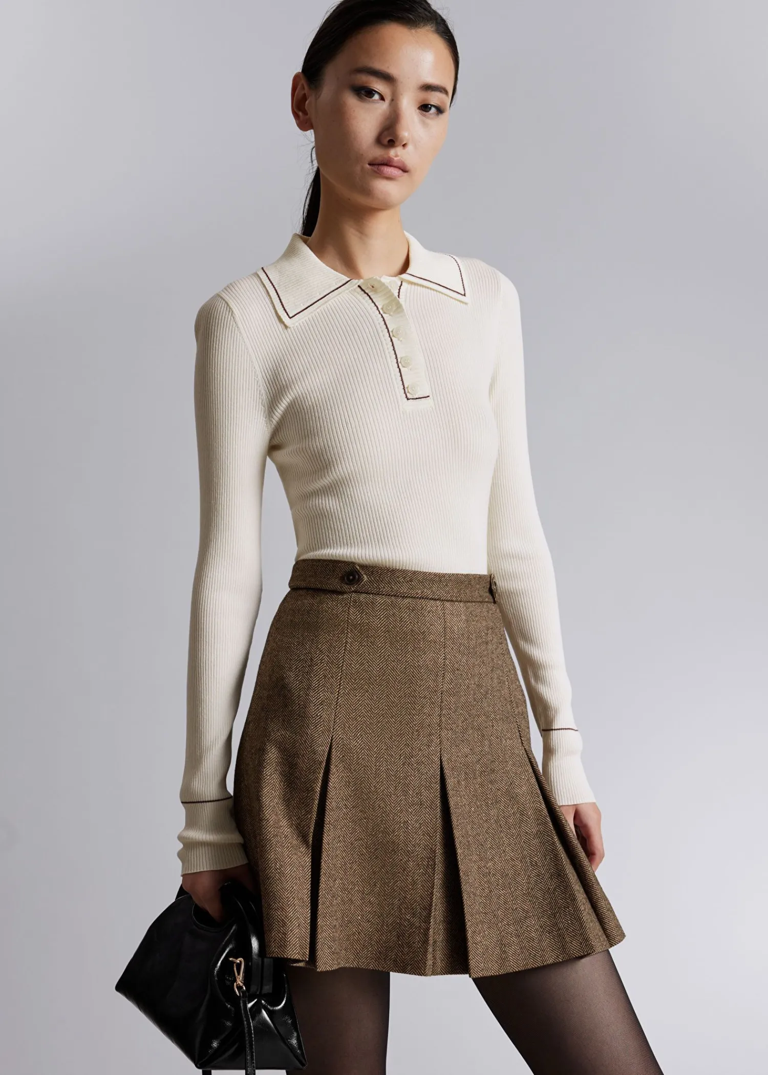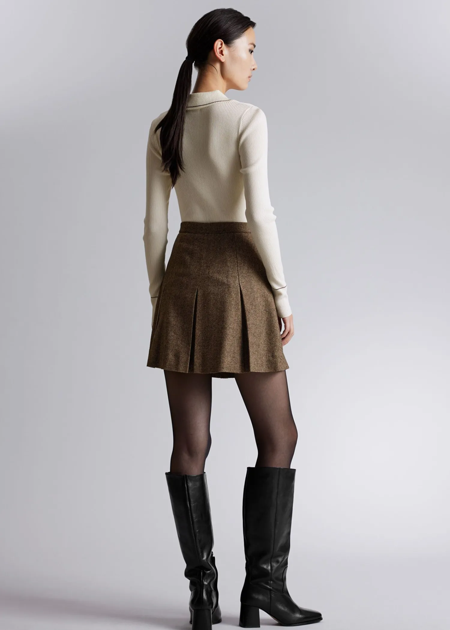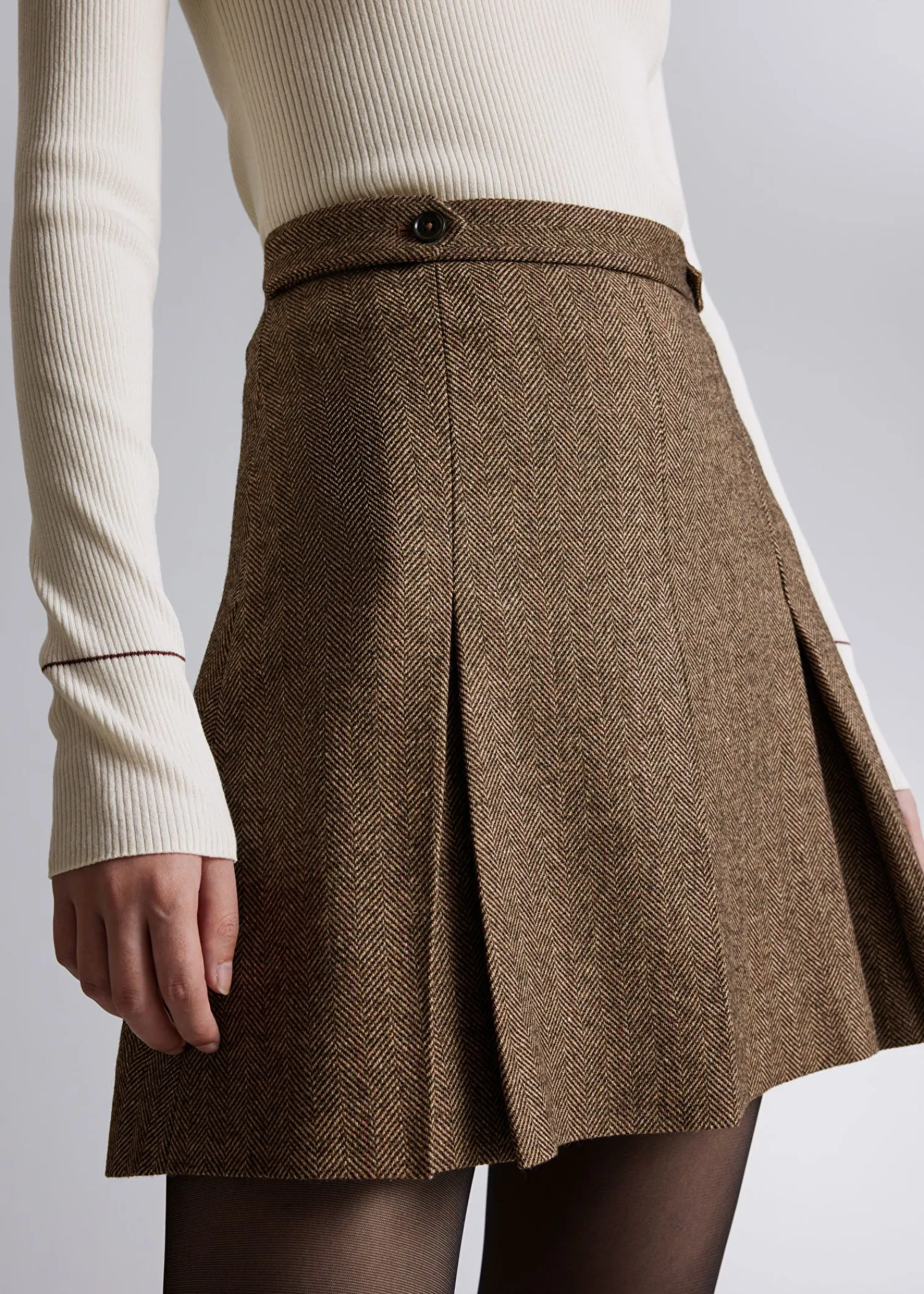 Plisseret A-Line Mini-Nederdel I Sildebensfinish. Afsluttet Med Knappede Faner I Taljen. Fuldforet Lynlås I Siden Længde På Nederdel: 41,5 Cm / 16,3″ (Eu 36 / Uk 8 / Us 4)