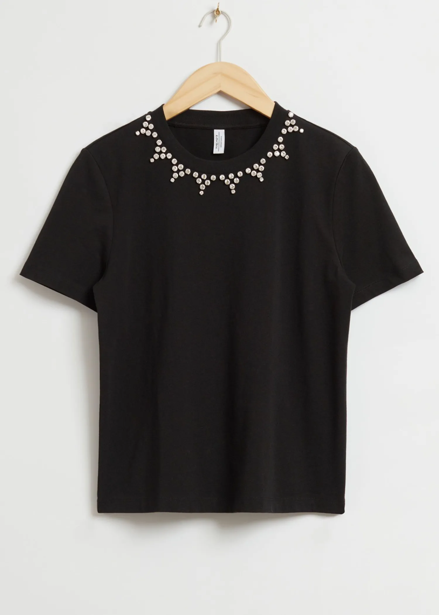 Afslappet T-Shirt Med En Rhinstensudsmykket Hals Og En Rund Ribudskæring. Afsluttet Med Dobbeltnålssyning. Længde På T-Shirt: 58 Cm / 22,8″ (Eu 36 / Uk 8 / Us 4)