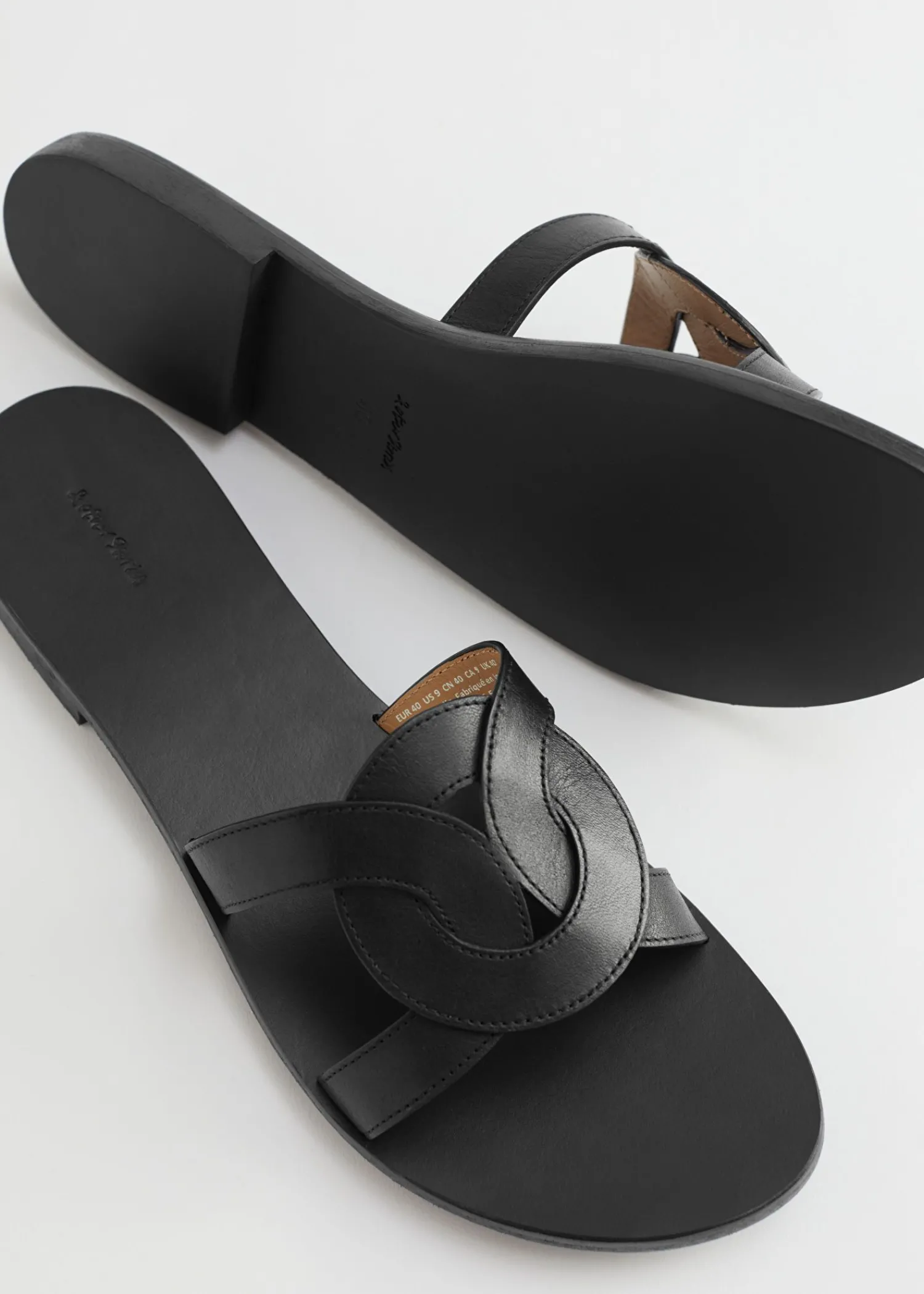 Afrundede Slip-On-Sandaler I Læder Med En Vævet Finish Og En Gummisål.