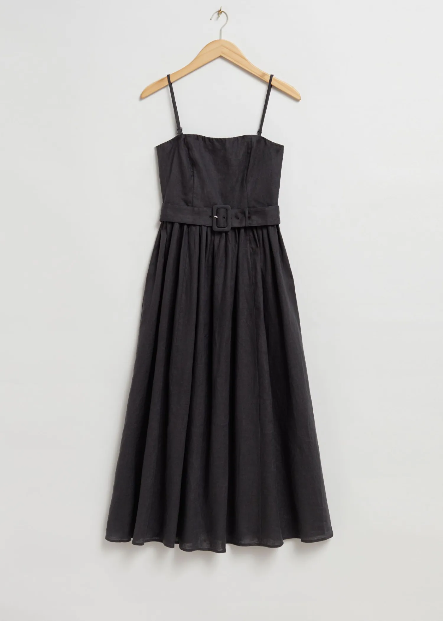 Voluminøs Midikjole Med Bælte Lavet Af Hør. Designet Med En Firkantet Halsudskæring, Tynde Aftagelige Stropper Og En Tætsiddende Udbenet Overdel. Taljen Er Fremhævet Med Et Firkantet Bælte Med Spænde Og En Lang Voluminøs, Flydende Nederdel. Bagsiden Afslører Et Smock-Panel Med En Skjult Lynlås I Midten Og Krog-Og-Øje Lukning. Kjolens Længde: 109 Cm / 43″ (Eu 36 / Uk 8 / Us 4) Luksuriøst Og Tilbagelænet Opsummerer Vores Looks Fra Los Angeles.