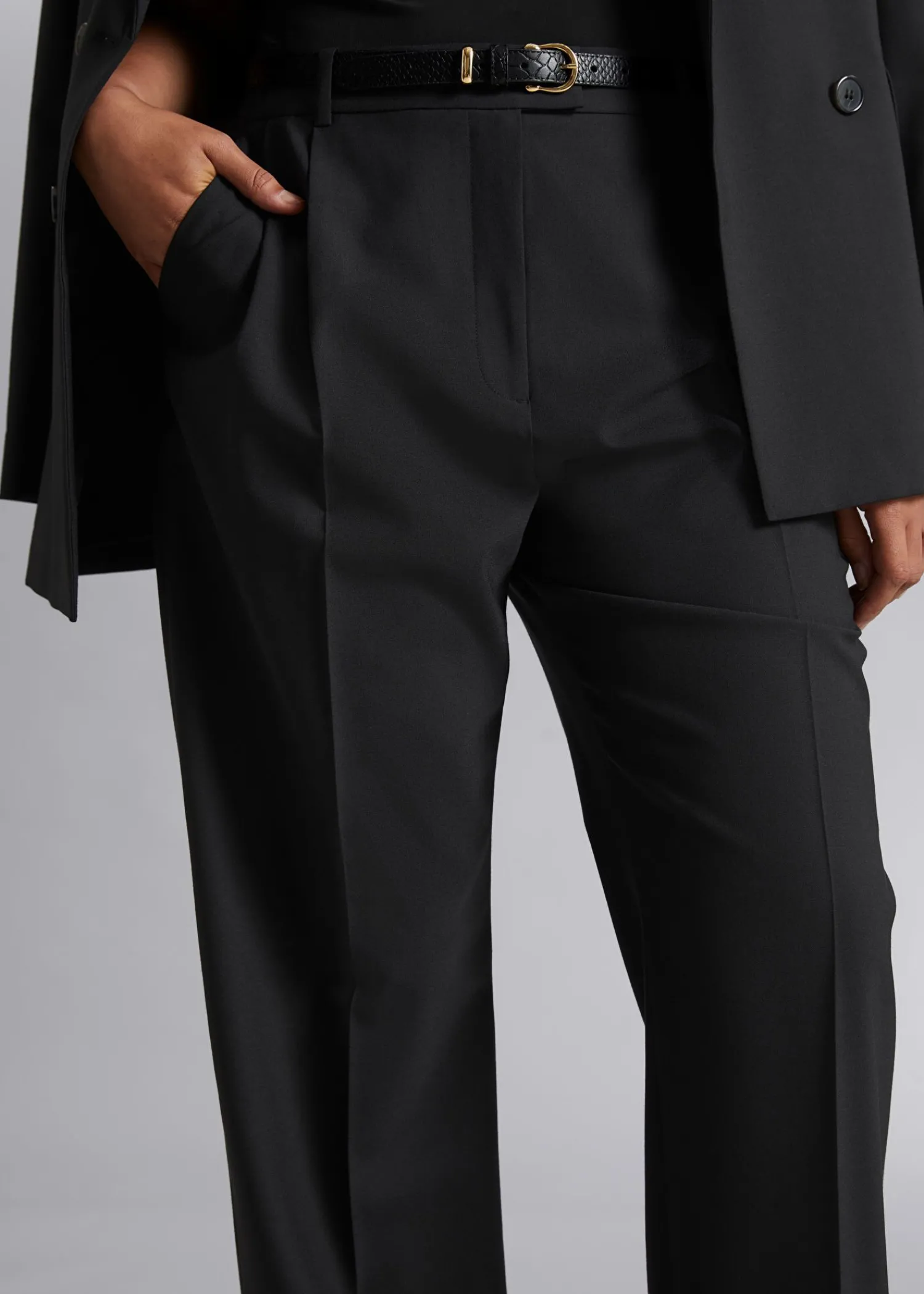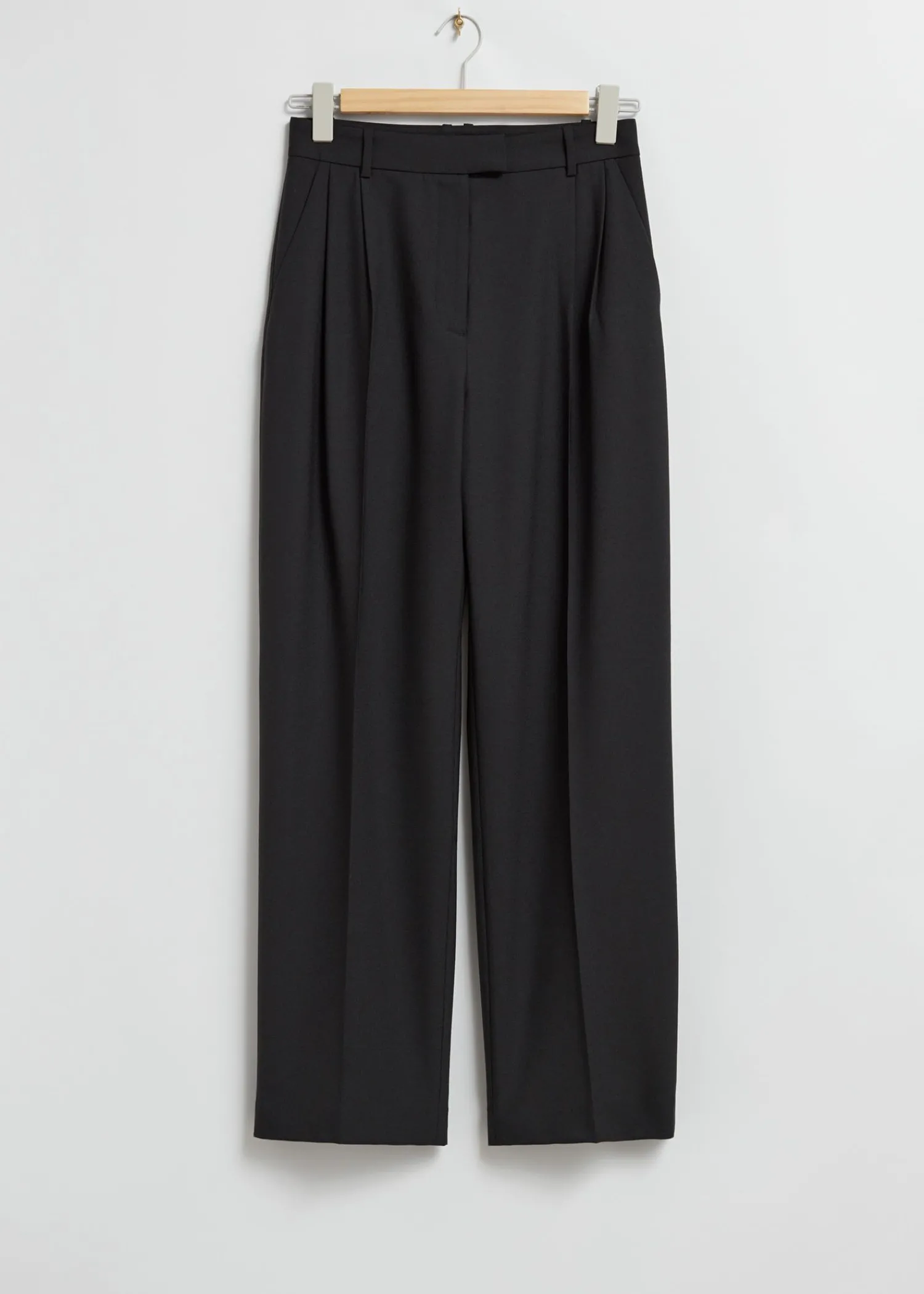 Afslappede Skræddersyede Bukser Med Høj Talje, Lige Ben Og Trykfolder. Duo Stiklommer Duo Paspolerede Lommer Bagpå Bæltestropper Certificeret I Henhold Til Responsible Wool Standard (Cu888809) Indersømslængde: 78 Cm / 30,7″ ((Eu 36 / Uk 8 / Us 4)