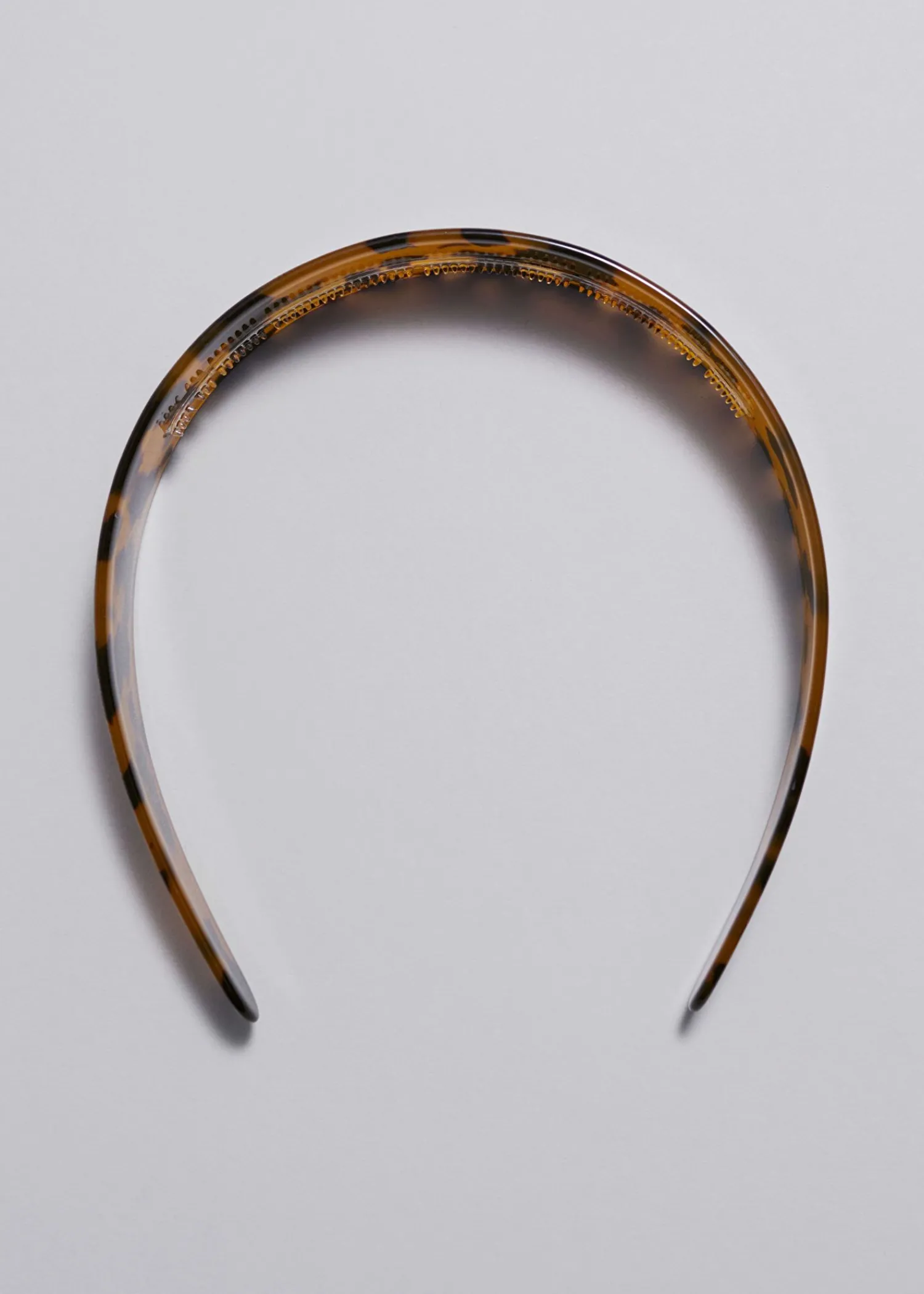 En Klassisk, Men Moderne Æstetik Kendetegner Dette Brede Harpiks Pandebånd. Afsluttet Med En Tandrække For Greb.
