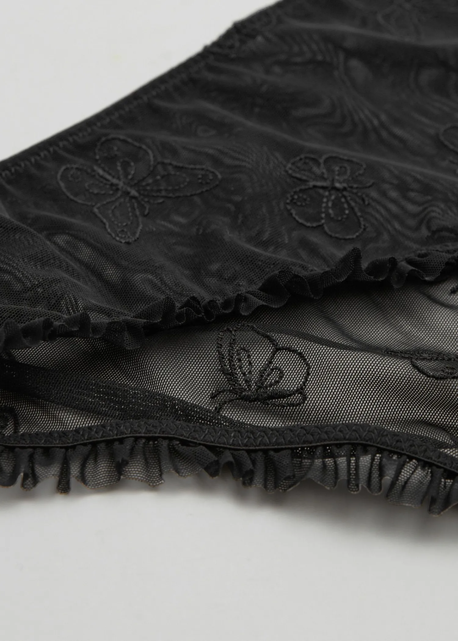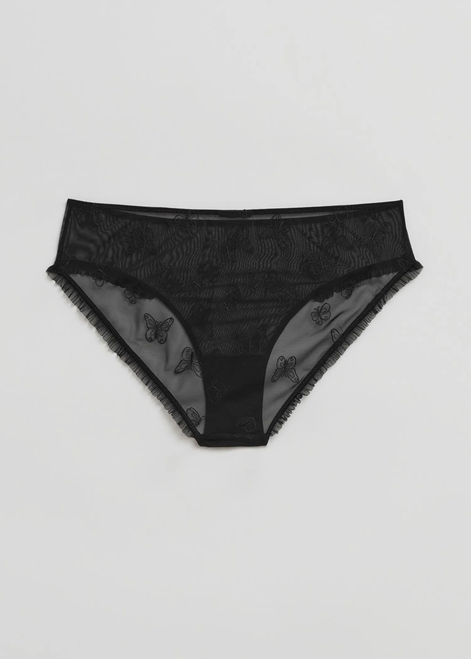 Gennemsigtige Trusser Med Broderede Dekorative Sommerfugle. Accentueret Med Rå Kantfræsning.