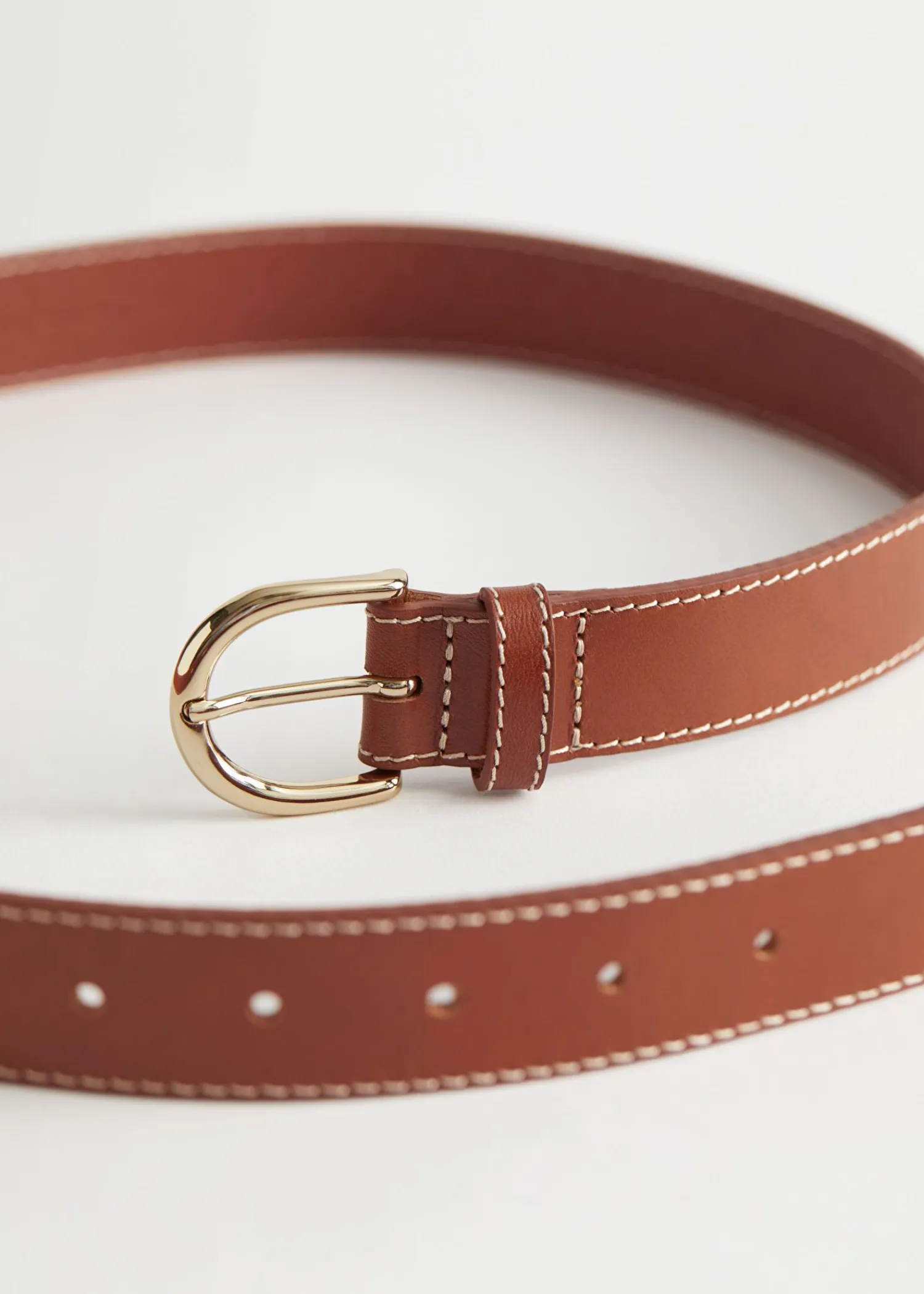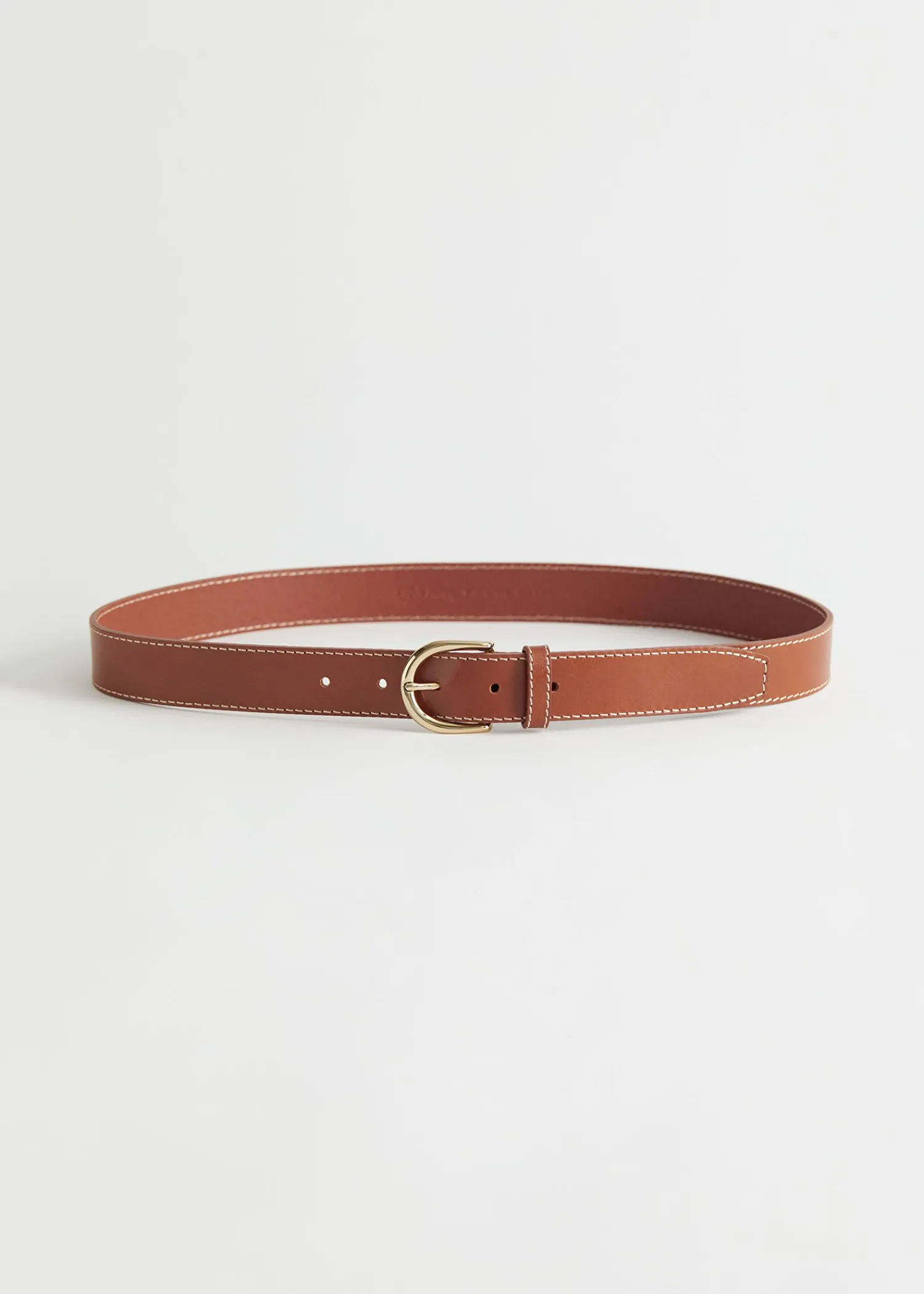 Læderbælte Med Kontrastsyninger Og Guldfarvet Spænde. Bredde På Bæltet: 3 Cm / 1,2″