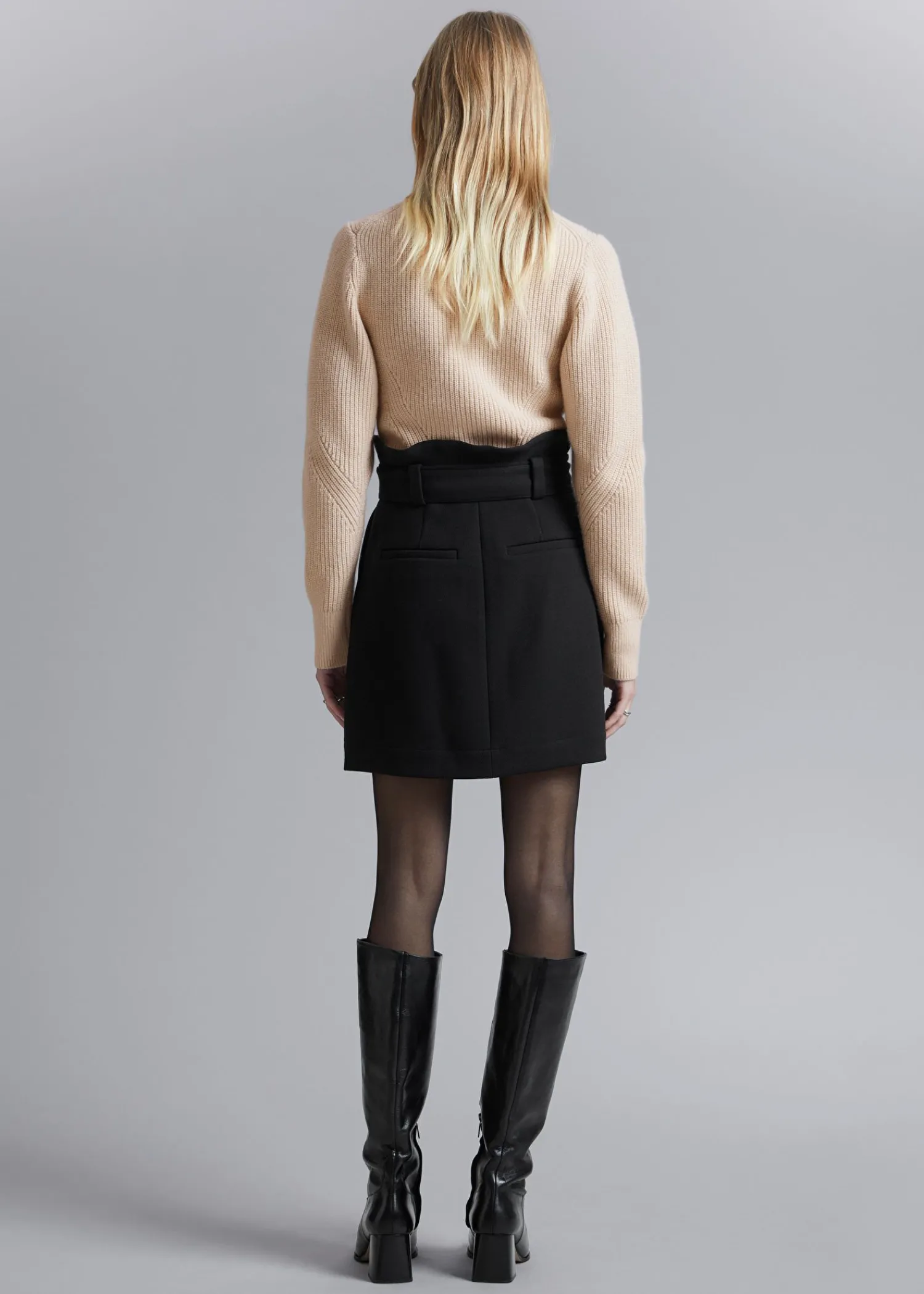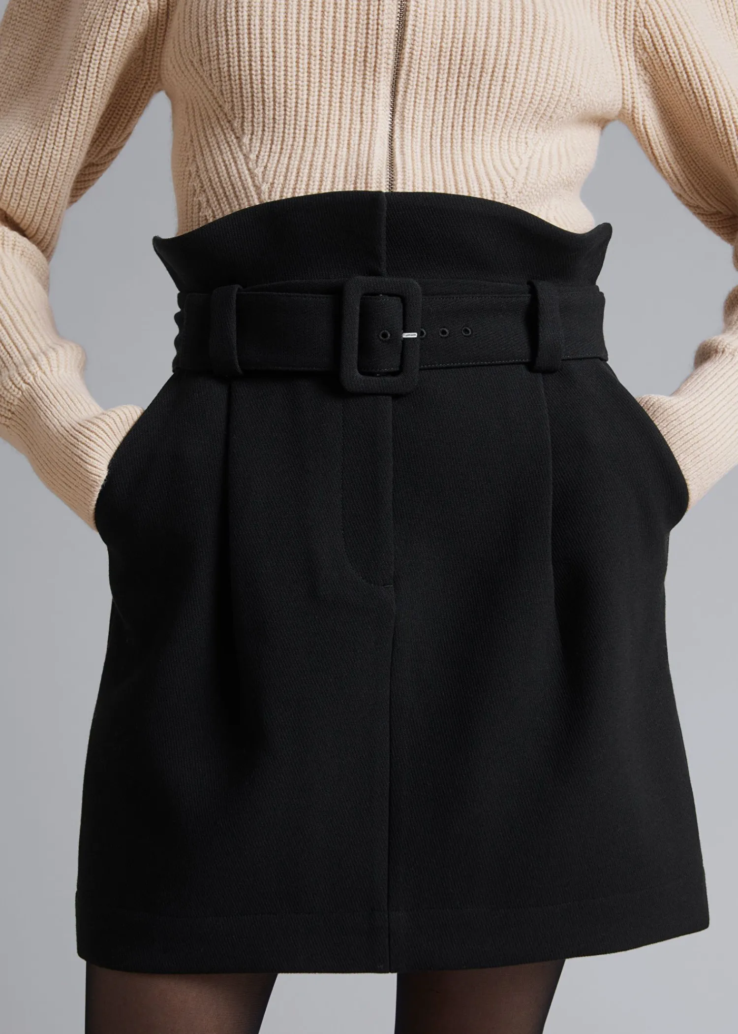 Mini-Nederdel Med En Paperbag-Talje Sikret Med Et Tonalt Spændebælte. Lynlåsgylp Med Krog- Og Stanglukning Bæltestropper Duo Stiklommer Duo Paspolerede Lommer Bagpå Længde På Nederdel: 42,5 Cm / 16,7″ (Eu 36 / Uk 8 / Us 4)
