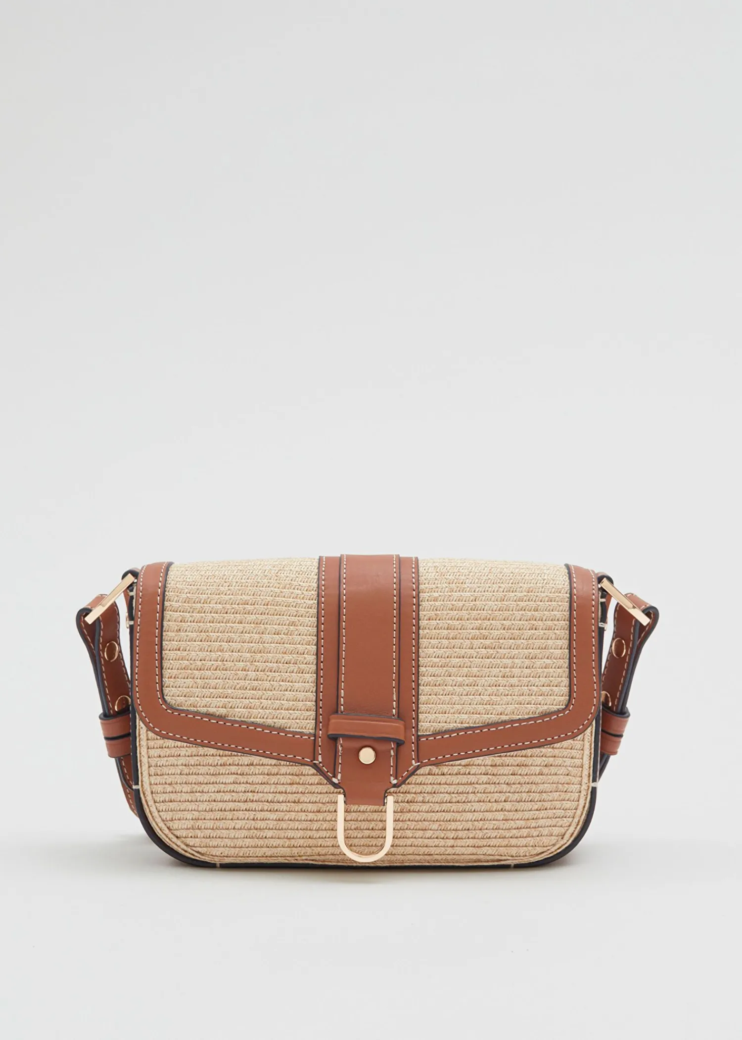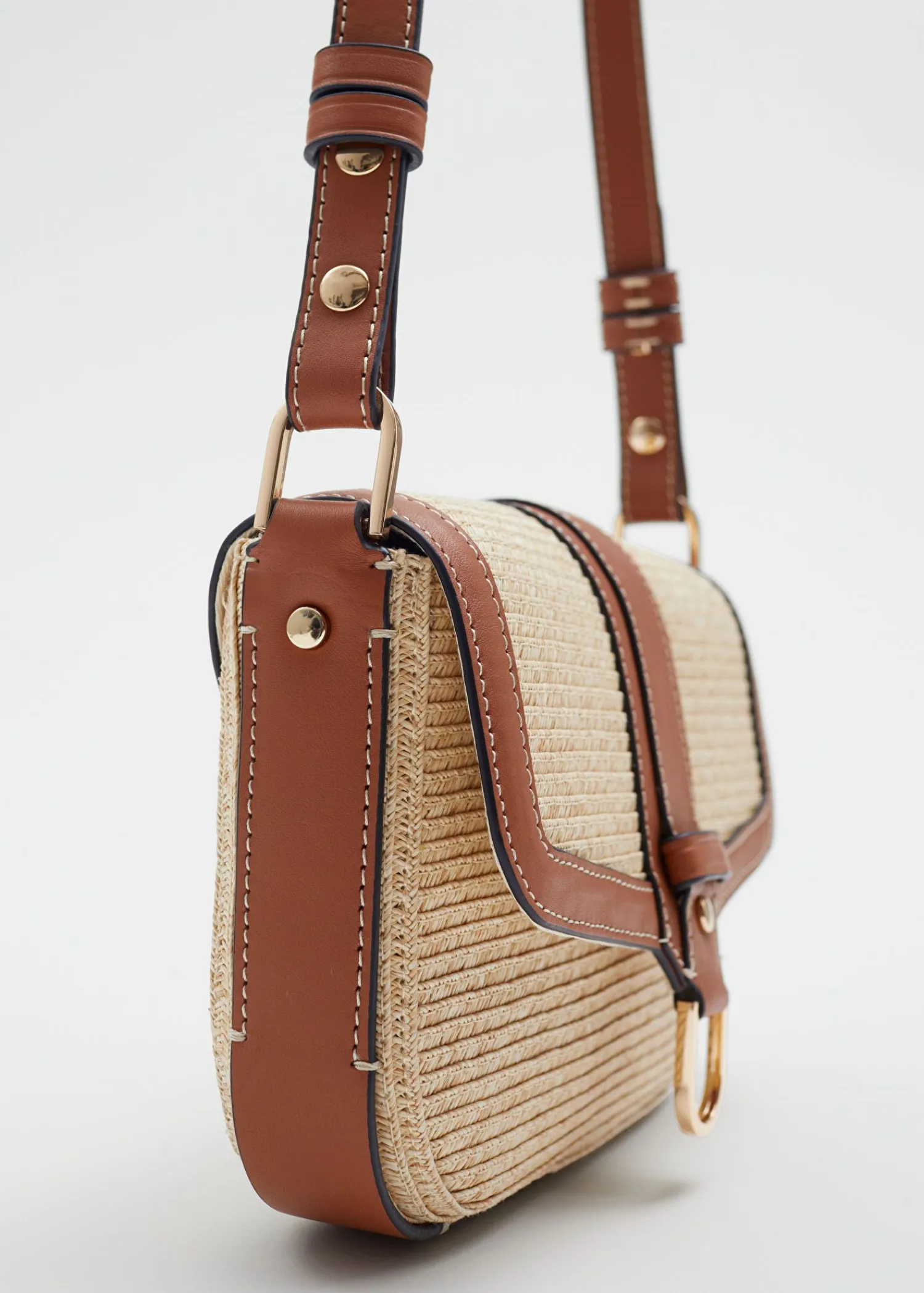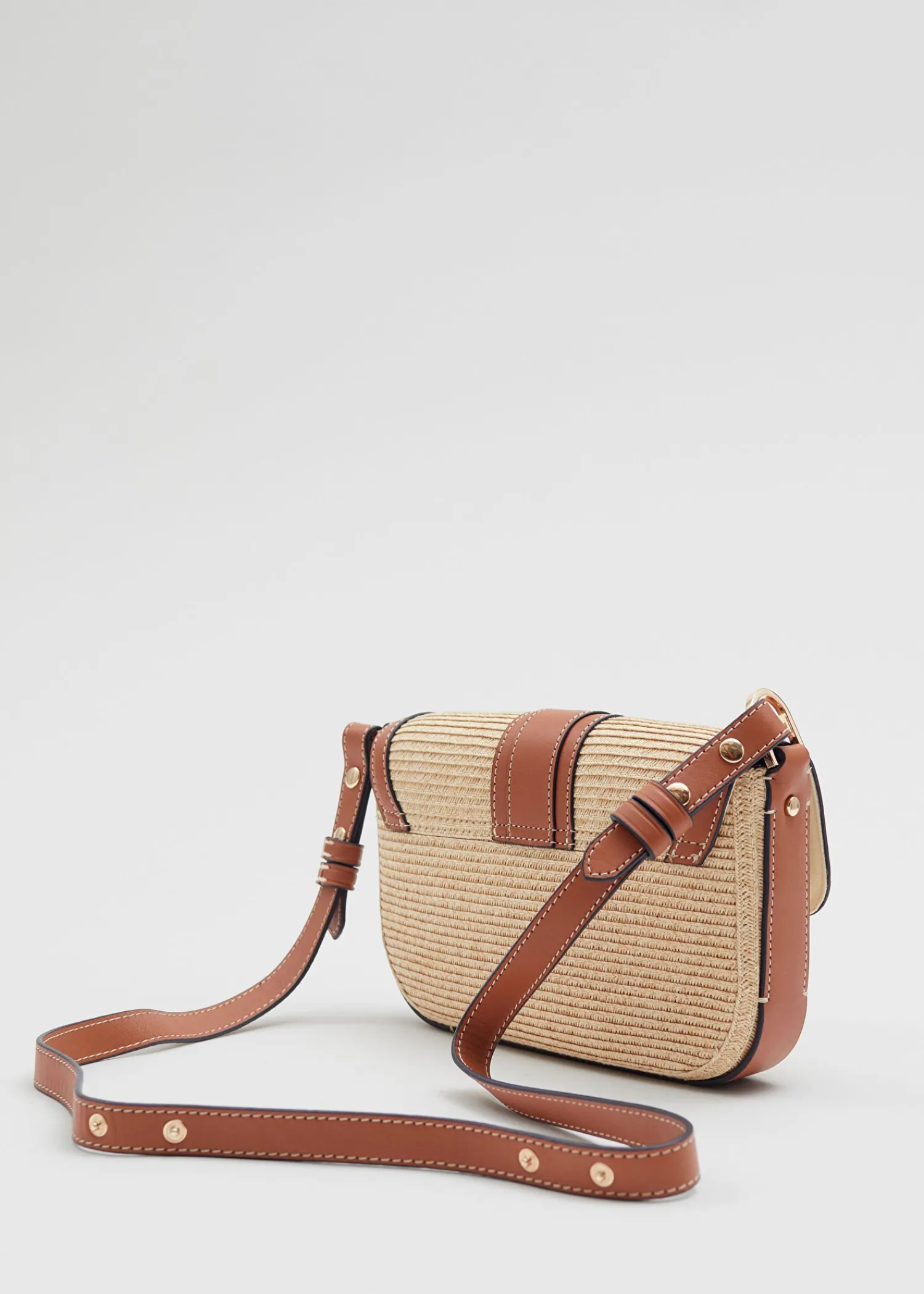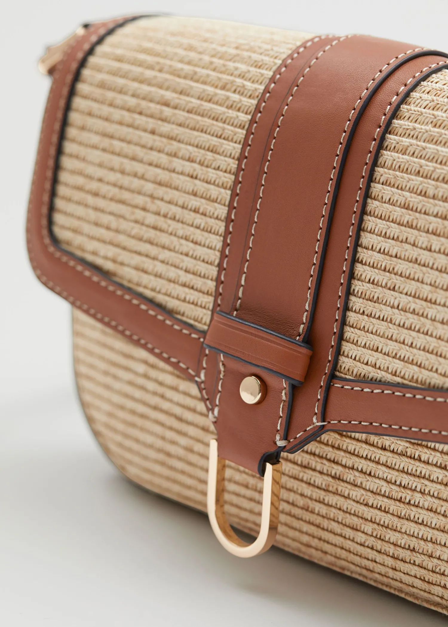 Crossbody-Taske Med Vævet Stråkropp Og Læderkanter. Stylet Med En Justerbar Skulderrem, Skjult Magnetisk Lukning, Guldtonet Hardware Og Kontrastsyninger. Foret Med Bomuld. Bredde: 23,5 Cm / 9,3 Højde: 15,5 Cm / 6,1 Dybde: 5 Cm / 2″ Skulderfald: 50 Cm / 19,7