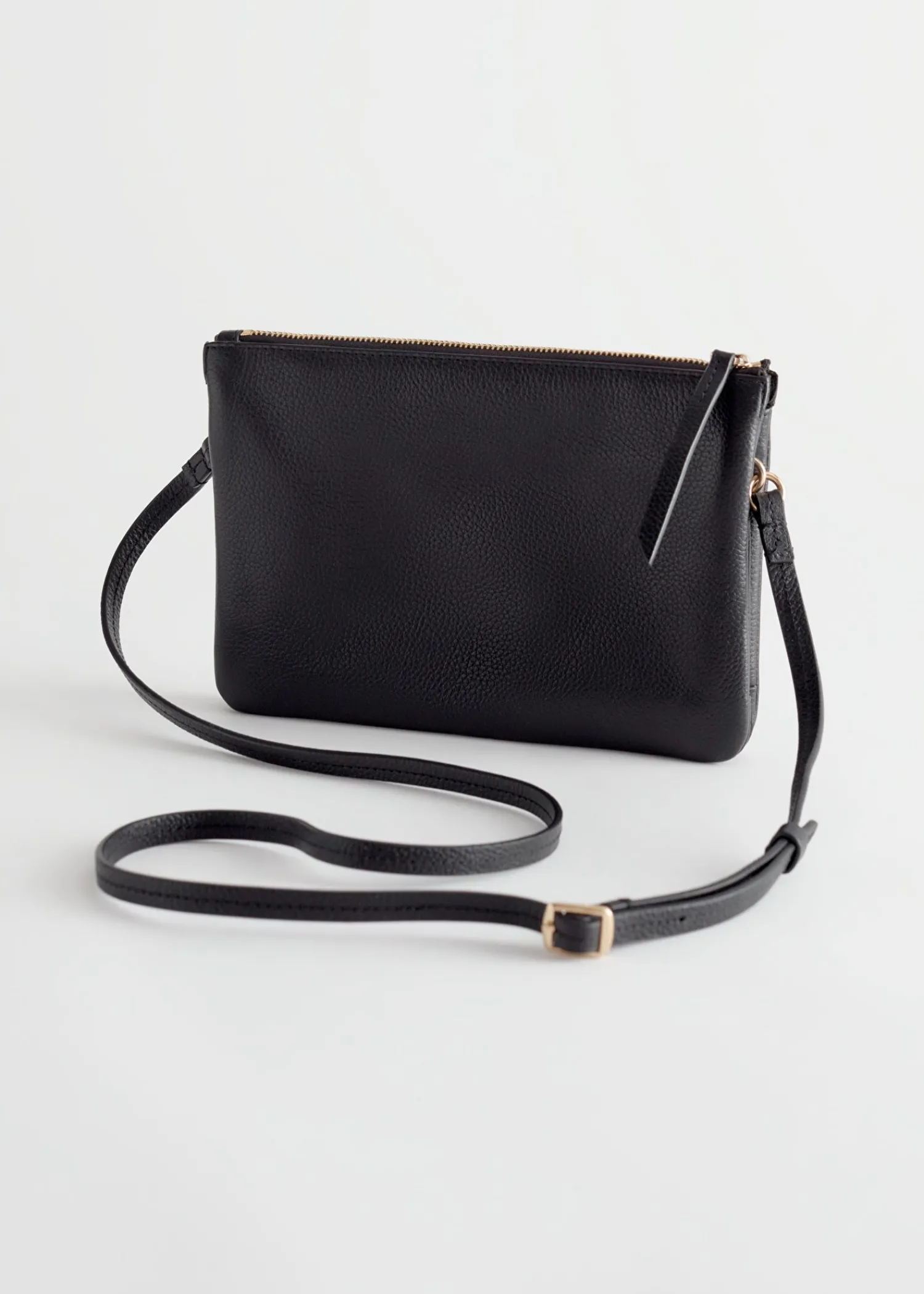 Lille Crossbody-Taske I Læder Med Duo Rum Og En Justerbar Skulderrem. Sikret Med Lynlås Med Lædertrækker. Mål På Tasken: 22 Cm X 15,5 Cm X 2 Cm 8,7″ X 6,1″ X 0,8″