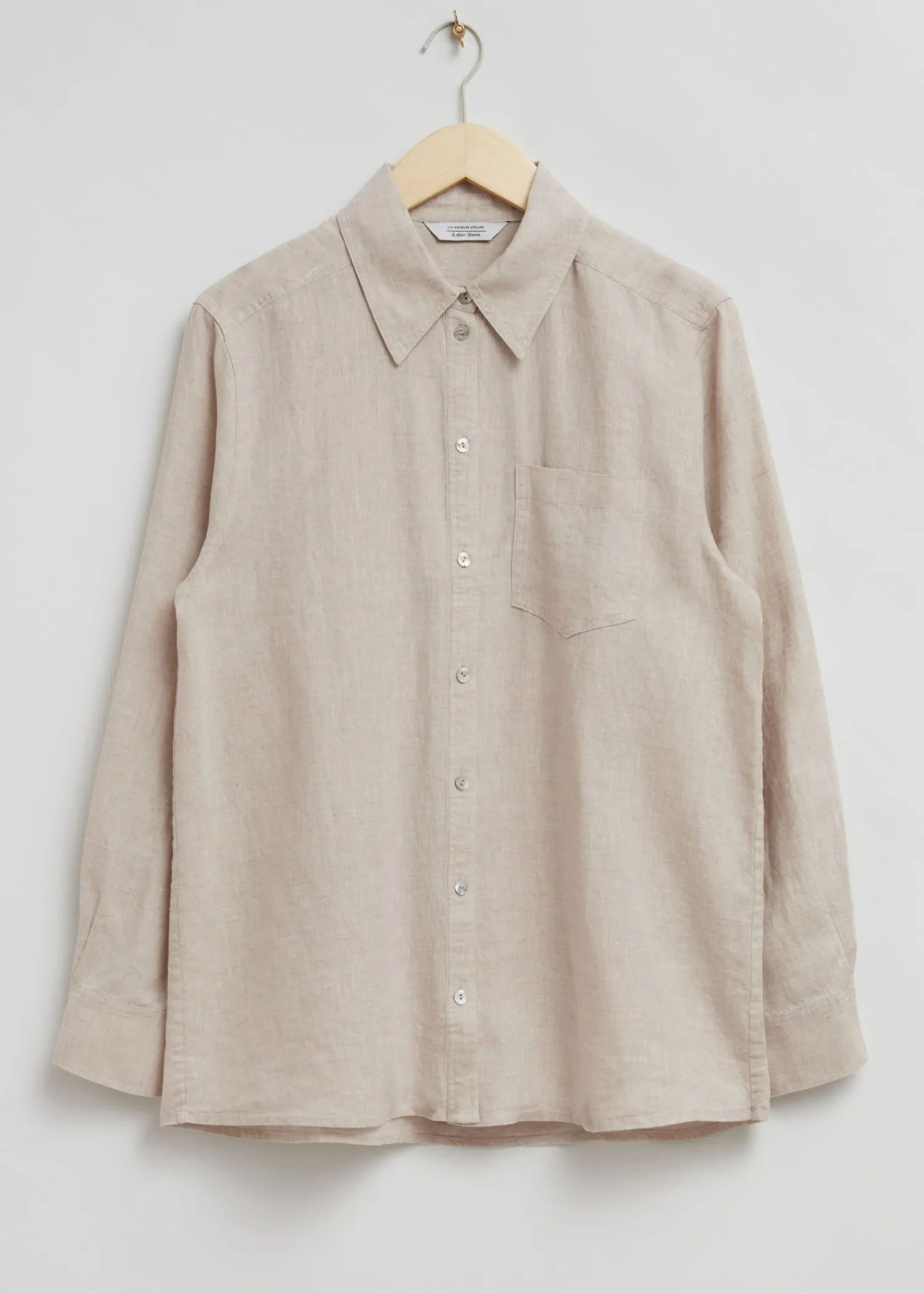 Oversized Hørskjorte Detaljeret Med En Enkelt Påsyet Lomme På Brystet. Lukning Med Syv Knapper. Manchetter Med Knapper Længde På Skjorte: 73,8 Cm / 29,1″ (Eu 36 / Uk 10 / Us 4)