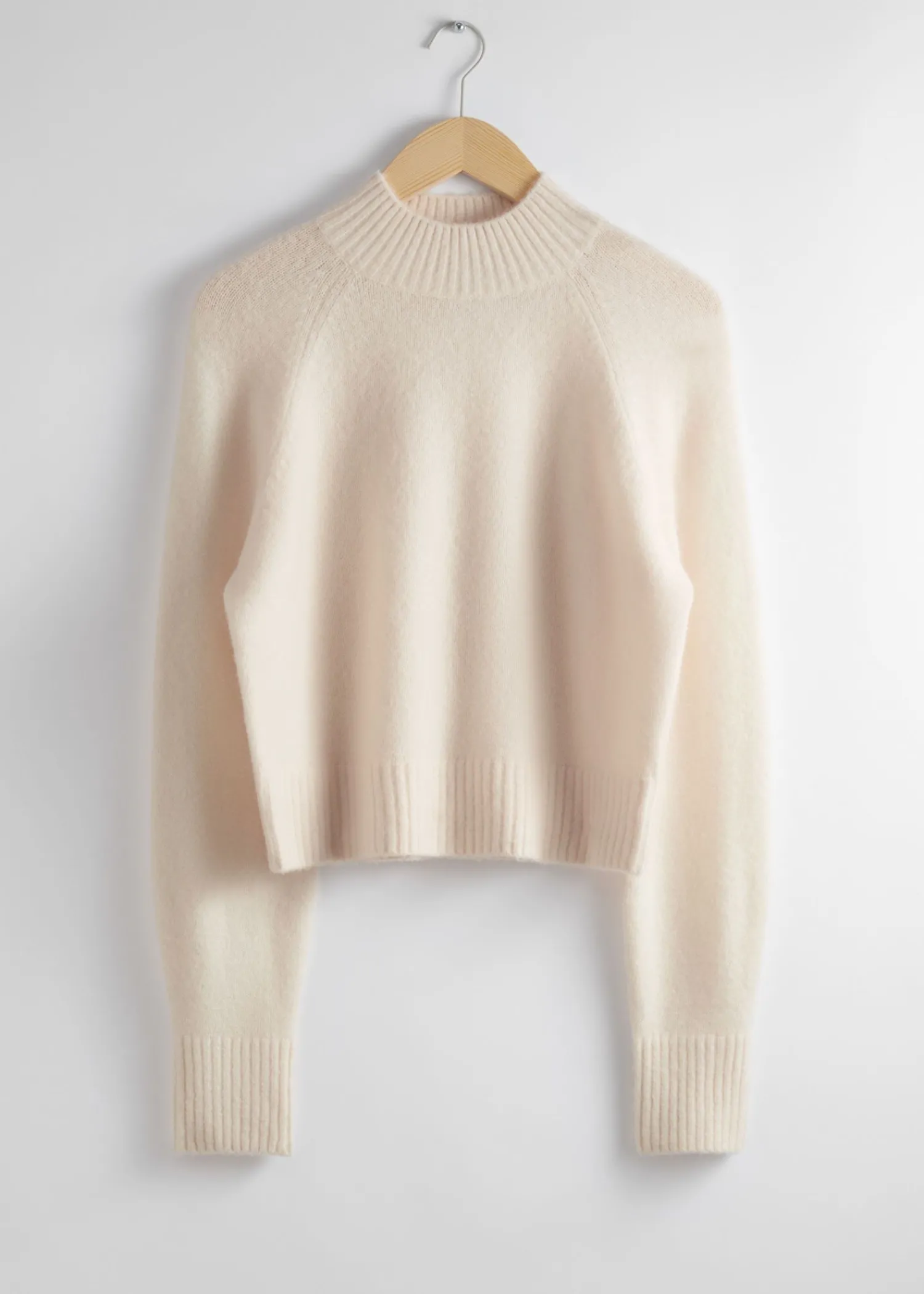 Mock-Hals Uldstrikket Trøje Med Raglanærmer. Ribbet Hals, Manchetter Og Kant Certificeret I Henhold Til Responsible Wool Standard (Cu810300) Længde På Trøje: 51 Cm / 20,1″ (Størrelse S)