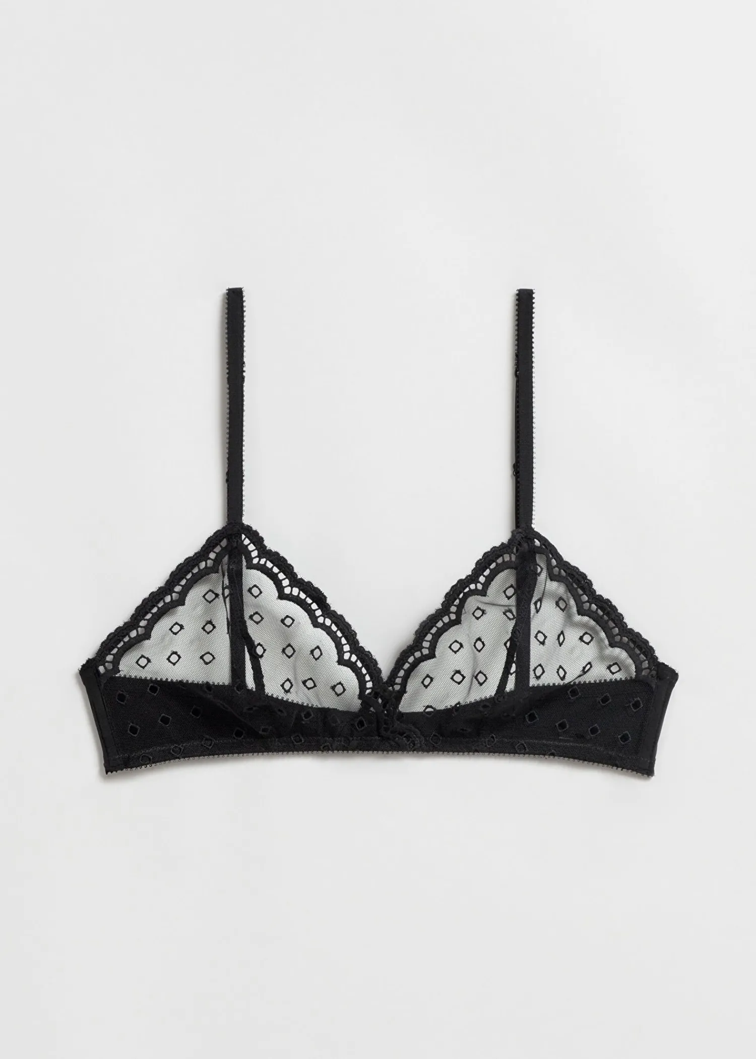 Trekant-Bh Skåret Af Blød, Fancy, Elastisk Blonde, Detaljeret Med Broderi Og Trimmet Med Scalloped Kanter. Afsluttet Med Justerbare Skulderstropper Og Kroglukning Bagpå.