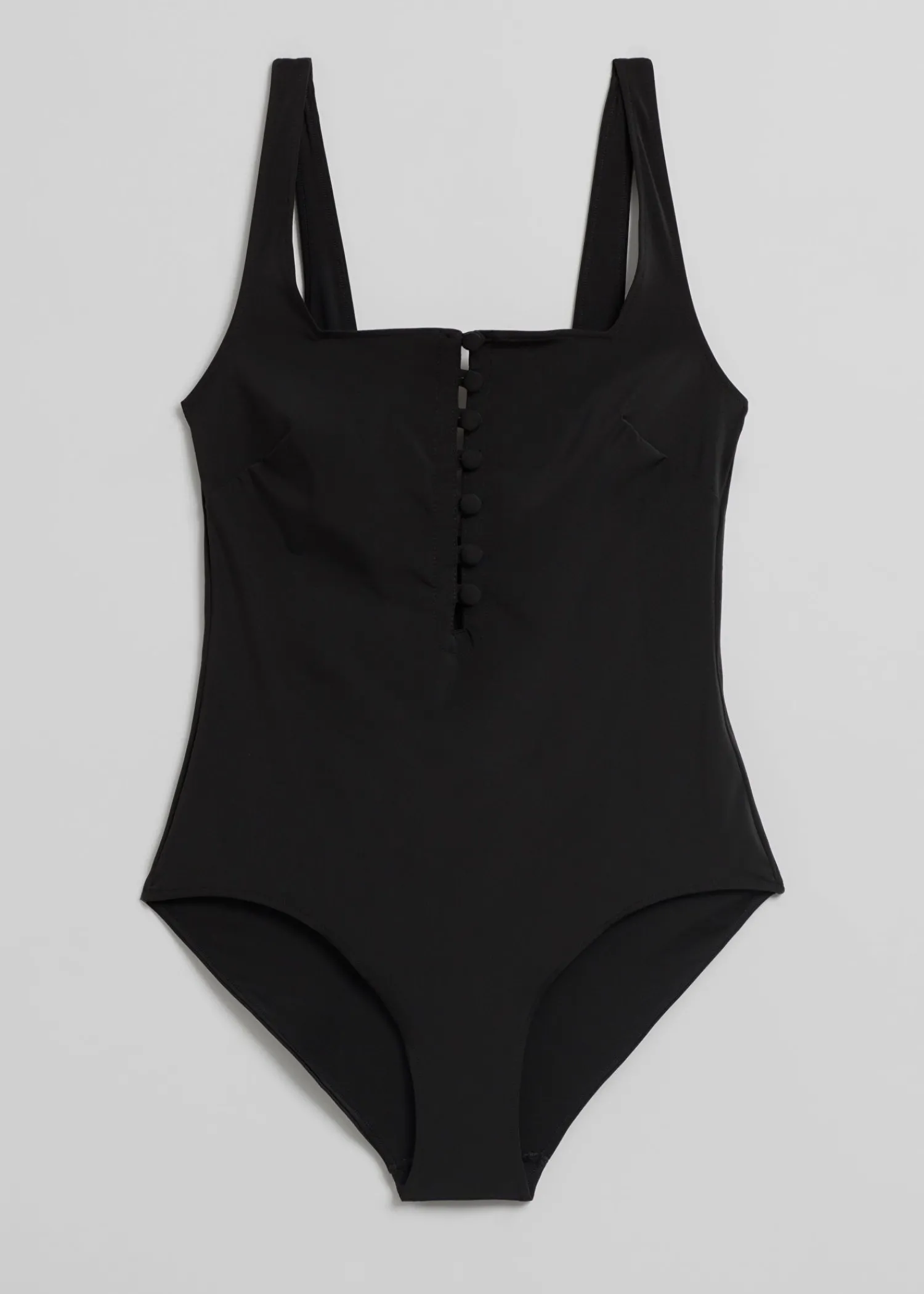 Badedragt Med Dekorative Knapper Foran, Firkantet Halsudskæring Og Scoop-Back. Længde På Forhøjning: 55,8 Cm / 22” (Størrelse 36)