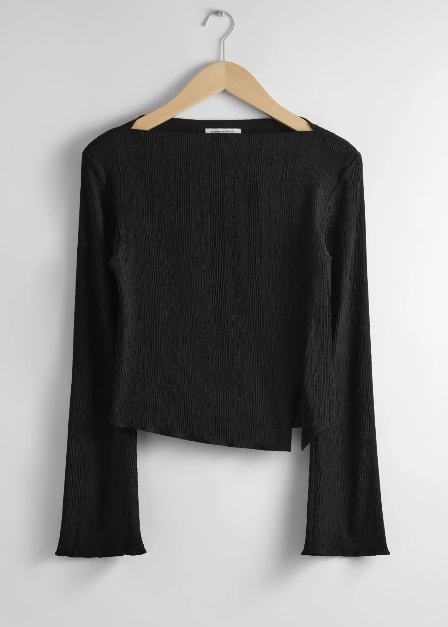 Figursyet Langærmet Top Med Et Cropped Asymmetrisk Snit, Flæsede Kanter Og En Ribbet Finish. Længde På Toppen: 51 Cm / 20″ (Eu 36 / Uk 08 / Us 4)