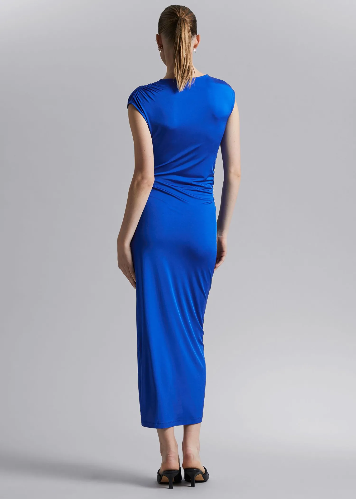 Flæsket Kjole Lavet Af Stretchjersey. Designet Med En Ærmeløs, Rund Halsudskæring Med En Diagonal Flæseindsats Fra Talje Til Ben, Der Skaber En Blød Ruching For En Figursyet Silhuet. – Slim Fit, Lang – Jersey Længde På Kjolen: 168 Cm / 66,1″ (Eu 36 / Uk 8 / Us 4) Stockholm Er Hjemsted For Vores Mest Minimalistiske Stilarter.