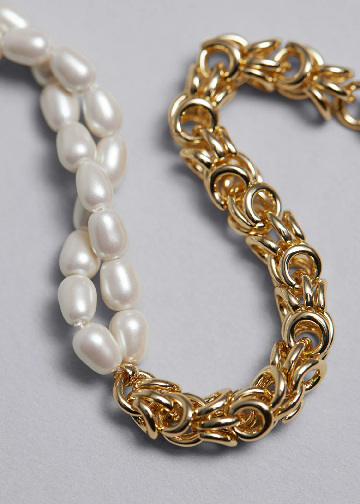 Armbånd Lavet Af Guldtonet Messing Og Delikat Spændt Halvvejs Med Organisk Formede Kunstperler. Sikres Med En Hummerklolås.