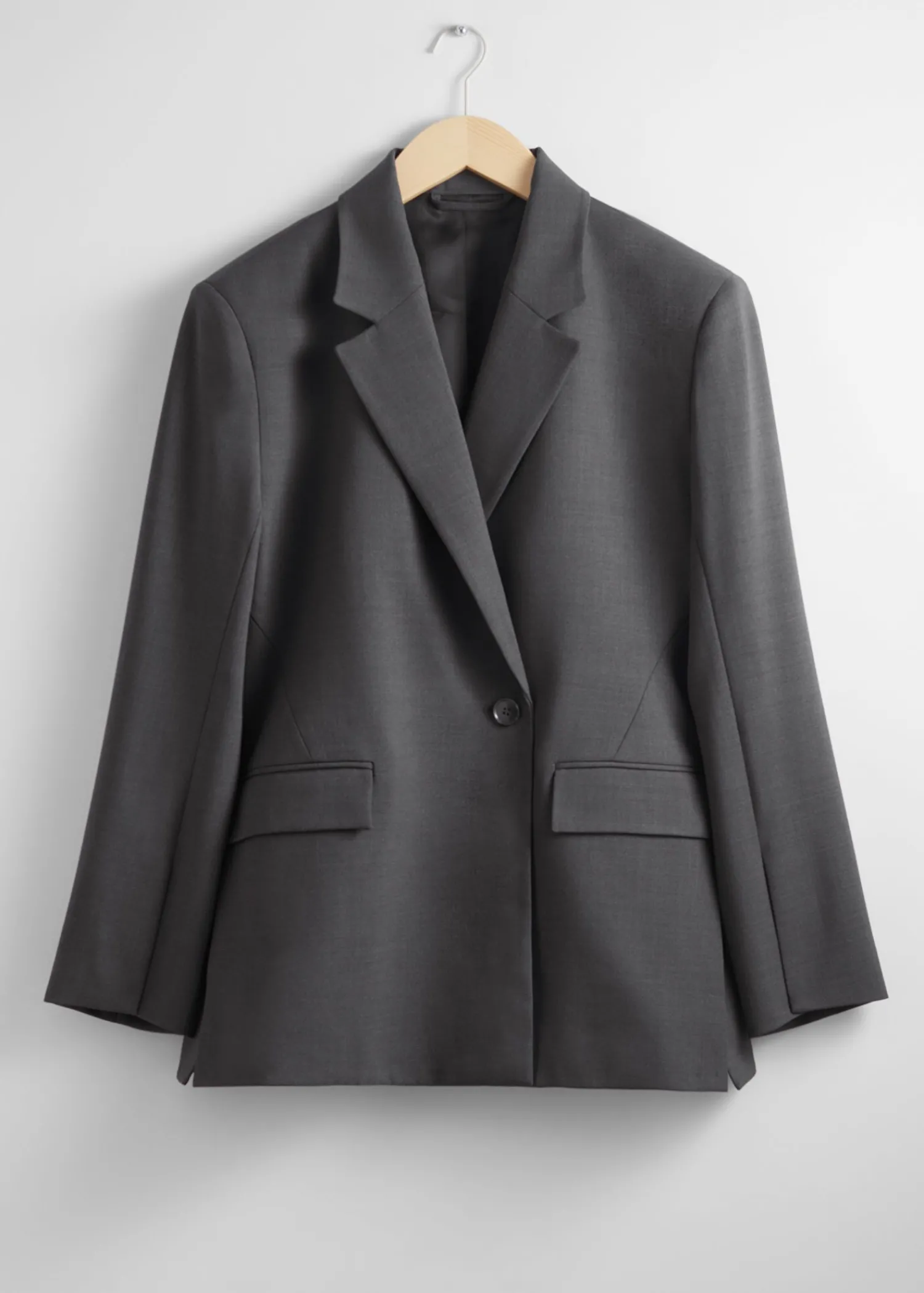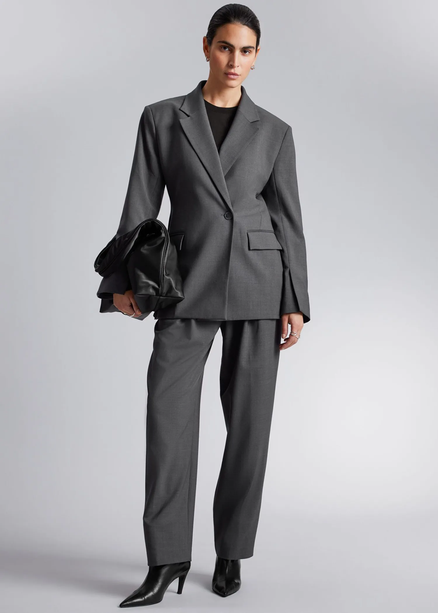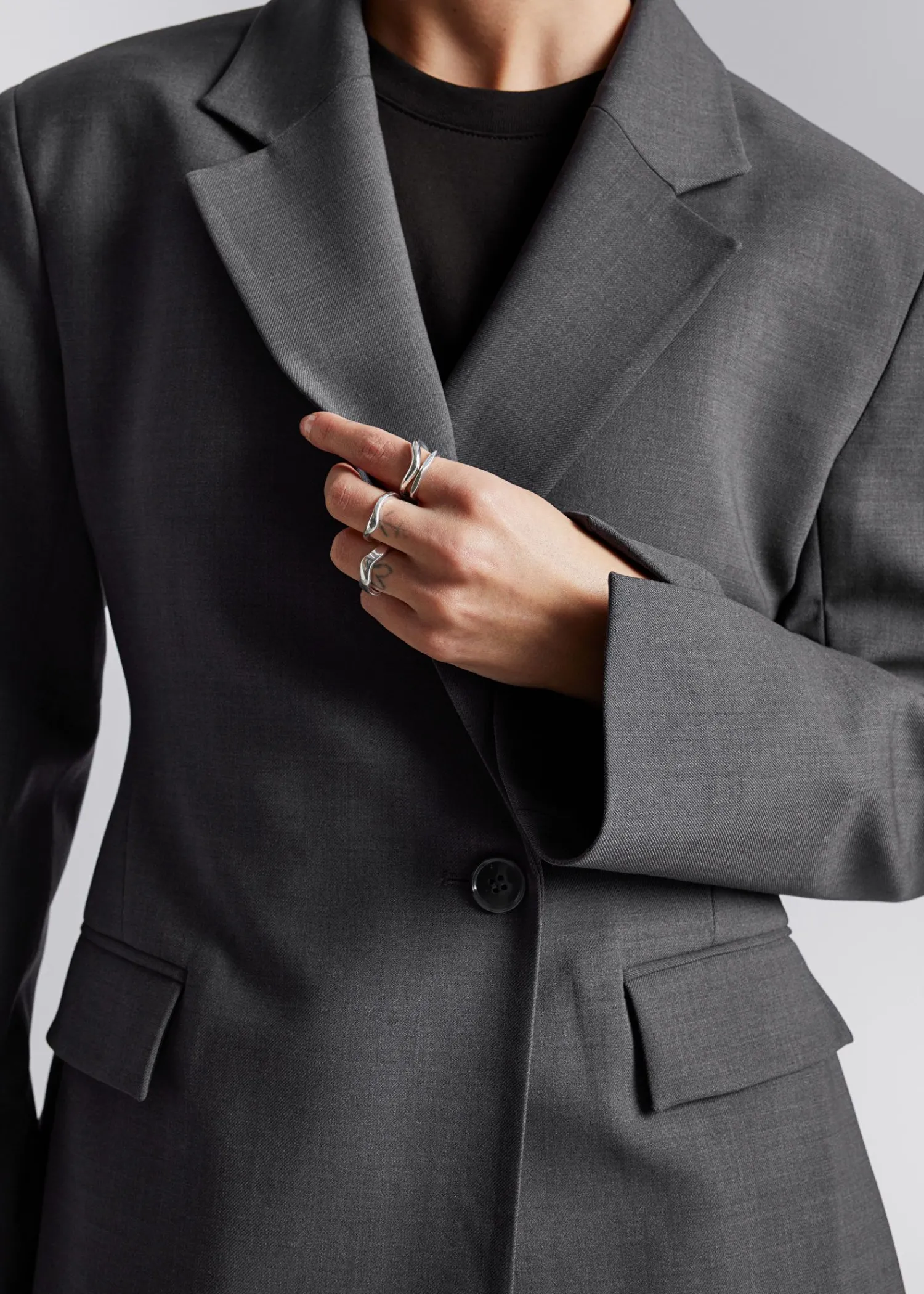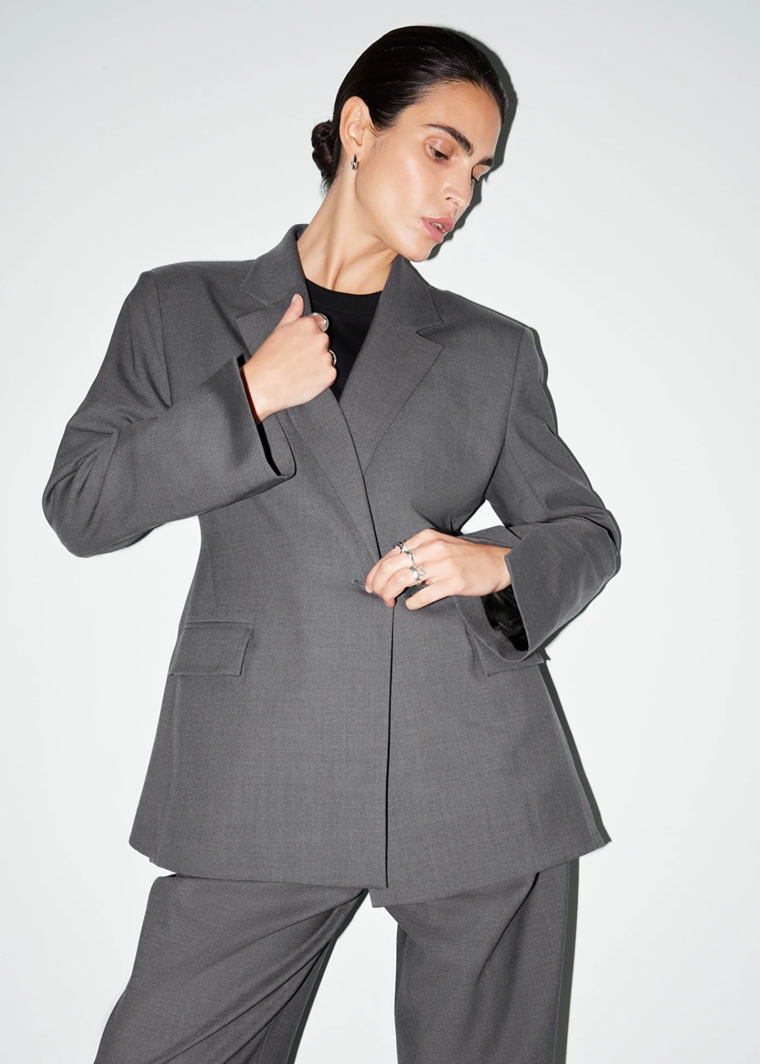 Skræddersyet Blazer Med Overdrevne, Polstrede Skuldre Og En Tætsiddende Talje. Dobbeltradet Finish Med En Synlig Knap Duo Paspolerede Lommer Knappede Manchetter 46% Rws Uld Certificeret Af Control Union 893290 Længde På Blazer: 73 Cm / 28,7″ (Str. S)